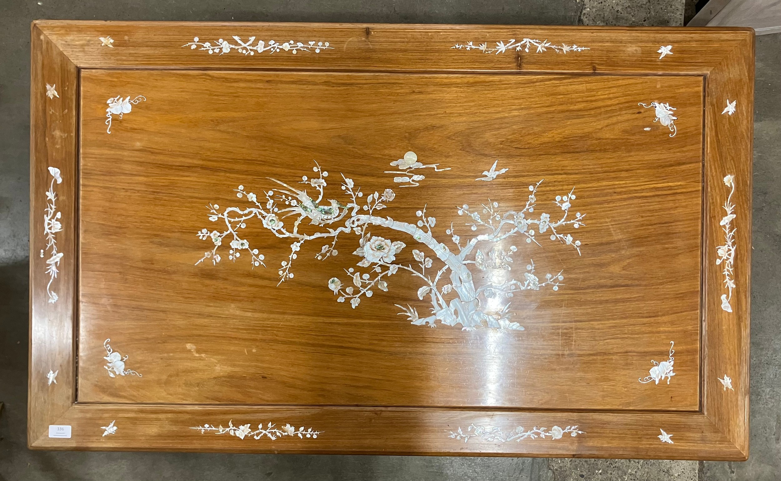 A Chinese hardwood and mother of pearl inlaid rectangular coffee table