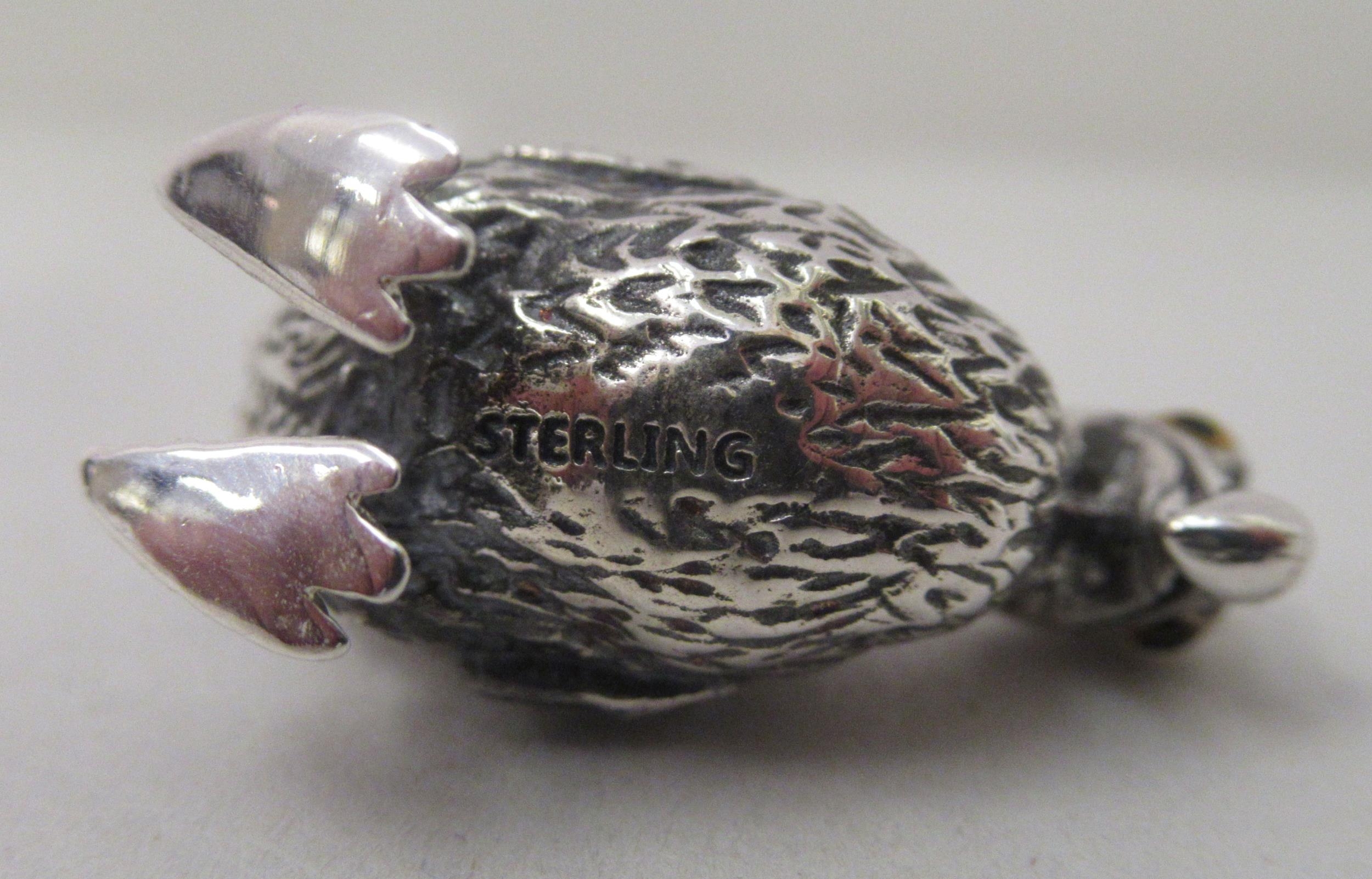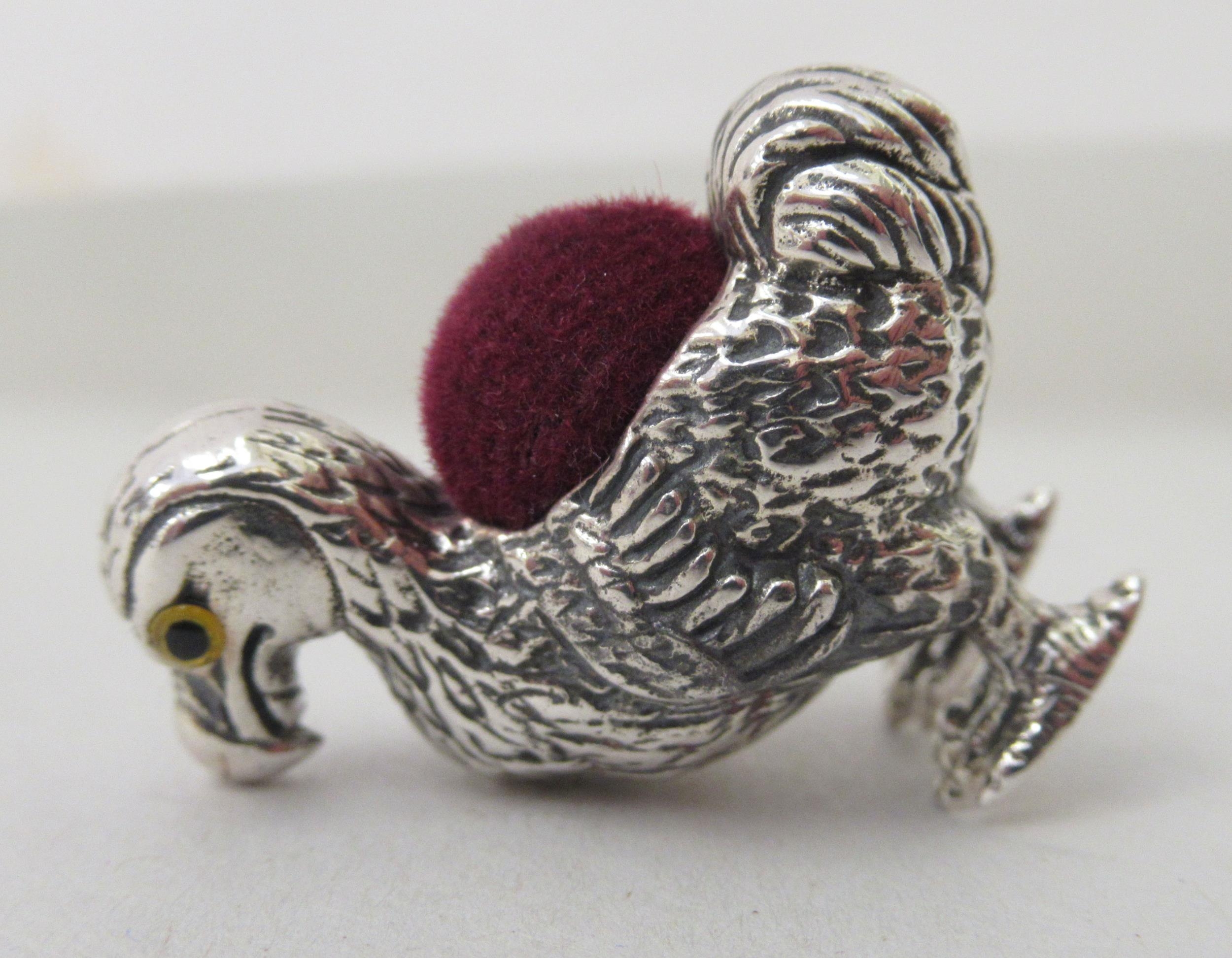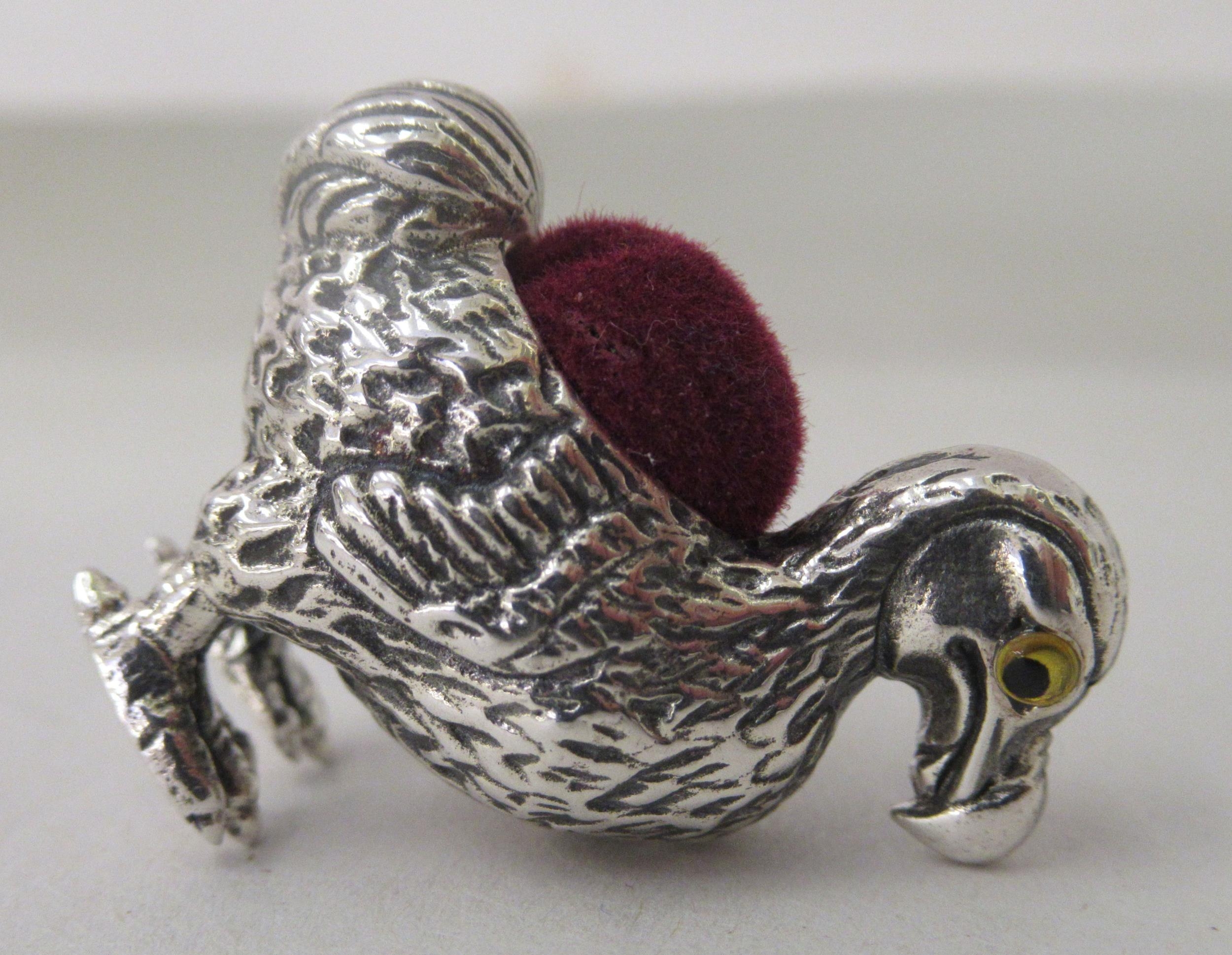 A silver coloured metal novelty pin cushion, fashioned as a Dodo bird