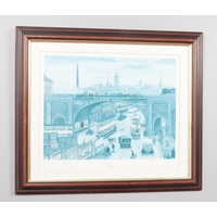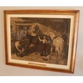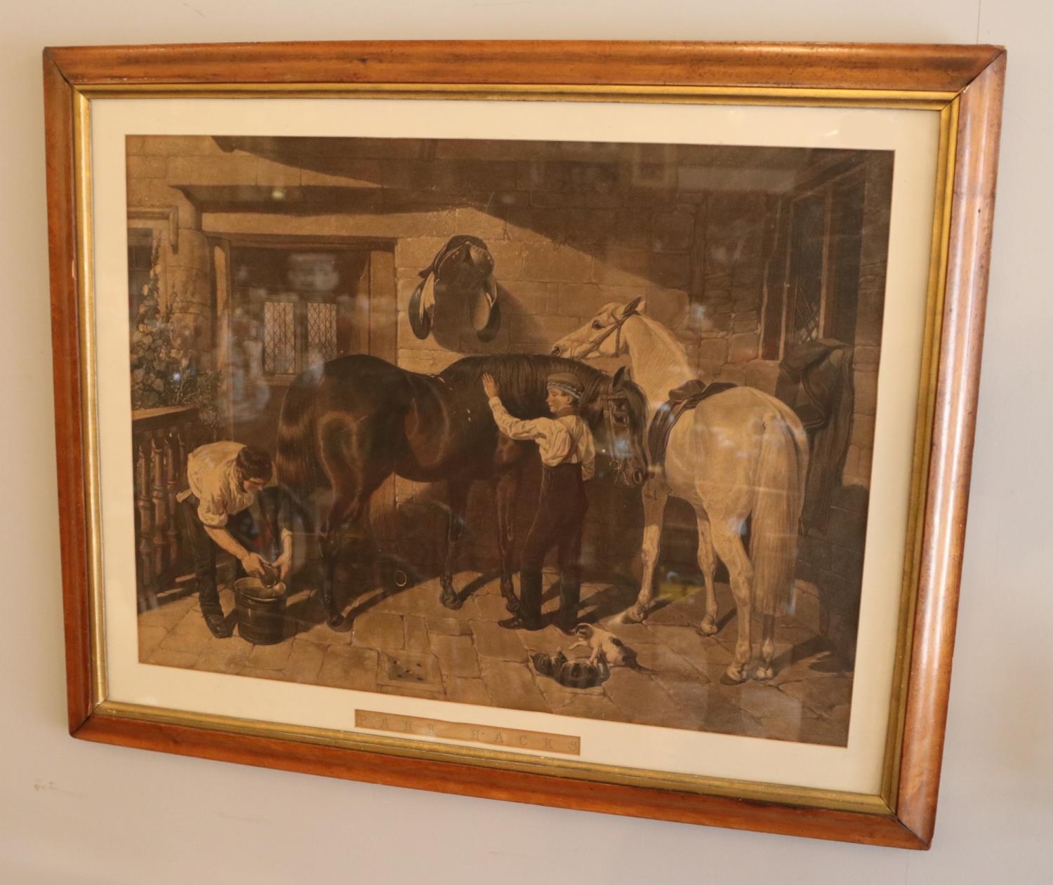 A large framed print of farrier making horse shoes, titled Park Hacks. (53cm x 70cm)