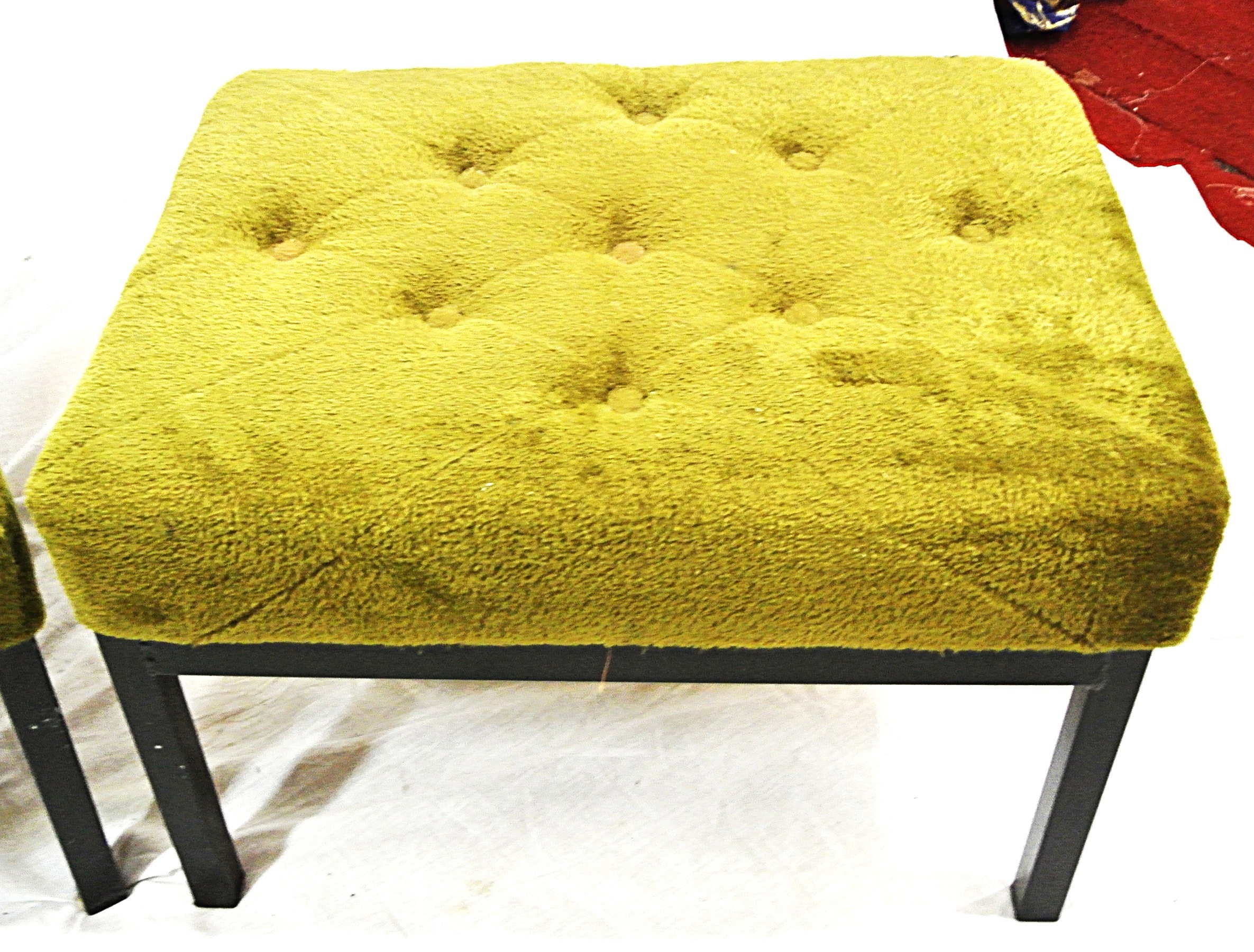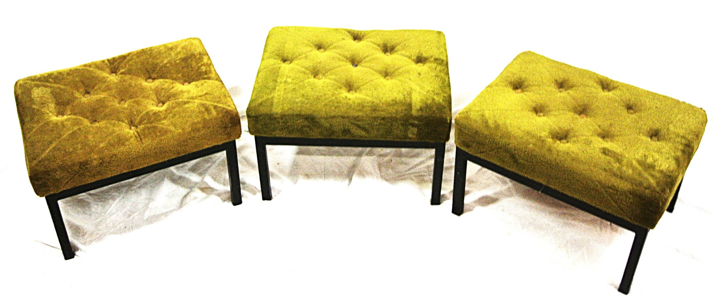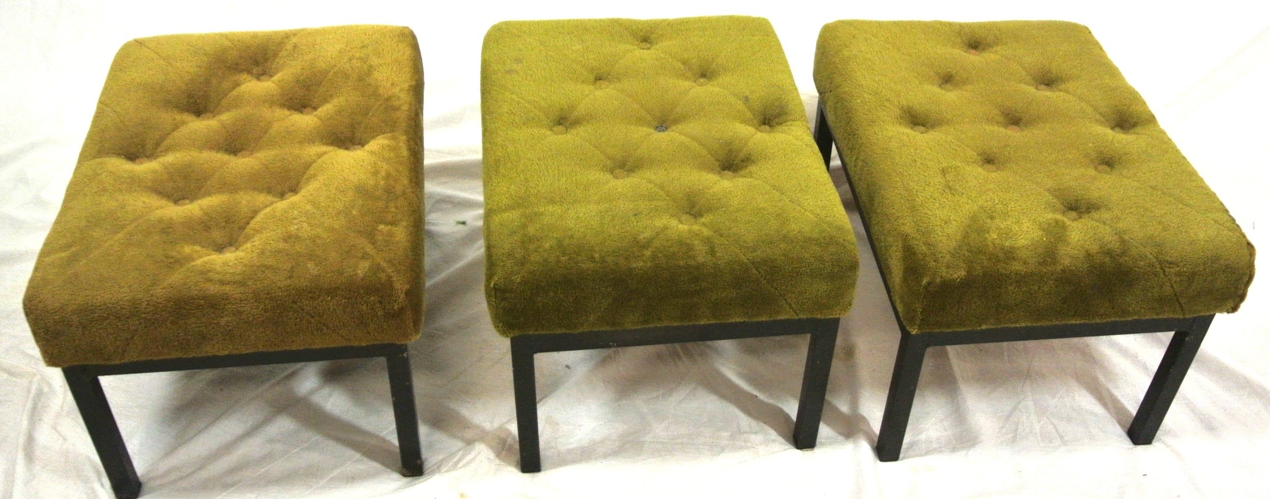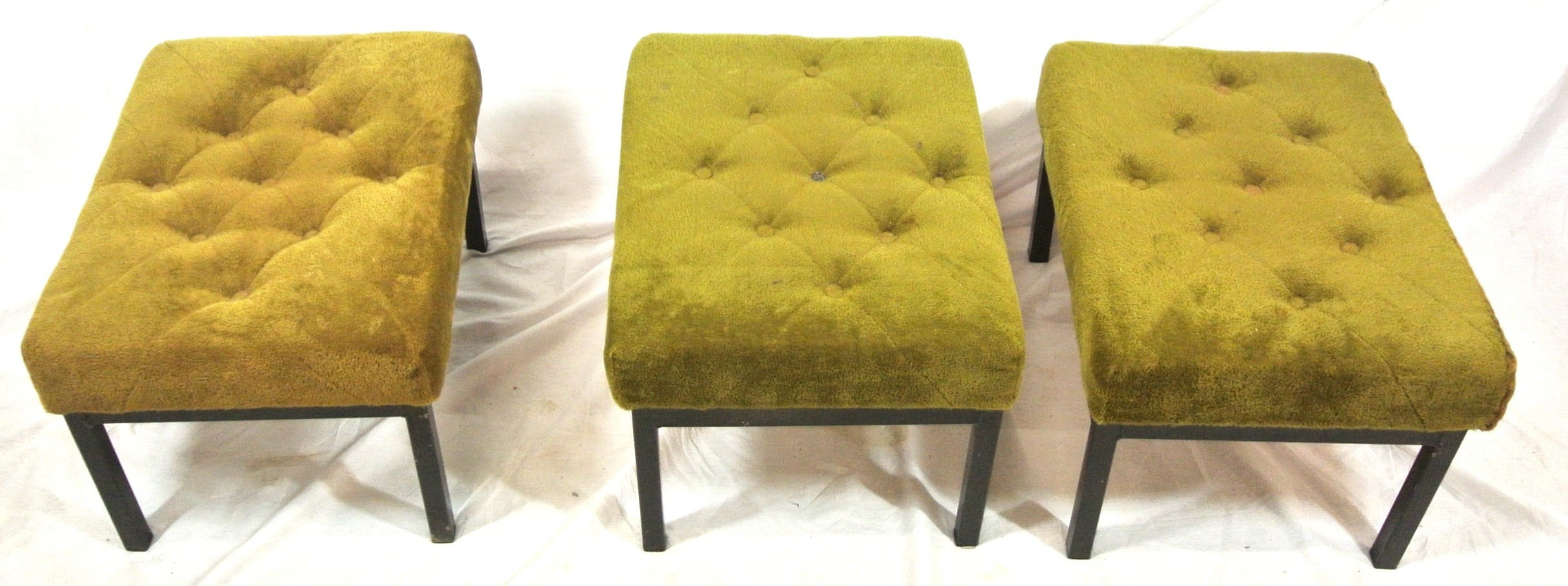 Set of 3 upholstered stools with buttoned tops