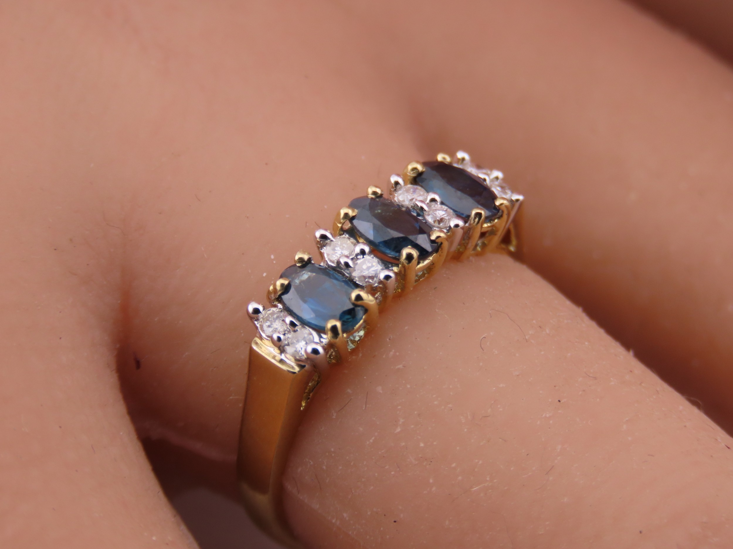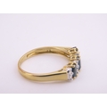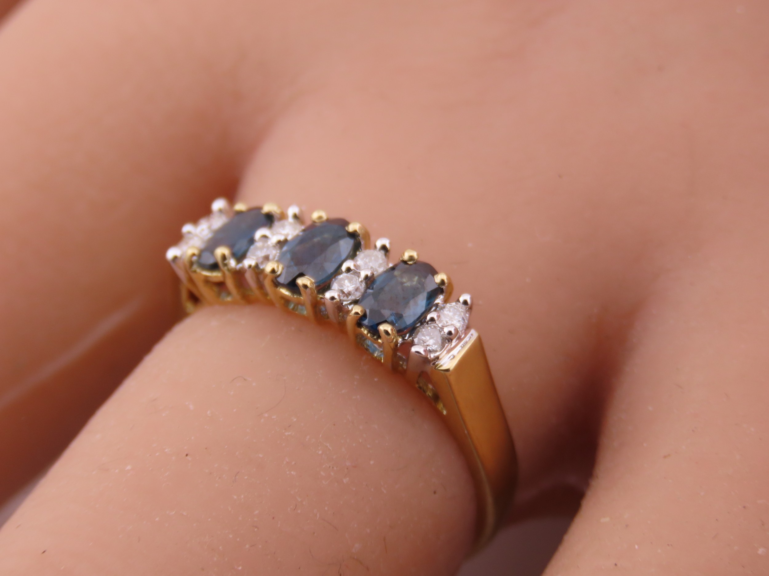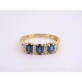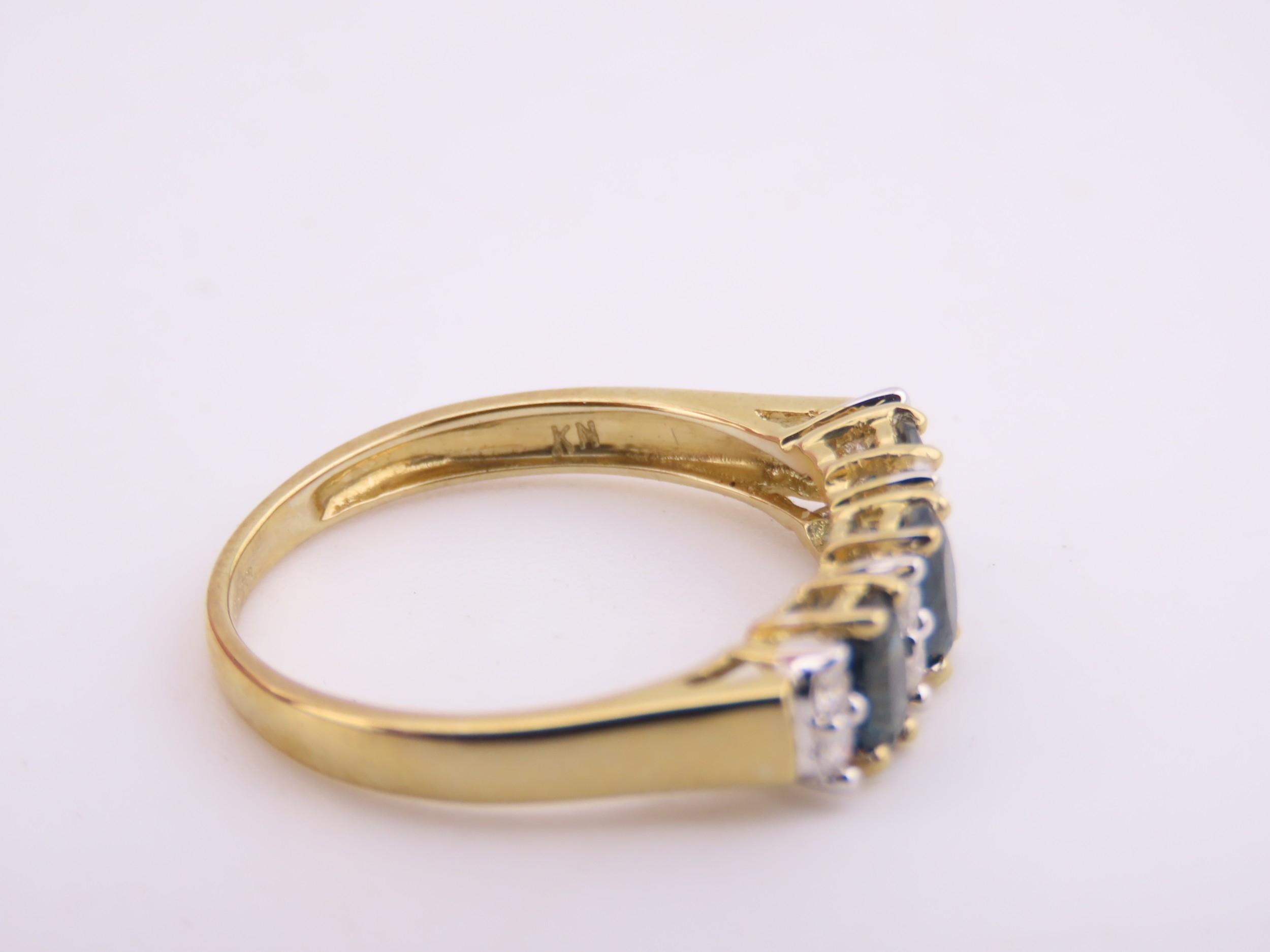 A 9ct gold ring set with alternating sapphires and diamonds. Ring size M. Gross weight 1.7 grams.