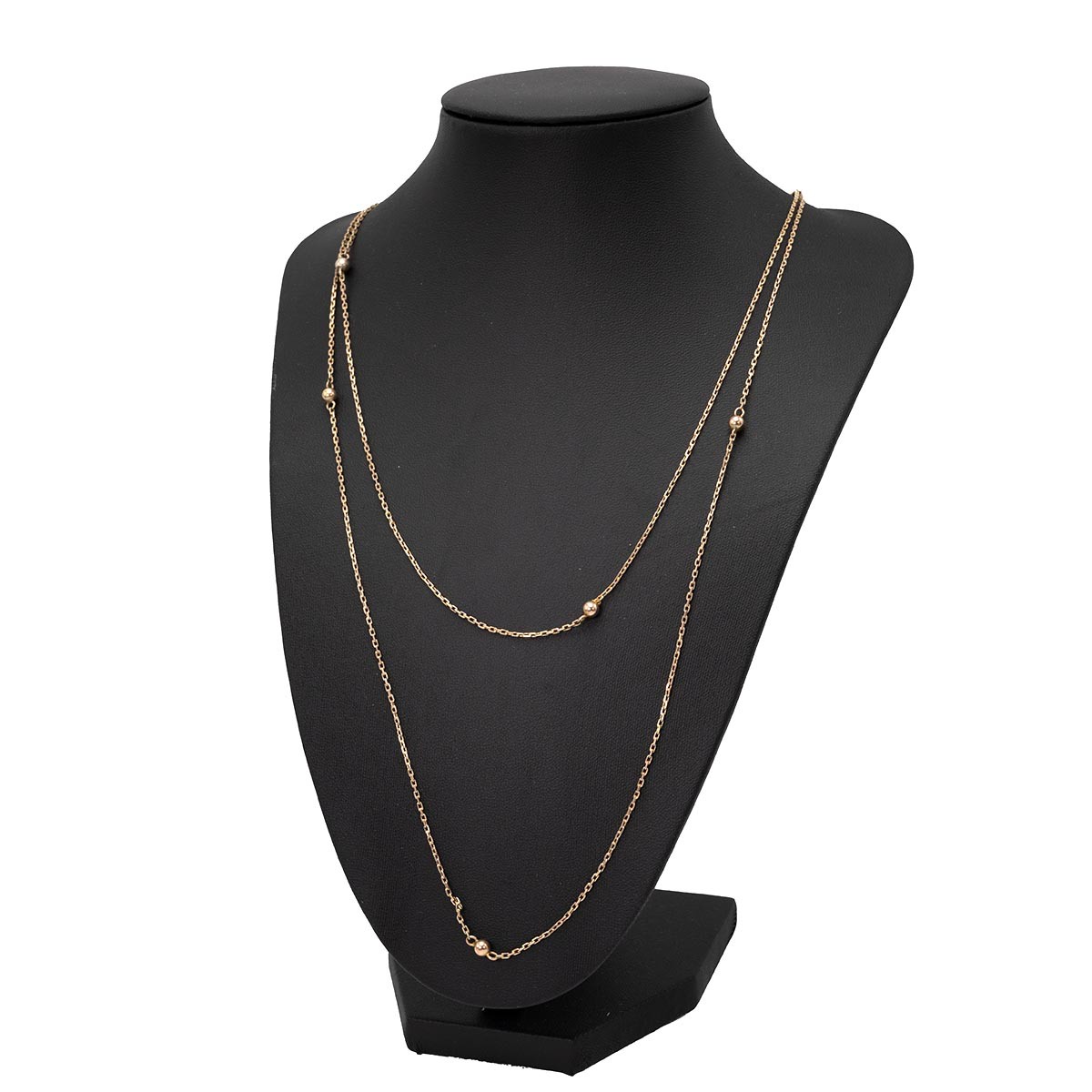 Edwardian 9ct guard/muff chain with spring ring clasp, L126cm, weight 8.1 grams.