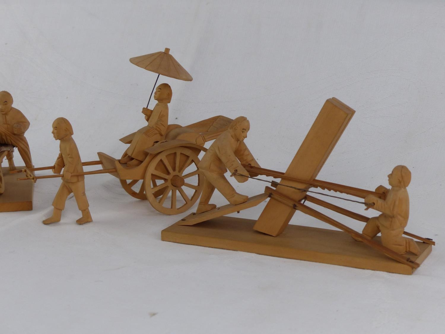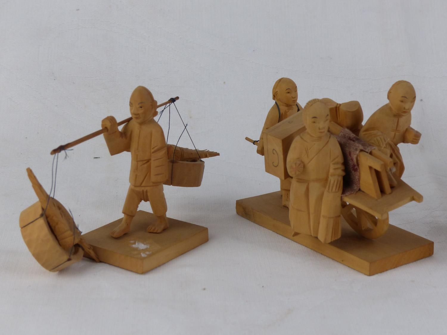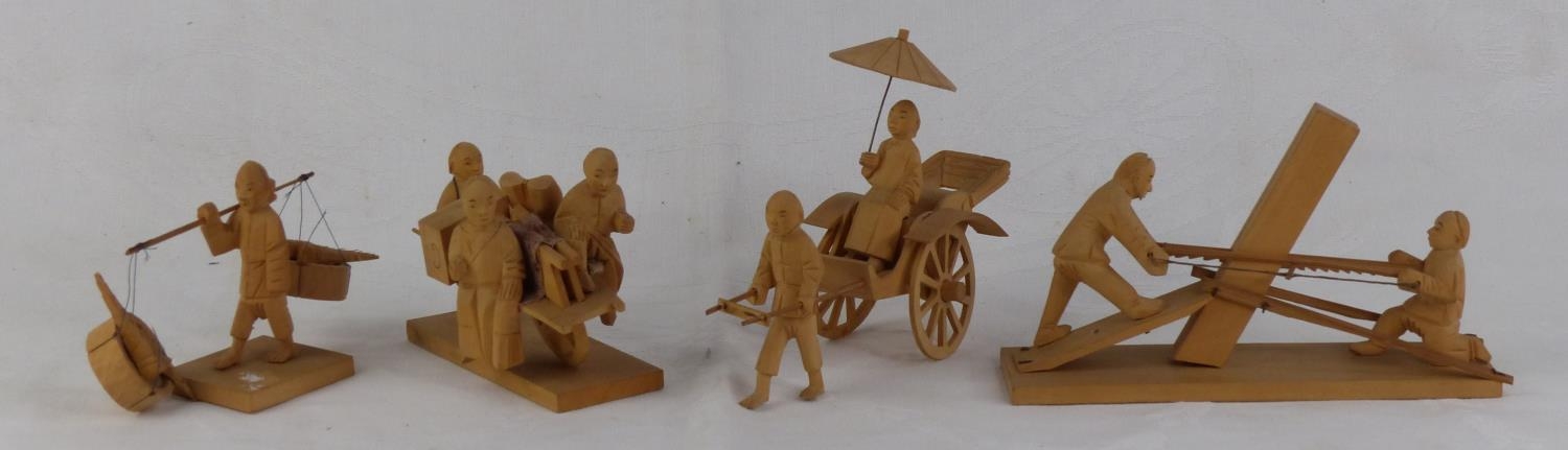 A collection of vintage/ antique handmade wooden Chinese figures.