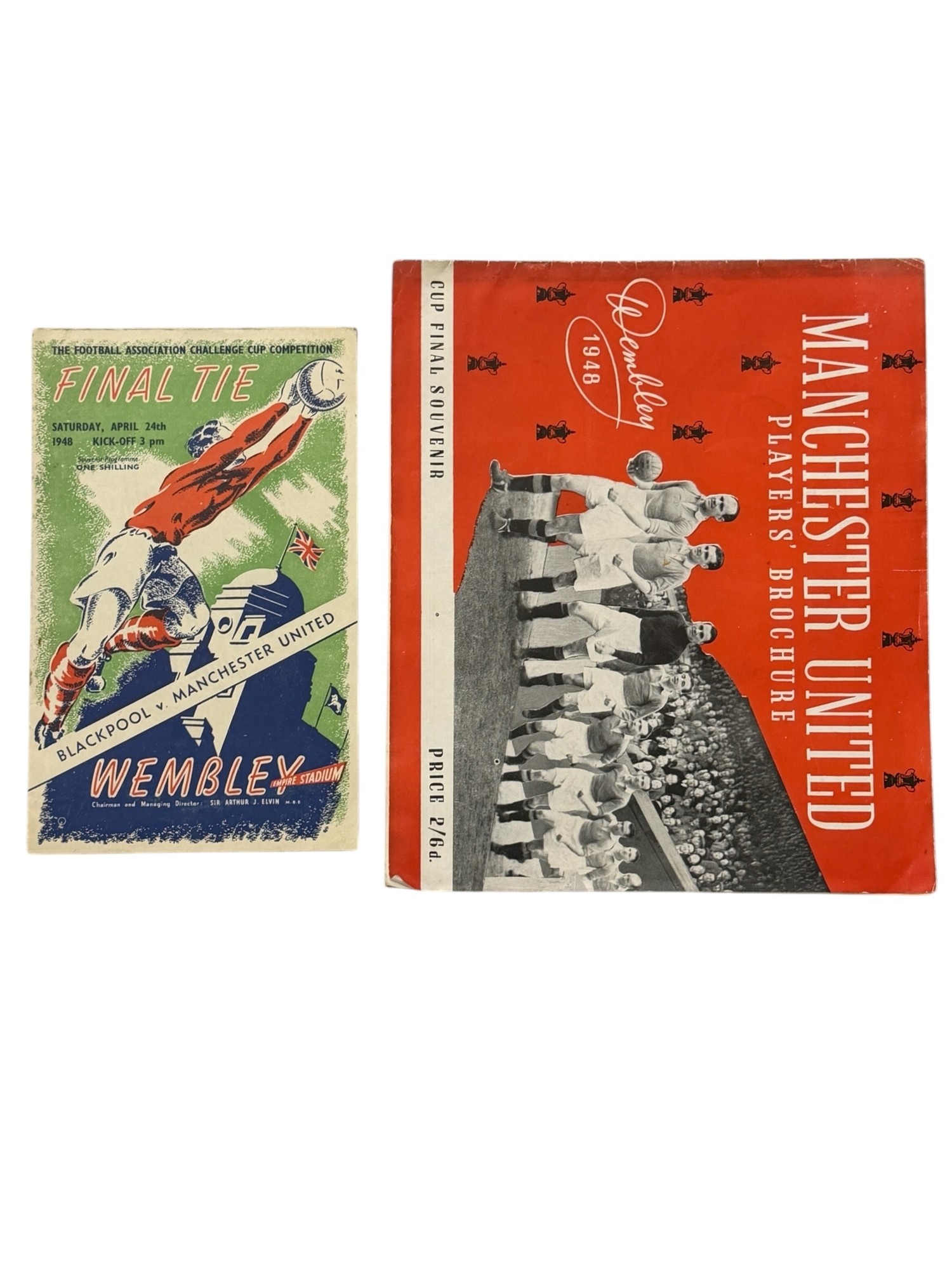 1948 FA CUP FINAL FOOTBALL PROGRAMME, MANCHESTER UNITED VERSUS BLACKPOOL, 24/4/1948, PLUS UNITED PLAYER BROCHURE. CHANGES, RUSTY STAPLES.