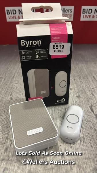 BYRON PORTABLE WIRELESS DOORBELL SET / VIEW, BID AND BUY IN THE ROOM, THEN TAKE AWAY THE SAME DAY / VIEWING FROM 8AM ON THE DAY OF THE SALE