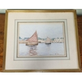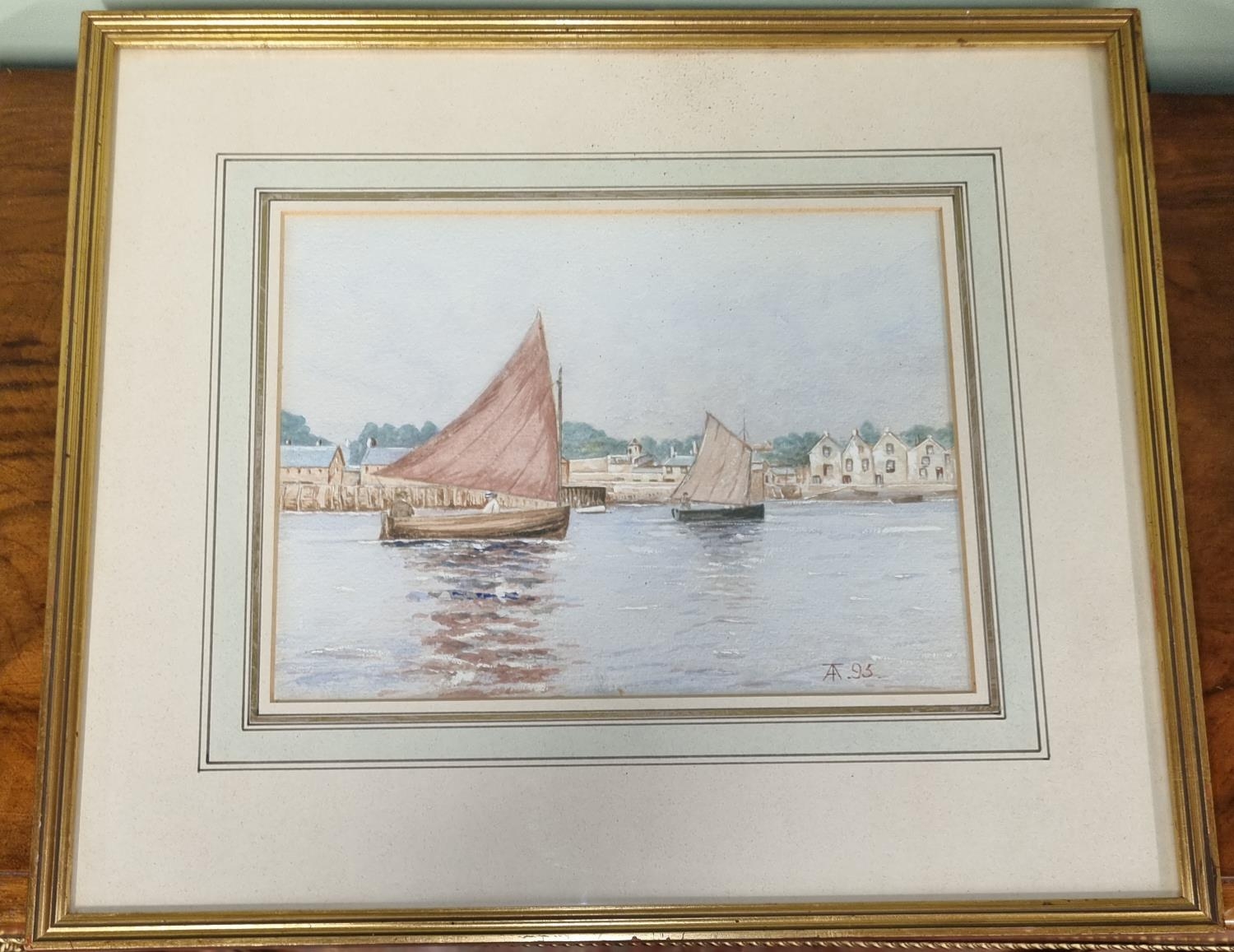 20th Century Watercolour of sailing boats in an estuary, monogramed AT lower right.H 23 x 28 cm approx.