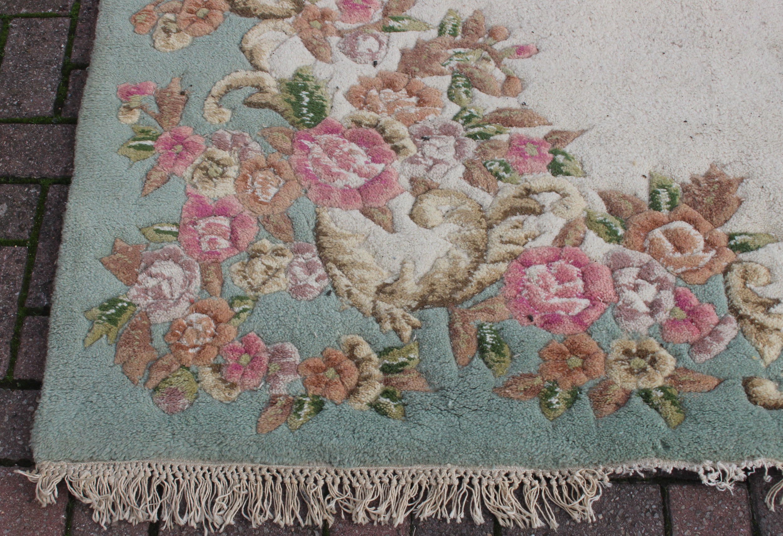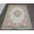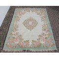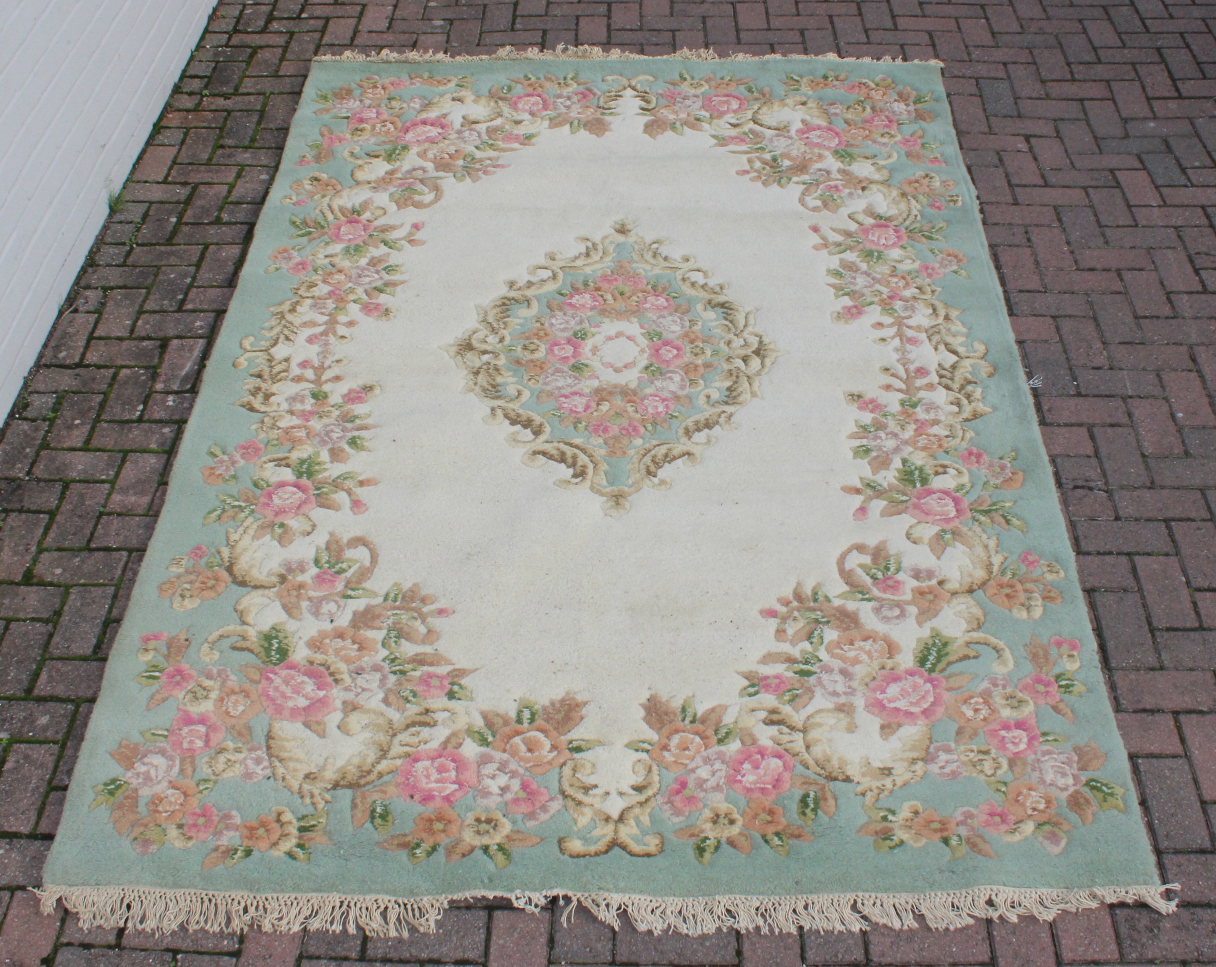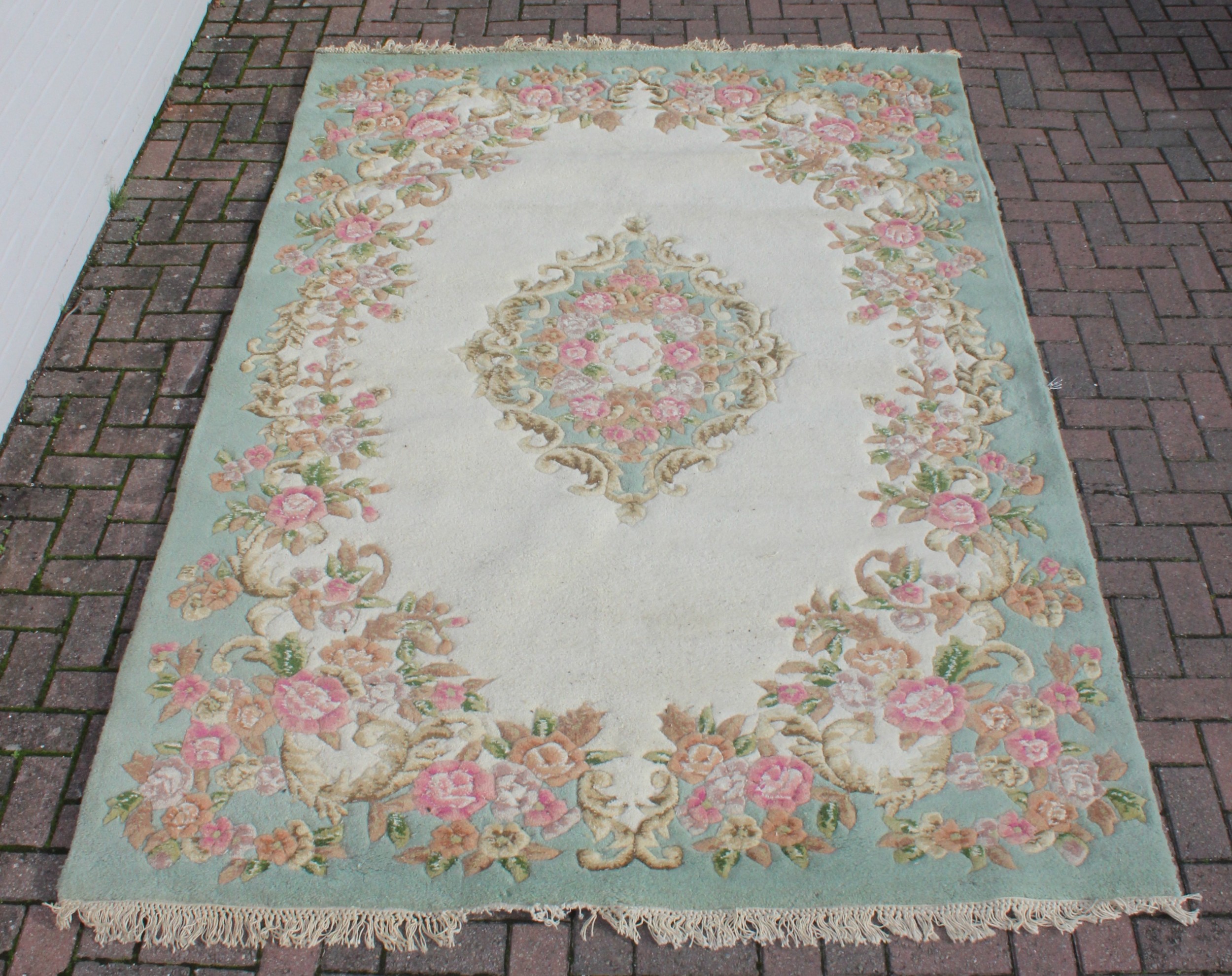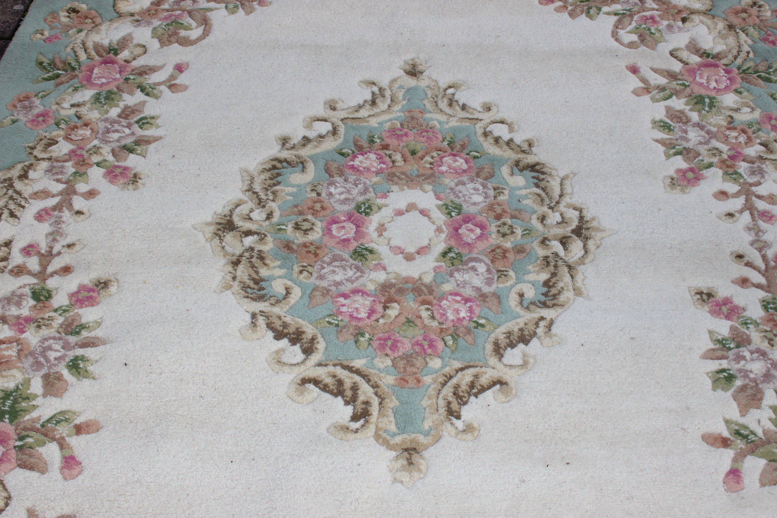 A large Kashmir made super wash rug with cream ground and central medallion, 185cm x 290cm