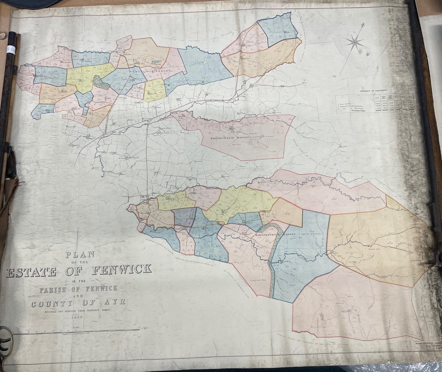 INTERESTING AND RARE! Revised and Reduced from Ordnance Survey 1866 FENWICK (Ayrshire) THE ESTATE OF FENWICK in the Parish of Ayr - in a tight rolled-up state and hessian backed - dimensions 39" wide x 46" height approx
