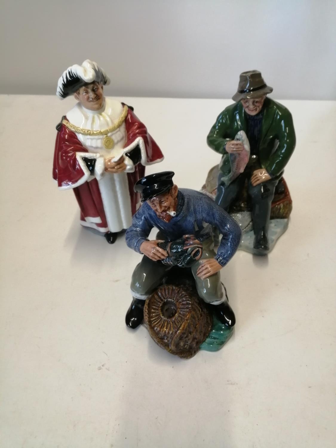 3 x Royal Doulton figures : Lobster Man, A Good Catch & The Mayor all in good order