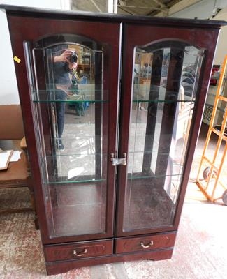 Mahogany glass fronted display cabinet with glass shelves approx 53x31"
