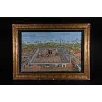 The paper medium shows visible discoloration, minor staining, and possible foxing consistent with its apparent age. The frame exhibits minor wear commensurate with age.