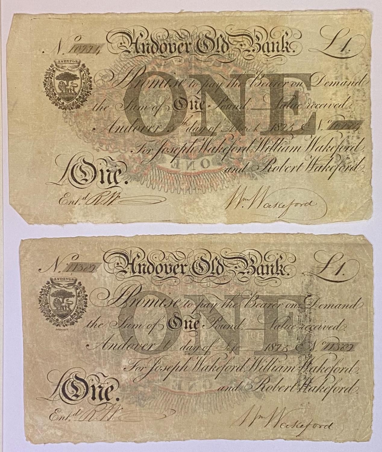 Two Andover Old Bank £1 banknotes, 1825 (2)