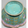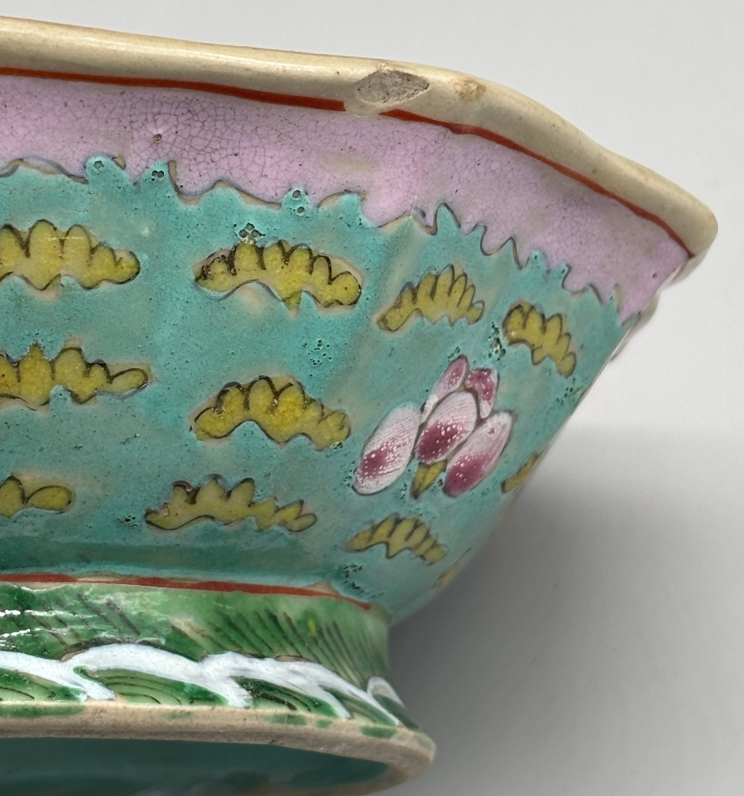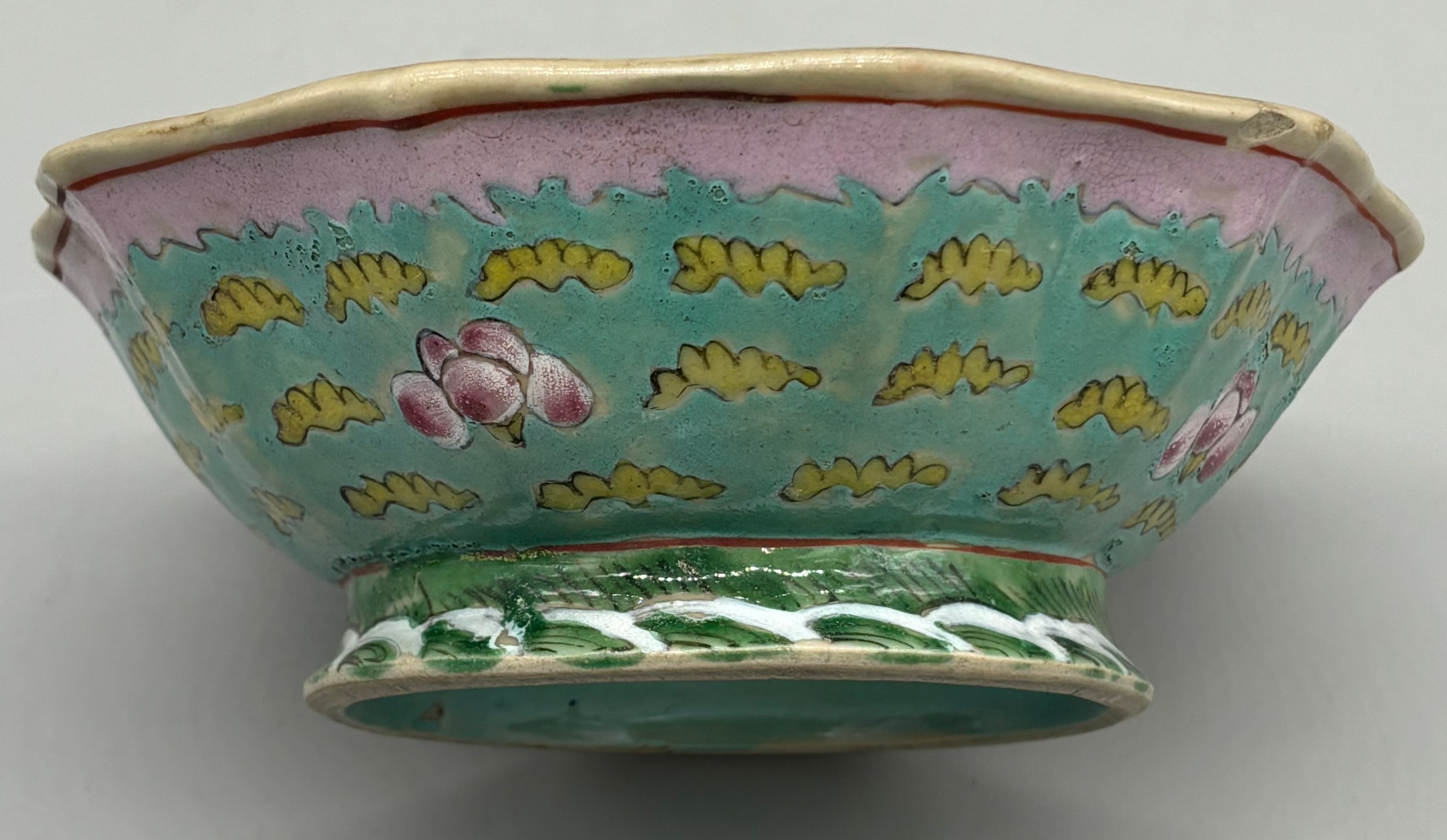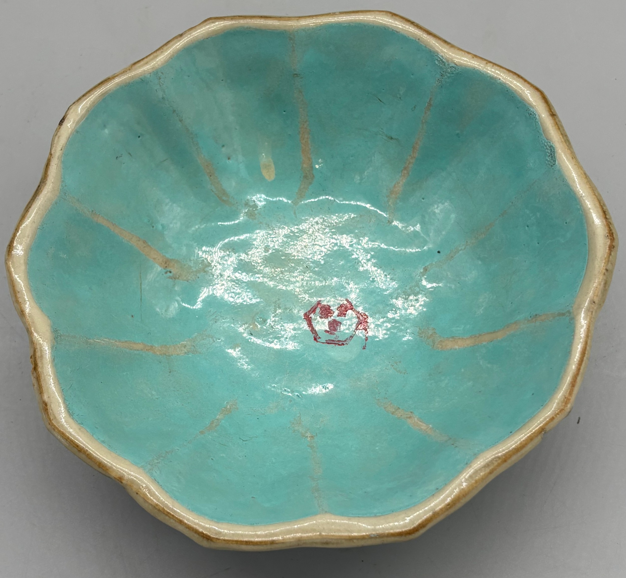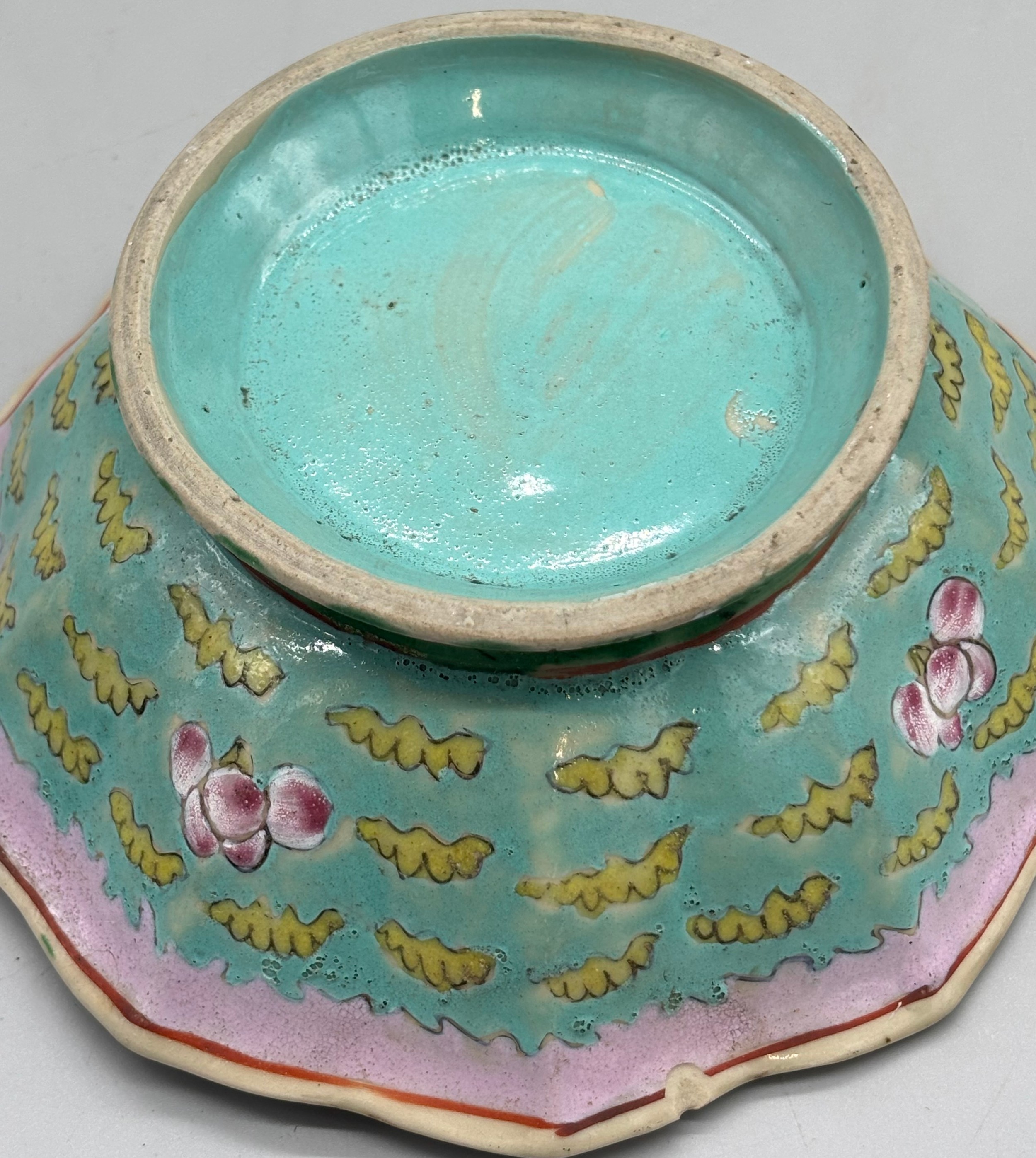 Chinese Qing Dynasty Scalloped Edged Bowl together with a Chinese Blue & White Scalloped Edged plate with phoenix design. Comes with a wooden stand.