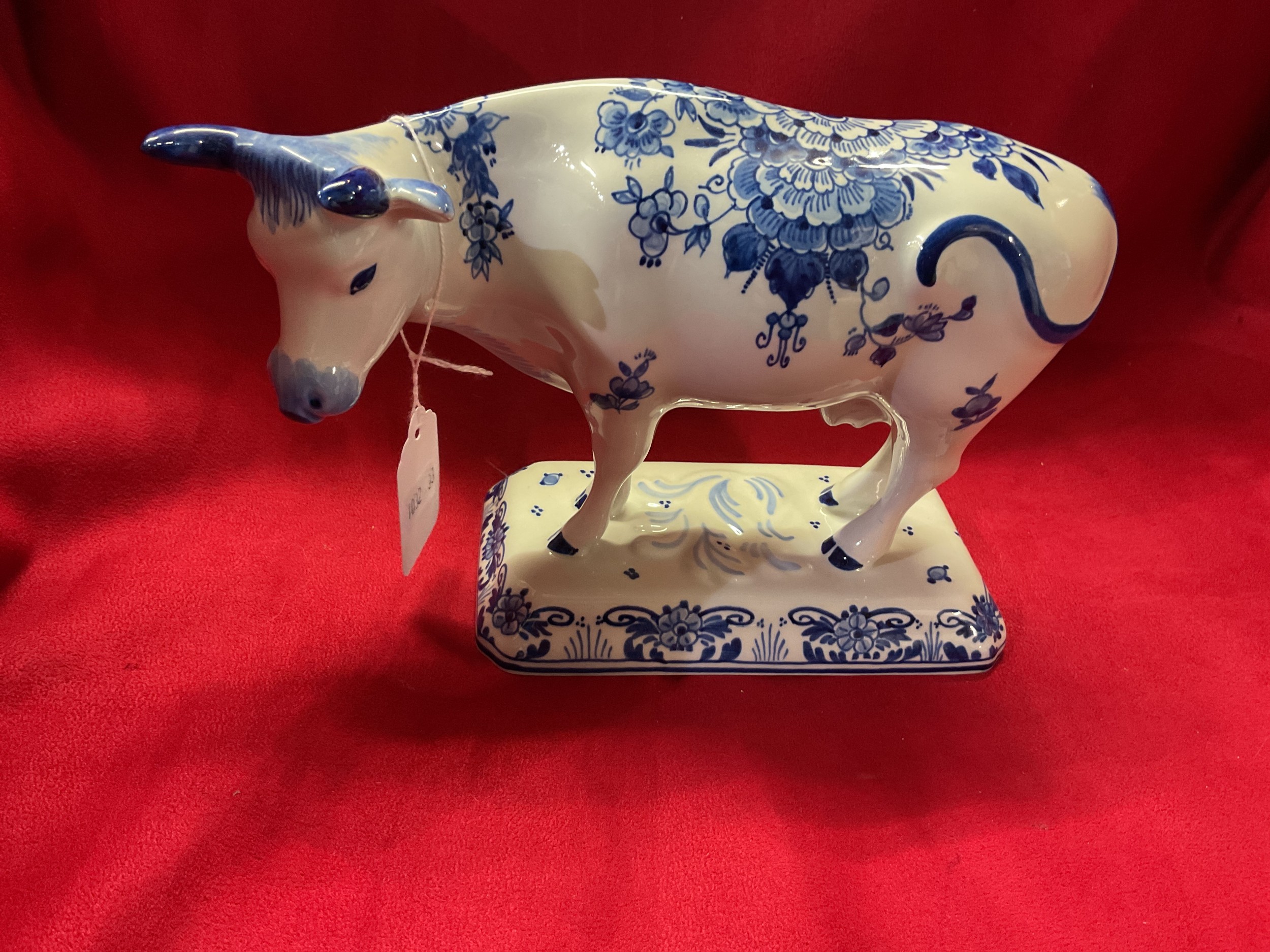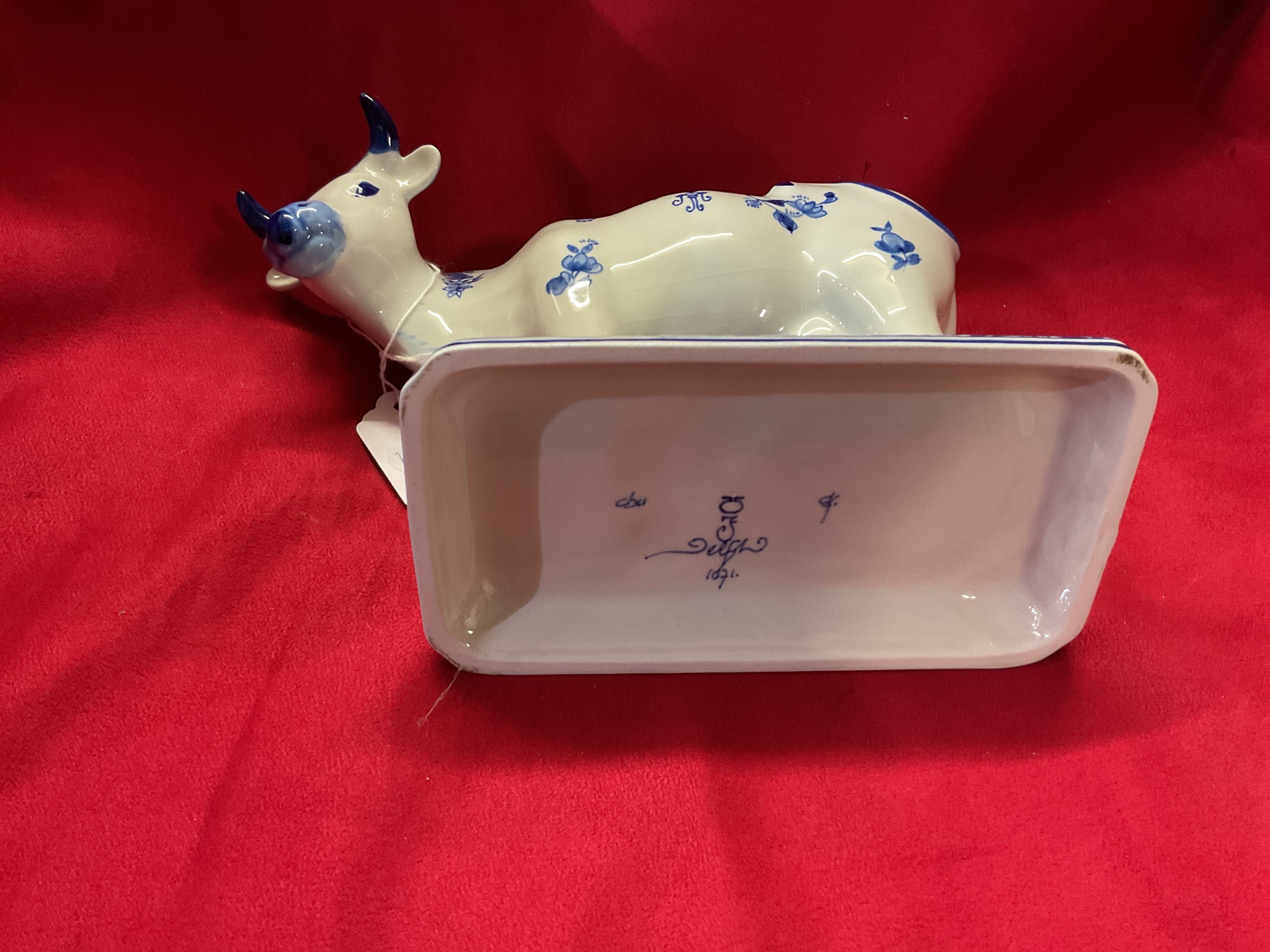 A vintage Royal Delft blue and white cow