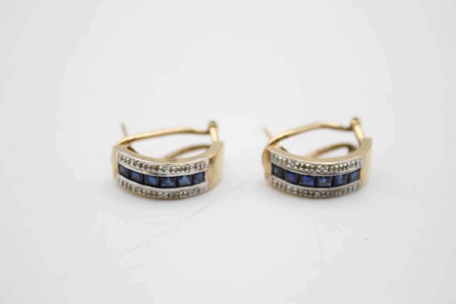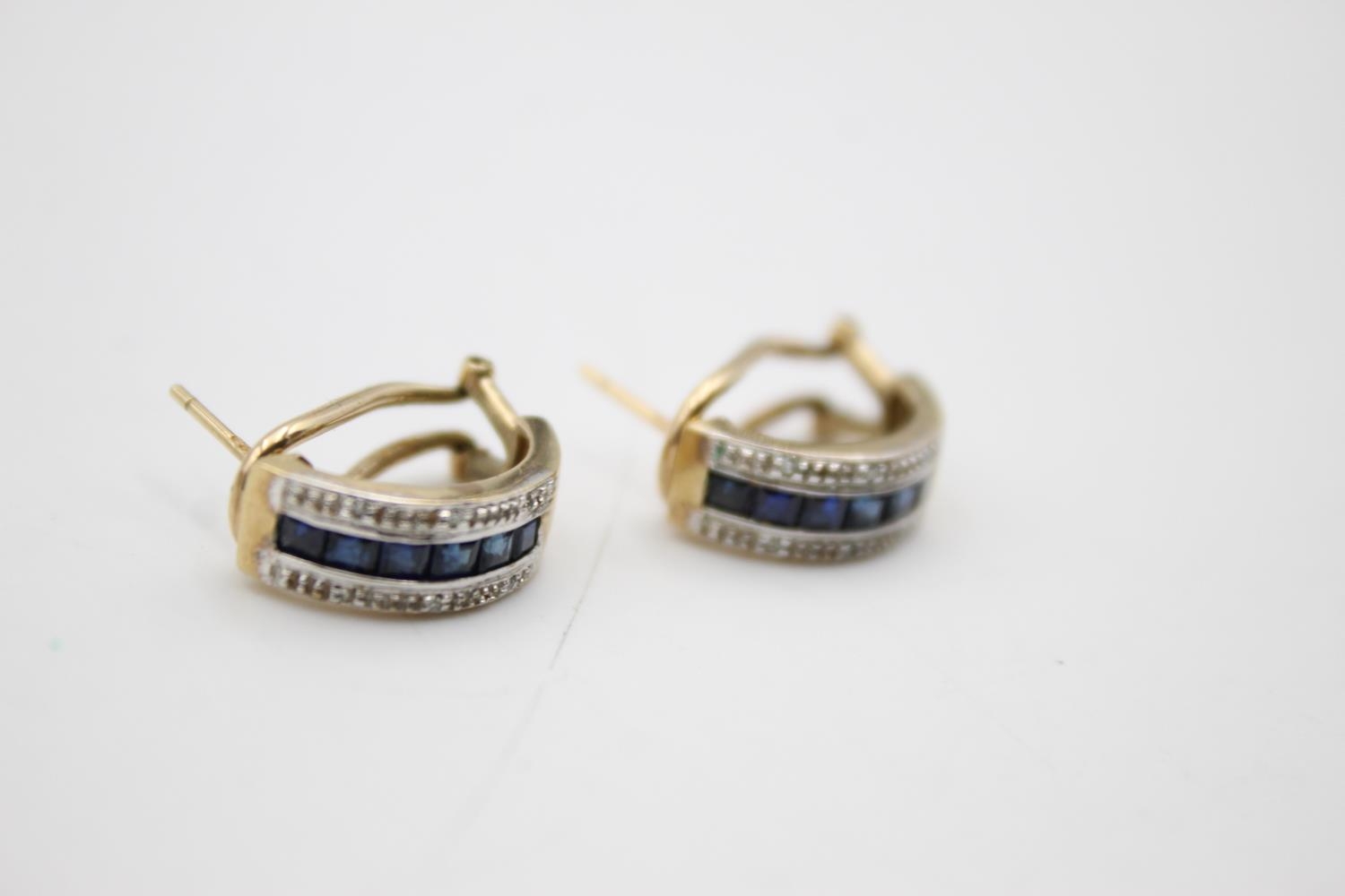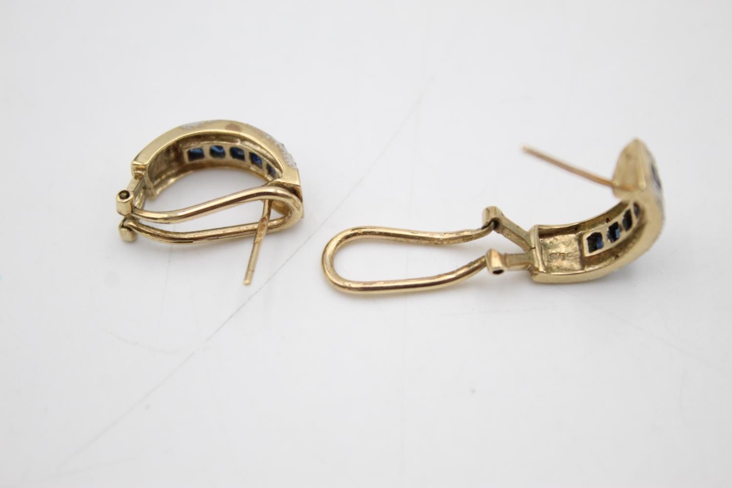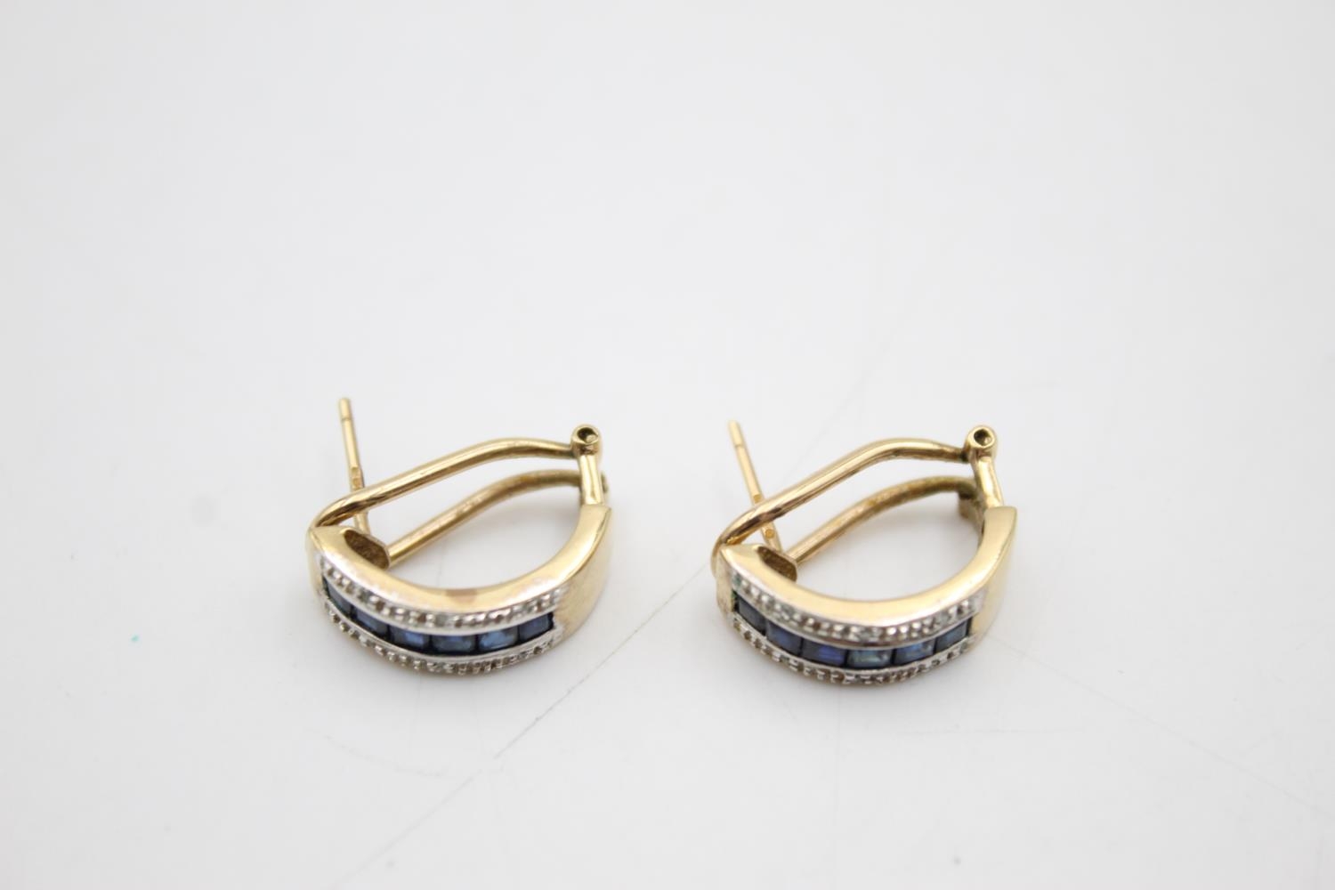 9ct gold diamond & sapphire earrings (4.1g)
