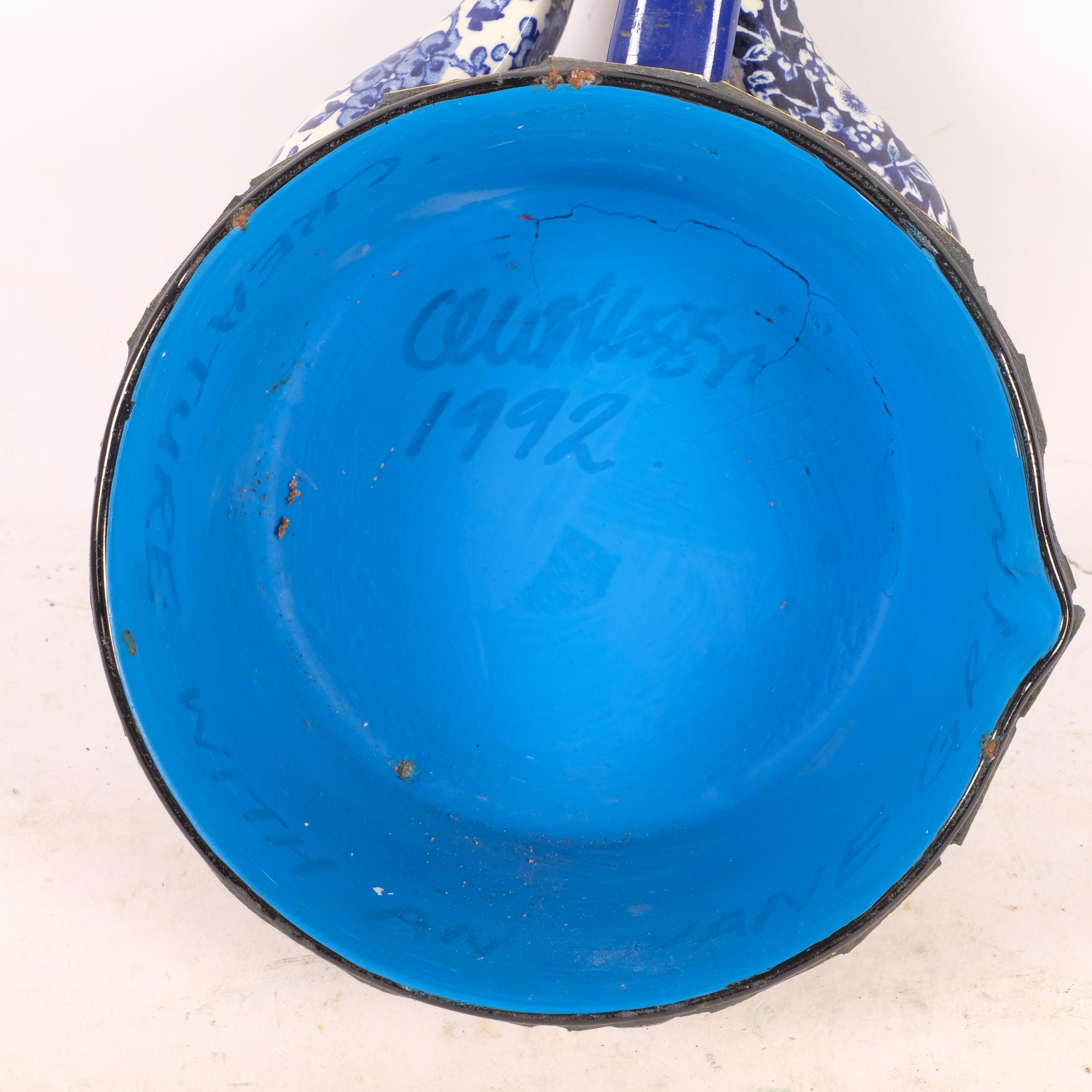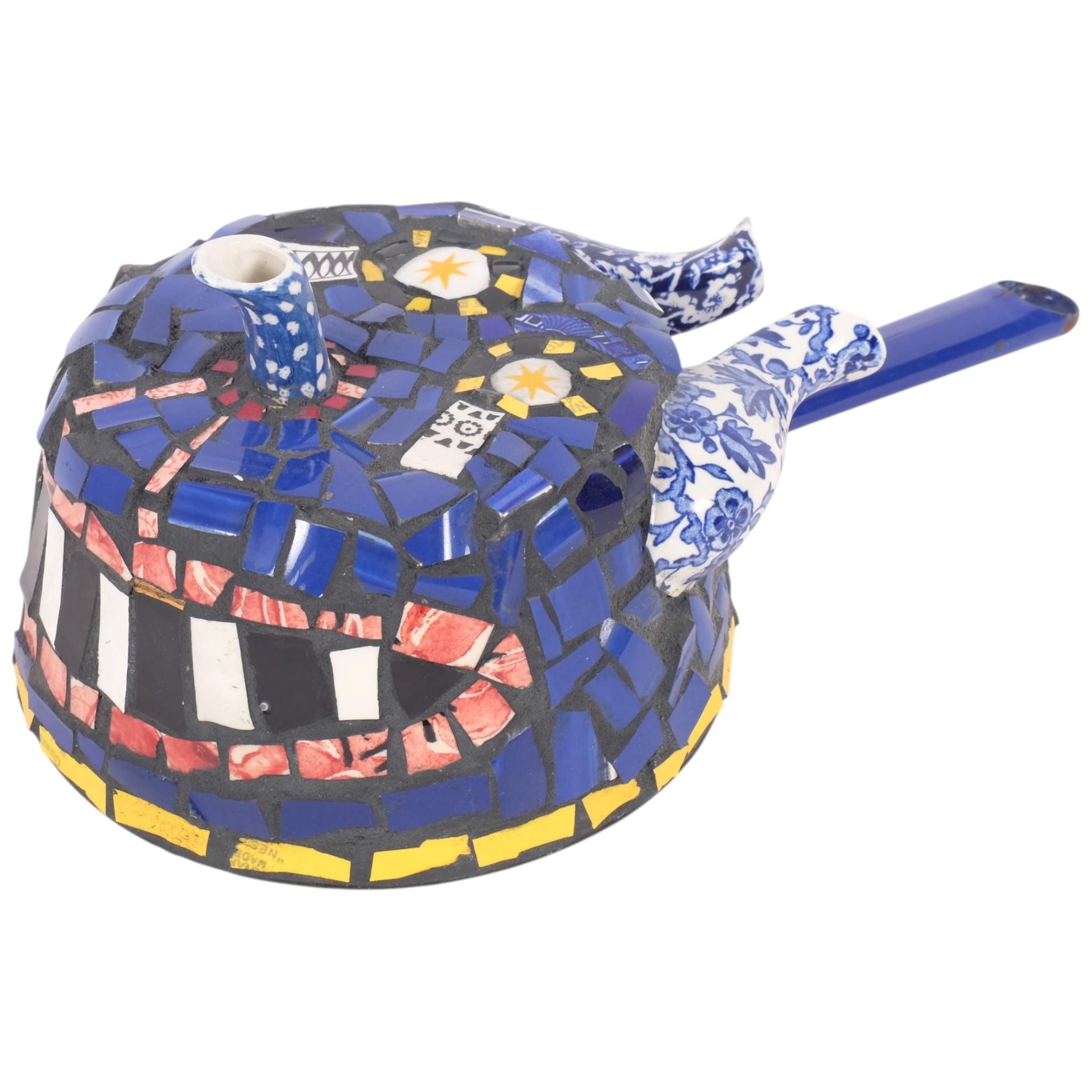 CLEO MUSSI (born 1965), "Creature With An Inane Grin", wall hanging sculpture, ceramic mosaic on saucepan, signed and dated 1992 to interior, length 32cm