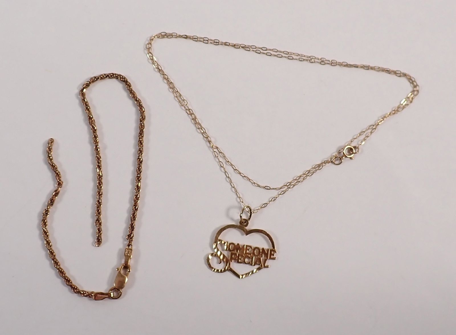 A 9 carat gold 'Someone Special' pendant on fine 9 carat gold chain plus a 9 carat gold bracelet - a/f, total weight 3.2g