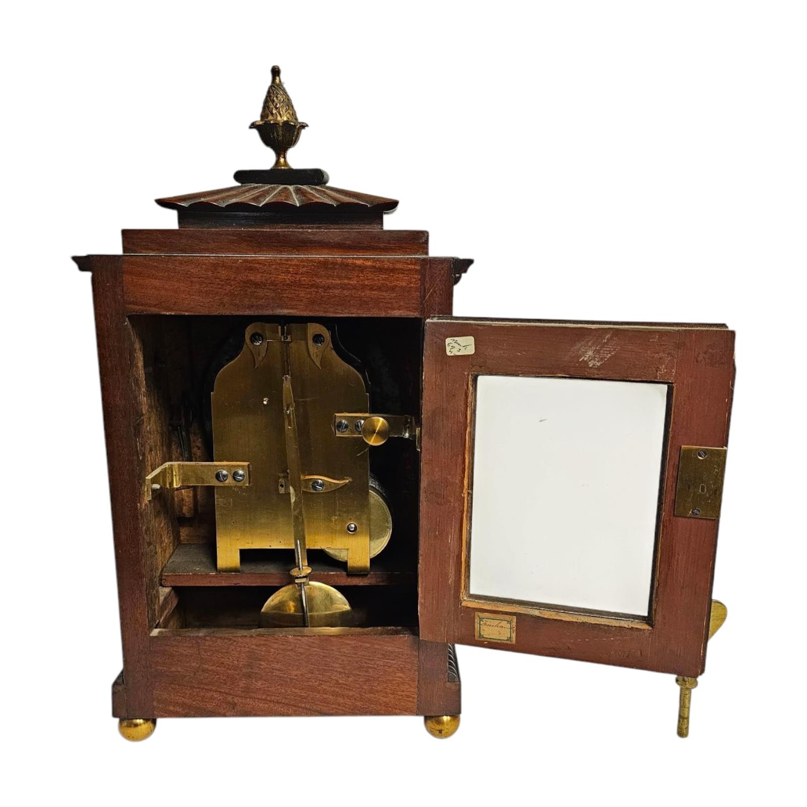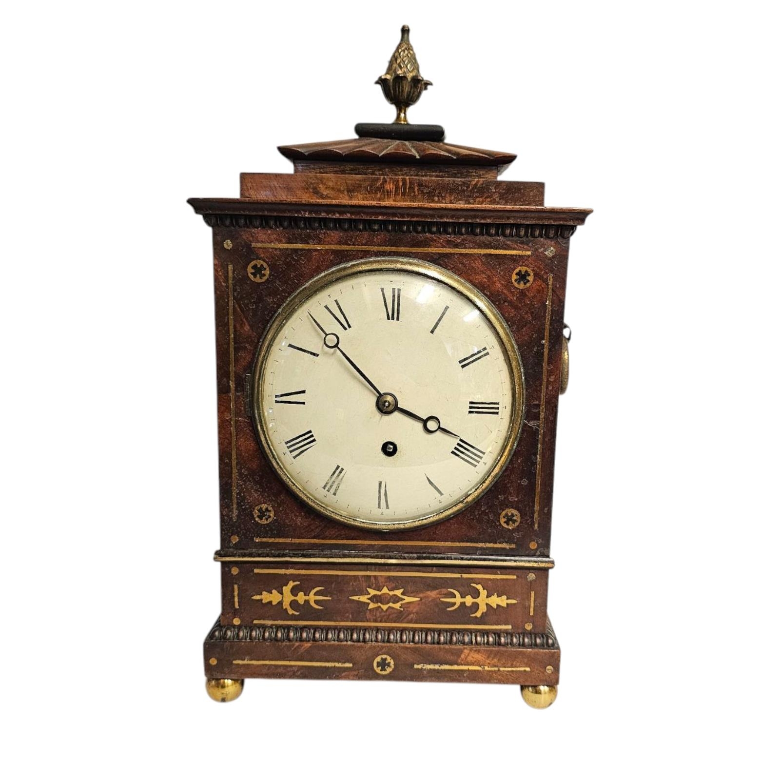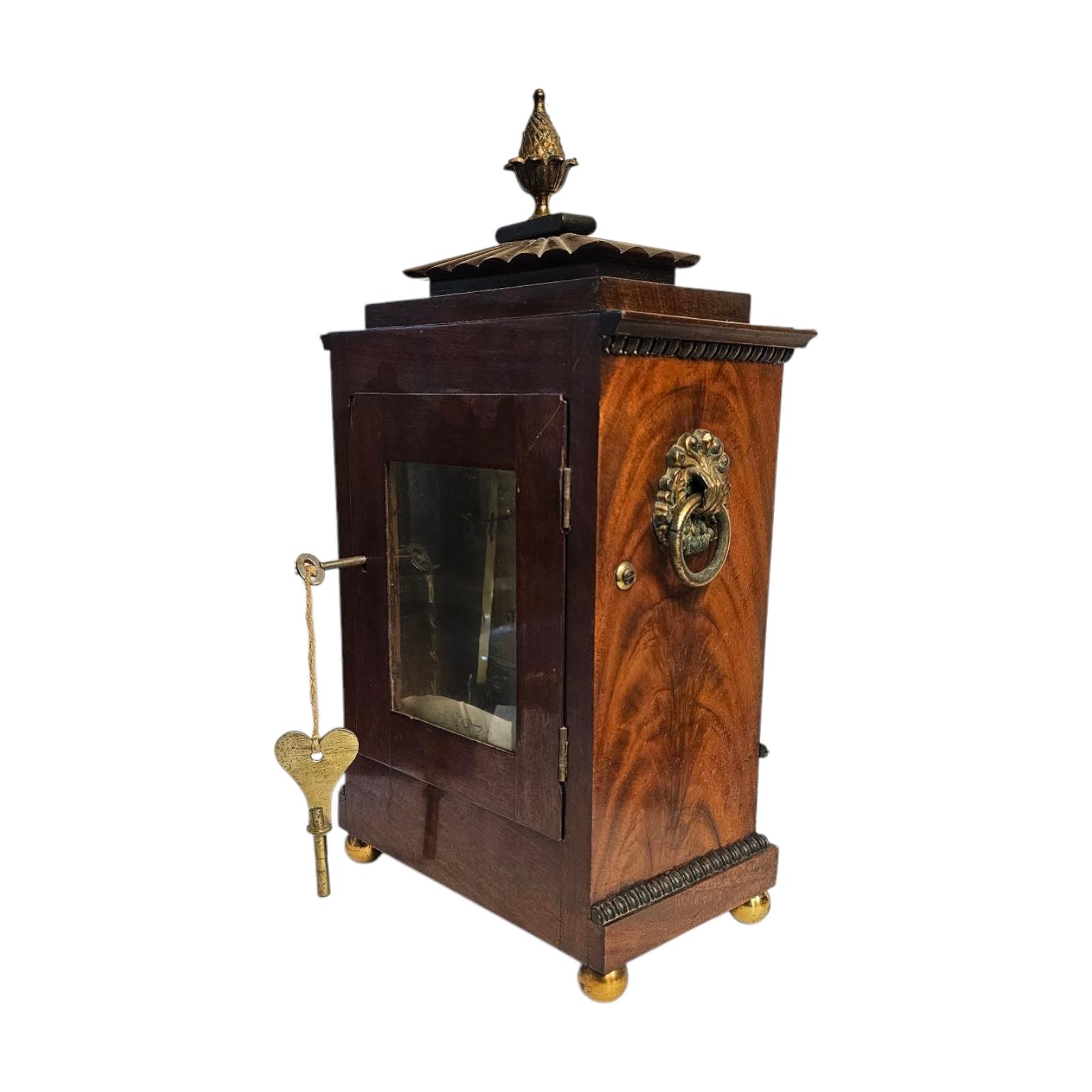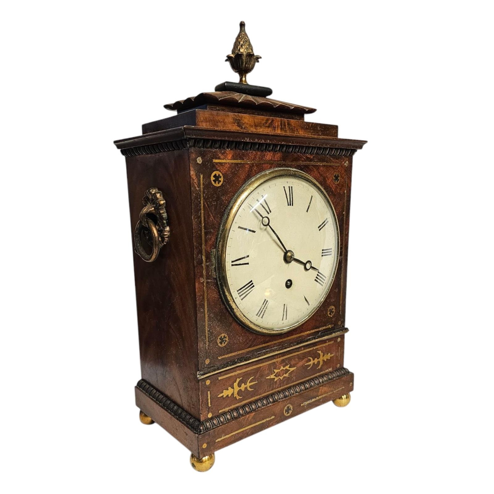 A REGENCY MAHOGANY AND BRASS BRACKET CLOCK