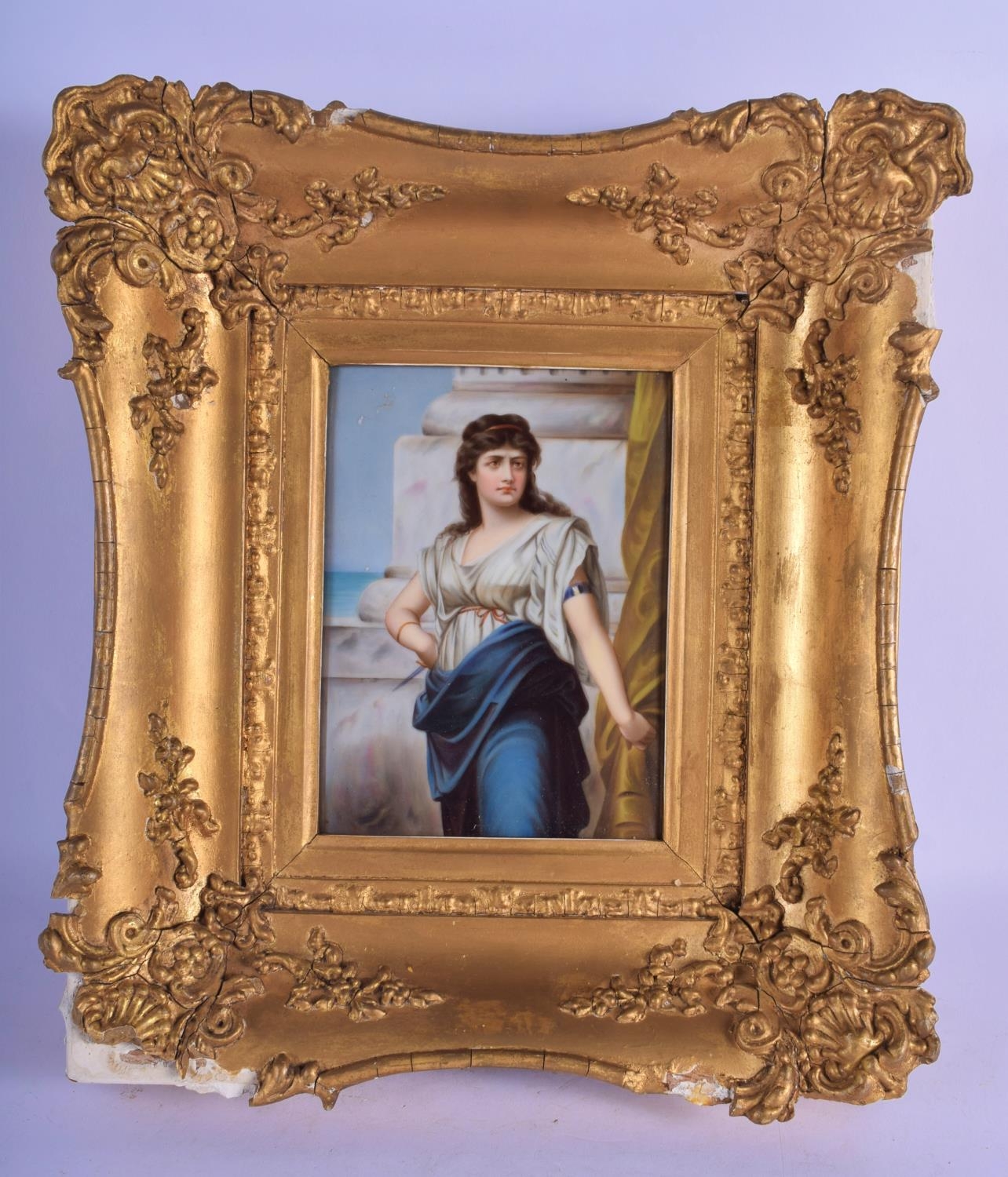 AN ANTIQUE EUROPEAN PORCELAIN PLAQUE within a gilt frame. Porcelain 16 cm x 11 cm.