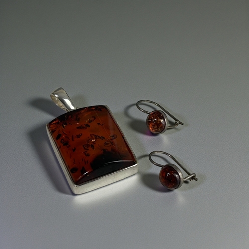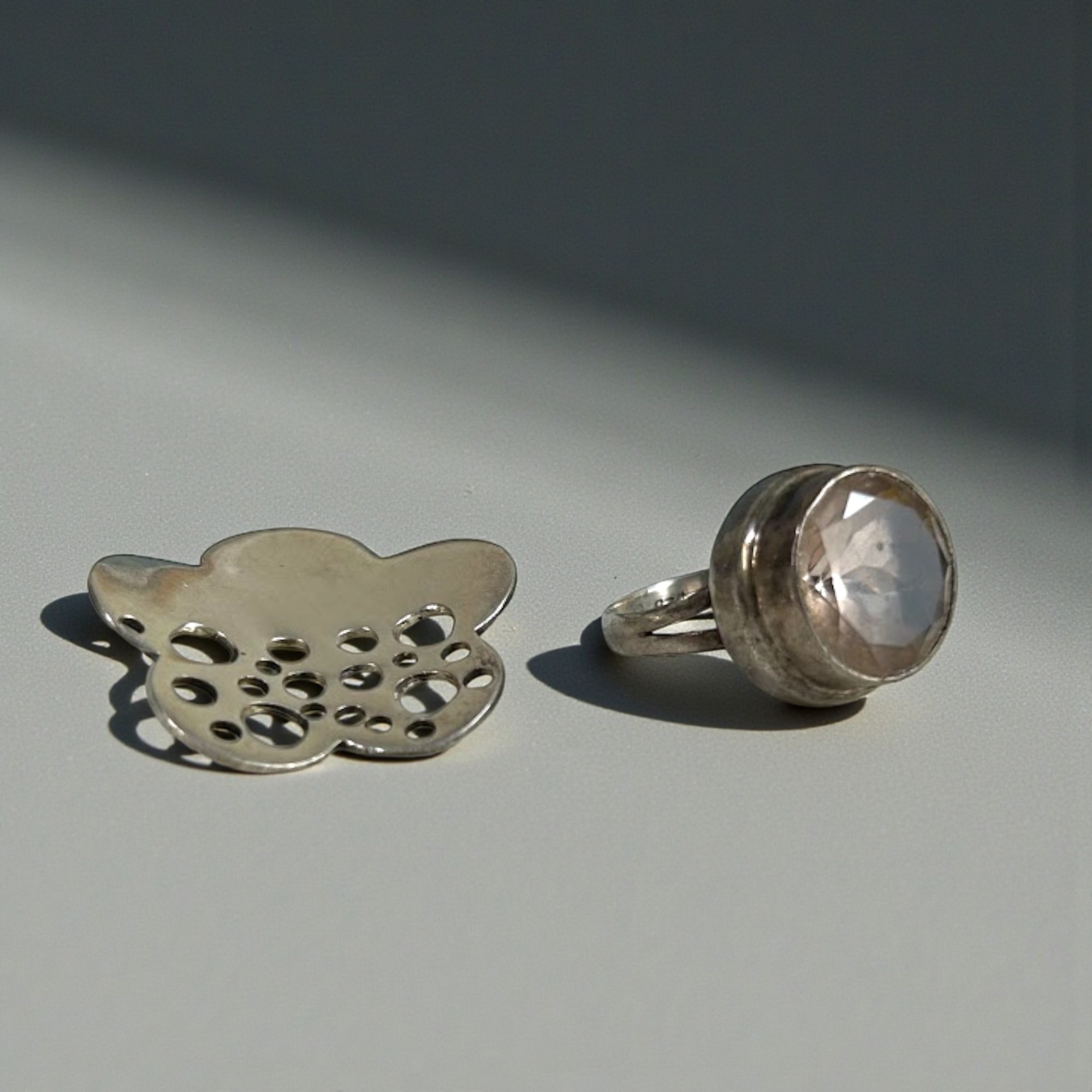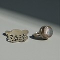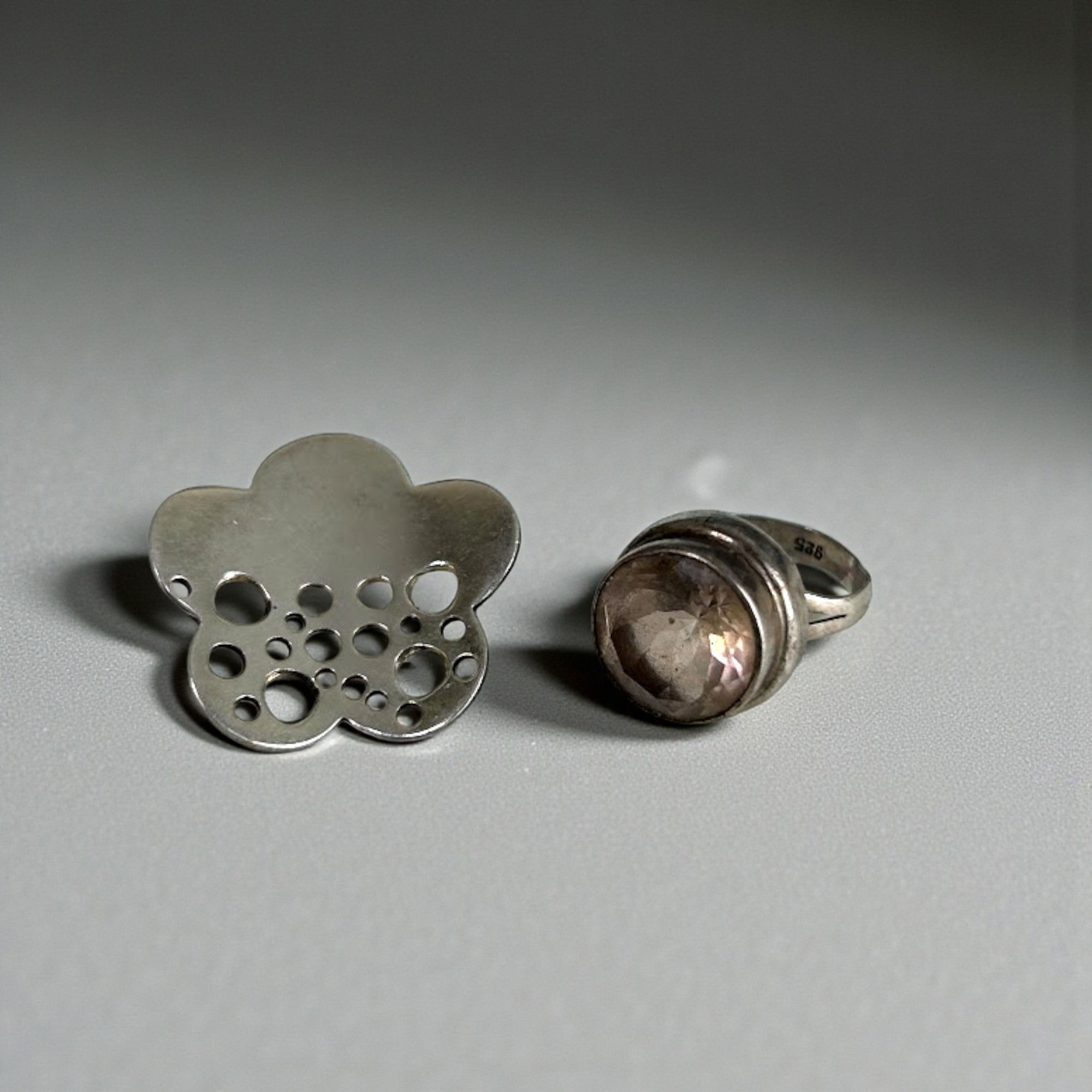 A sterling silver ring together with a silver pendant.