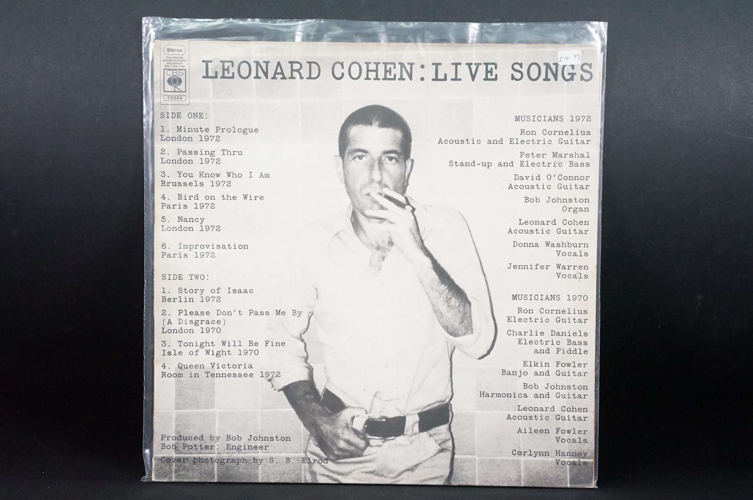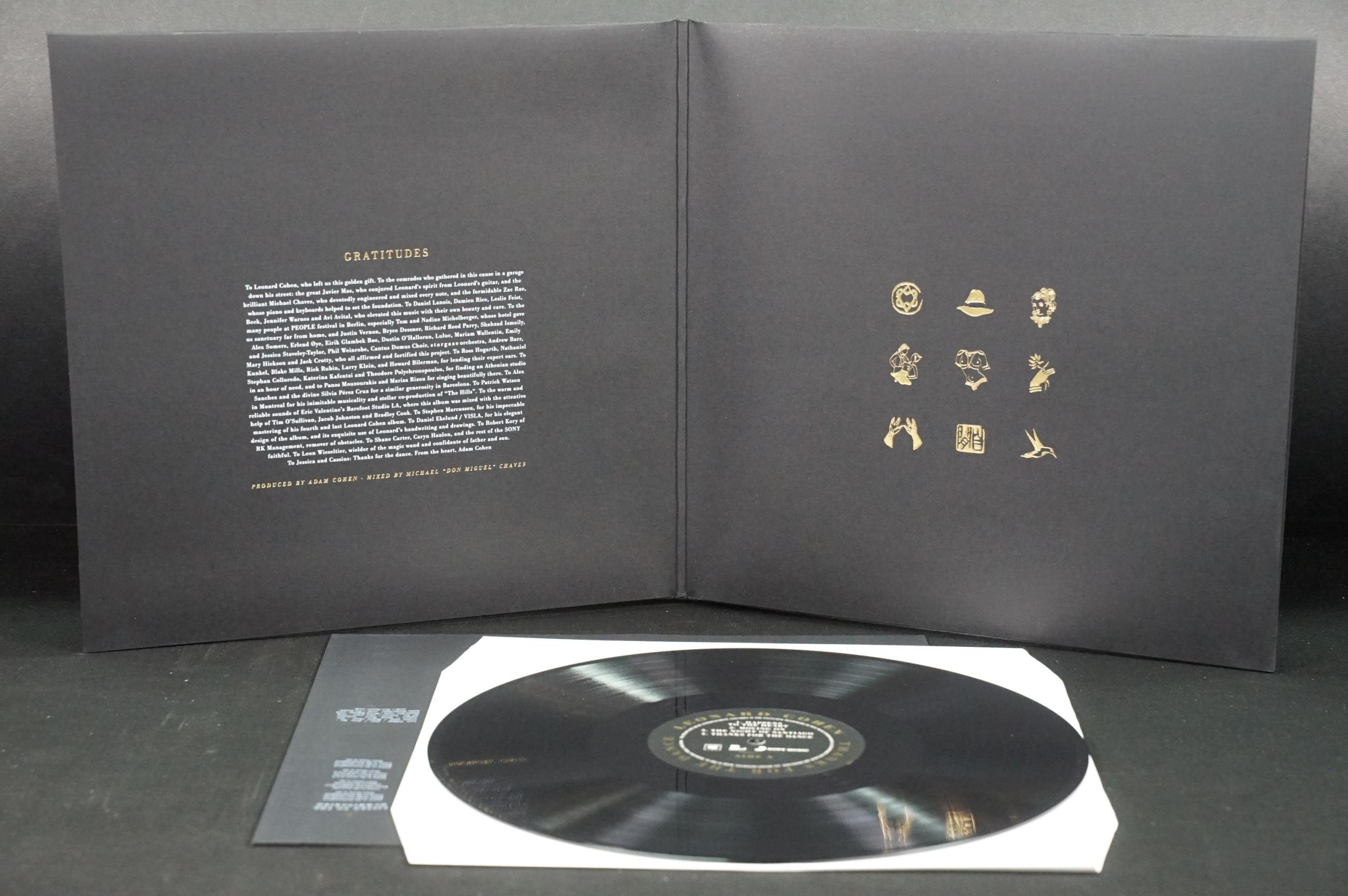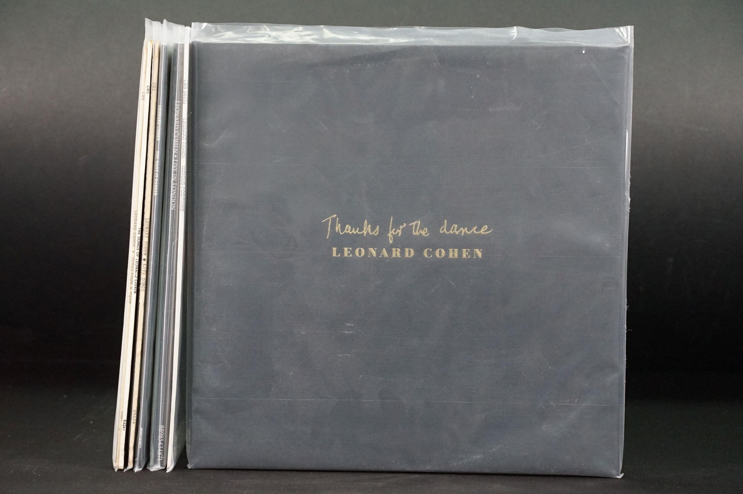 Vinyl - 7 Leonard Cohen LPs to include Thanks For The Dance, Various Positions, Live In London, You Want It Darker, Live Songs, The Songs Of, Songs From A Room. At least Vg+ overall