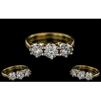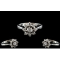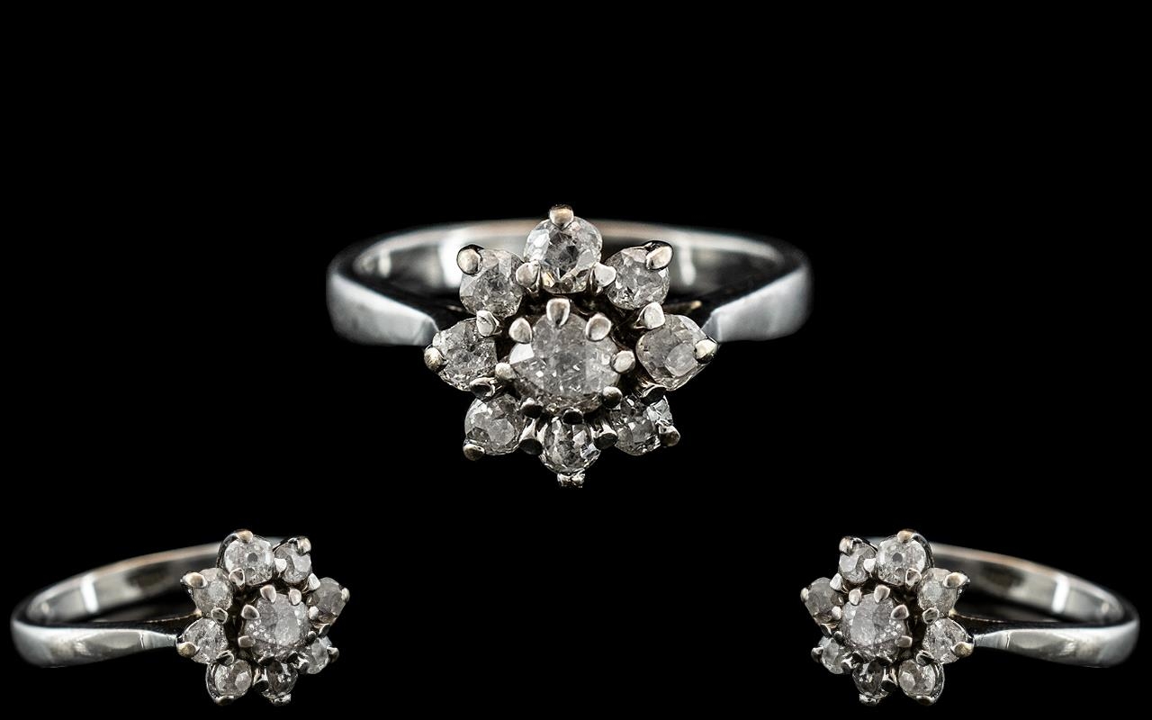 18ct White Gold - Attractive Diamond Set Cluster Ring - Flower head Setting. Marked 18ct to Interior of Shank. Diamonds of Good Sparkle, Est Diamond Weight 0.70 pts. Ring Size P. Weight 5.3 grams. Shank / Setting Excellent Condition.