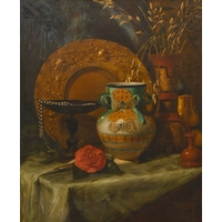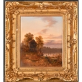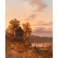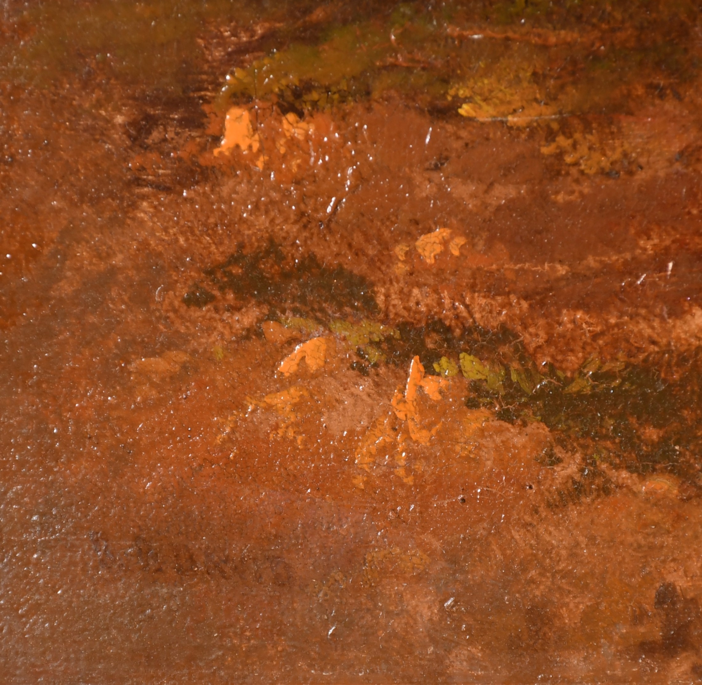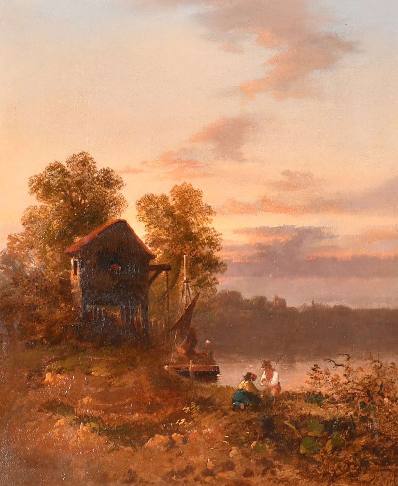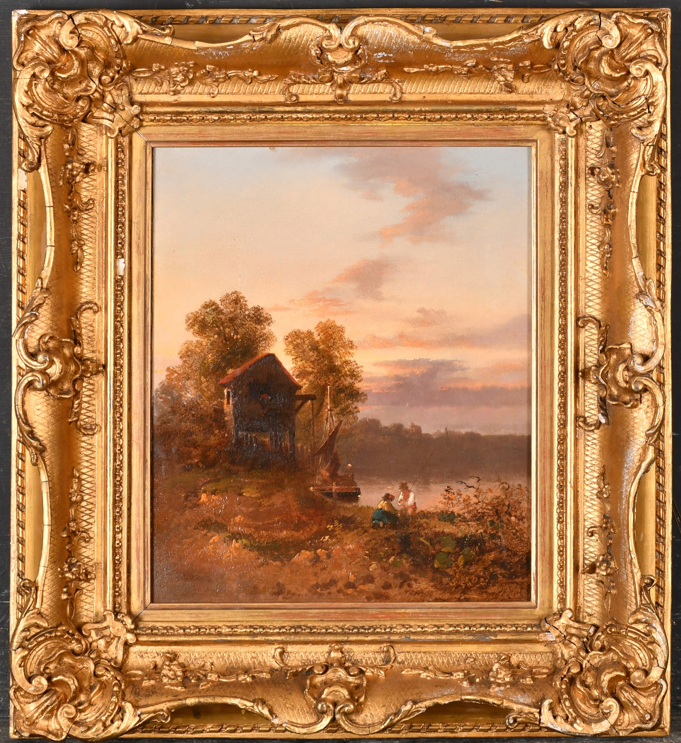 Richard B David (act.1866-1870) British. Figures by a River, Oil on canvas, Signed, 12" x 10" (30.5 x 25.4cm)