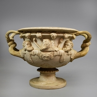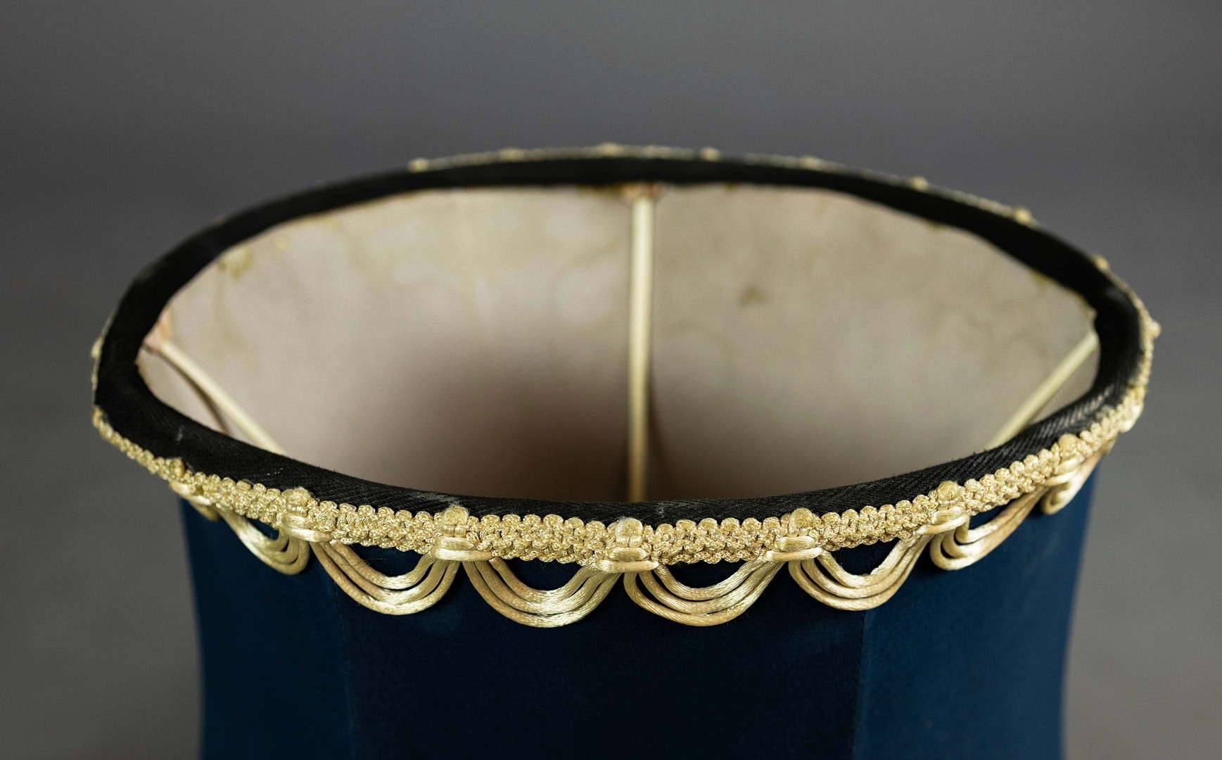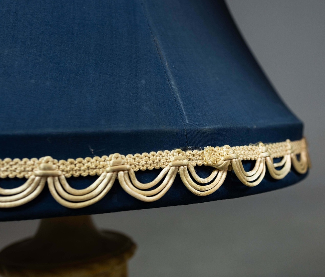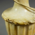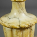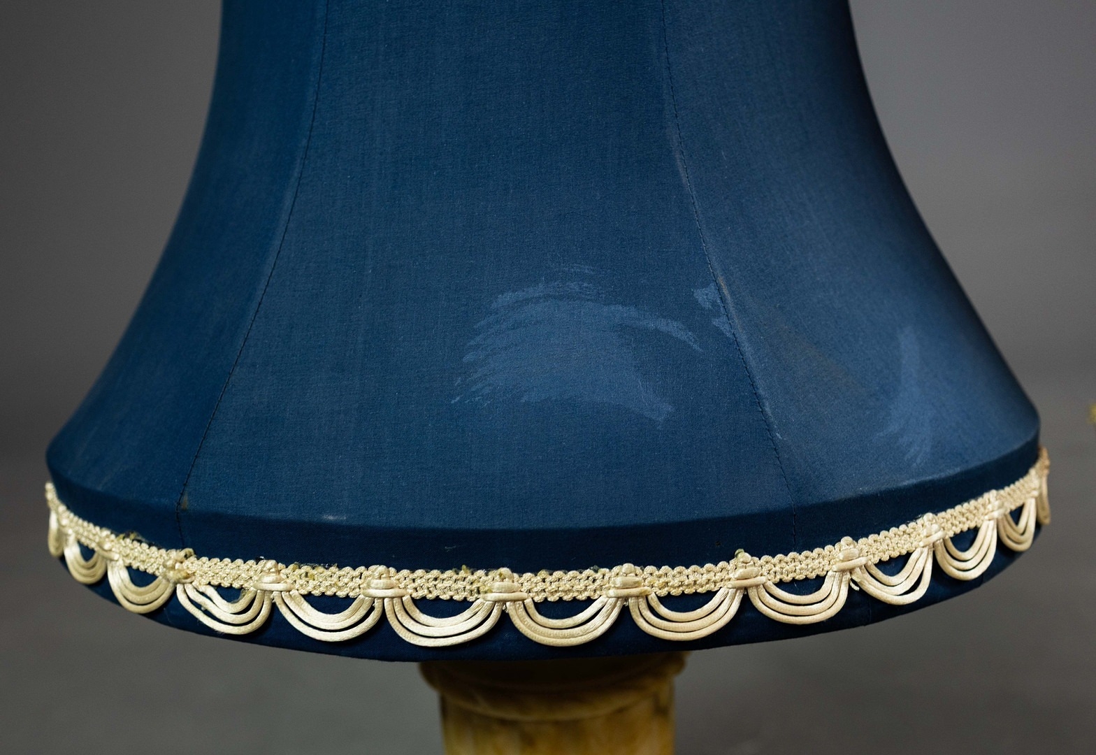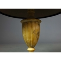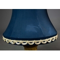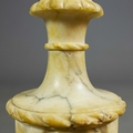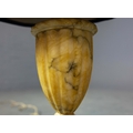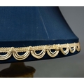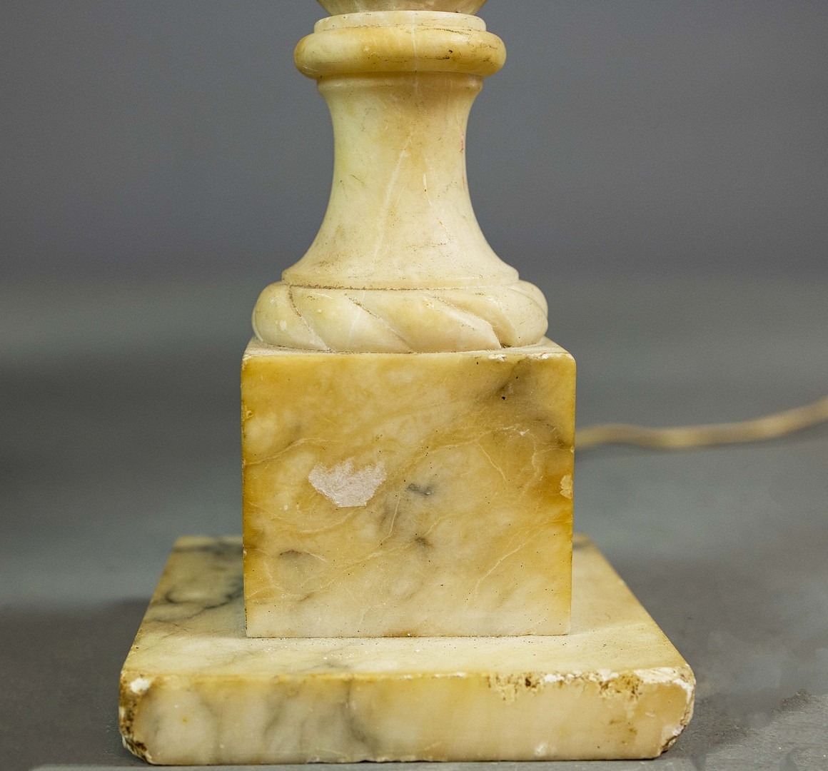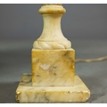 A PAIR OF NEO-CLASSICAL ITALIAN MARBLE 'GRAND TOUR' URN TABLE LAMPS. (2). in variegated white marble with dark inclusions and dark blue shades. 90cm H with shades.