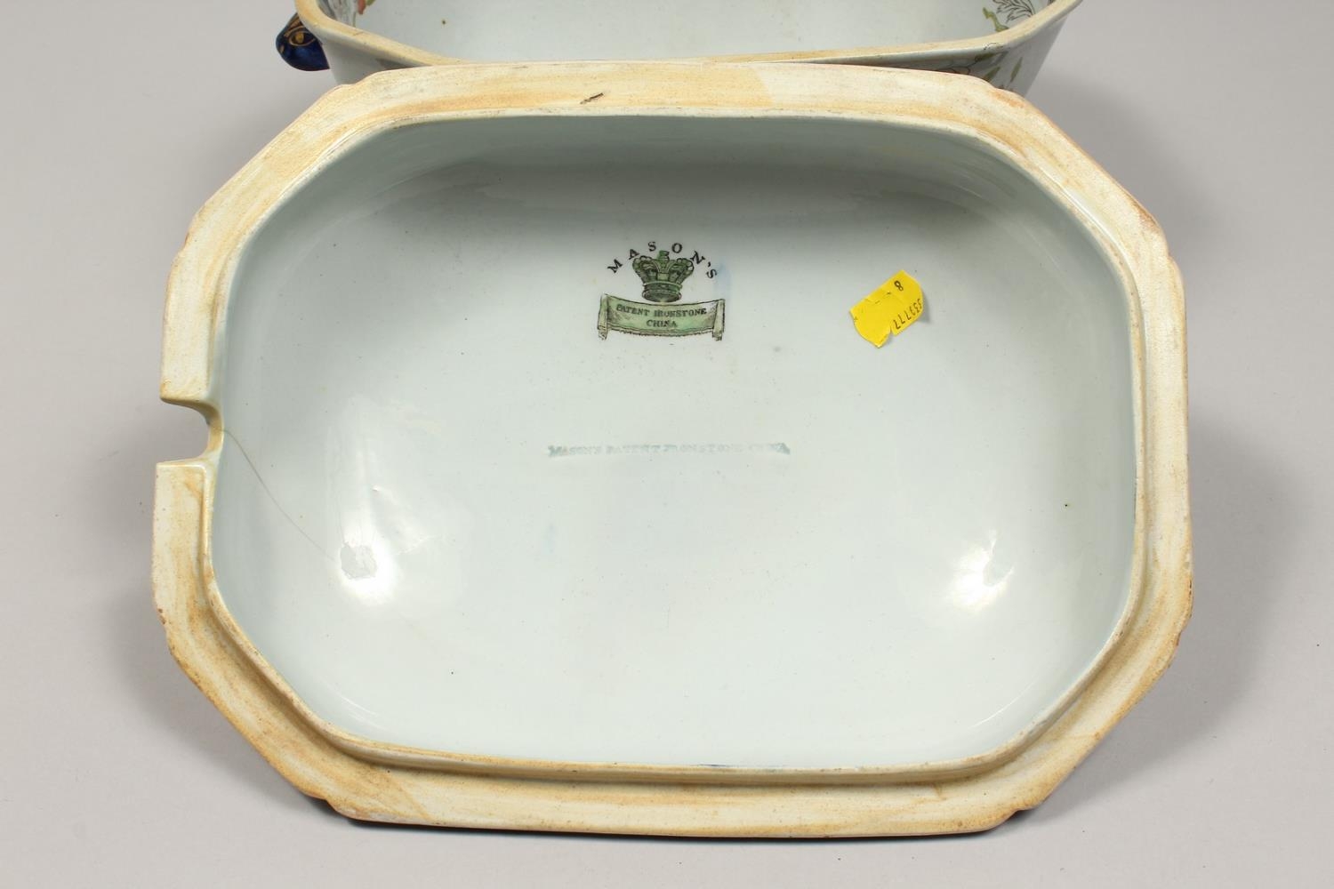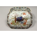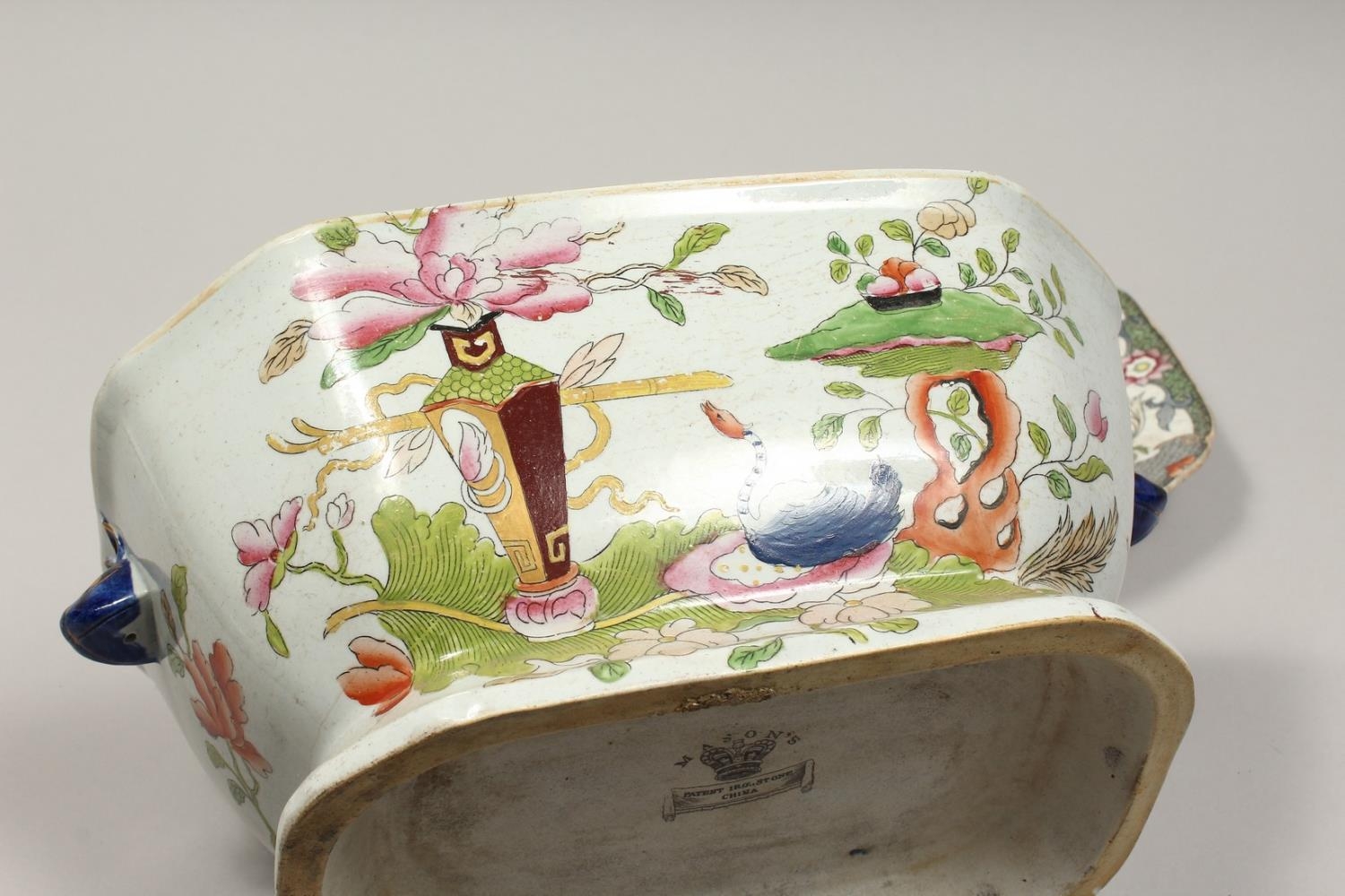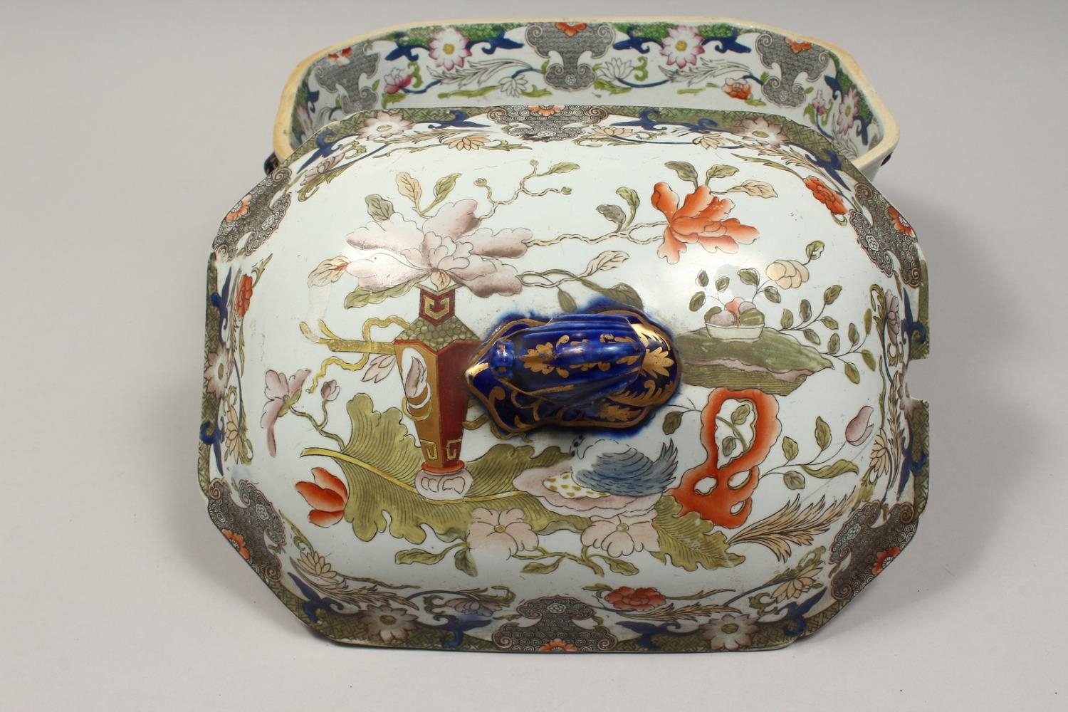 A MASONS IRONSTONE GREYISH JAPAN PATTERN TUREEN, COVER AND STAND. 12ins high.