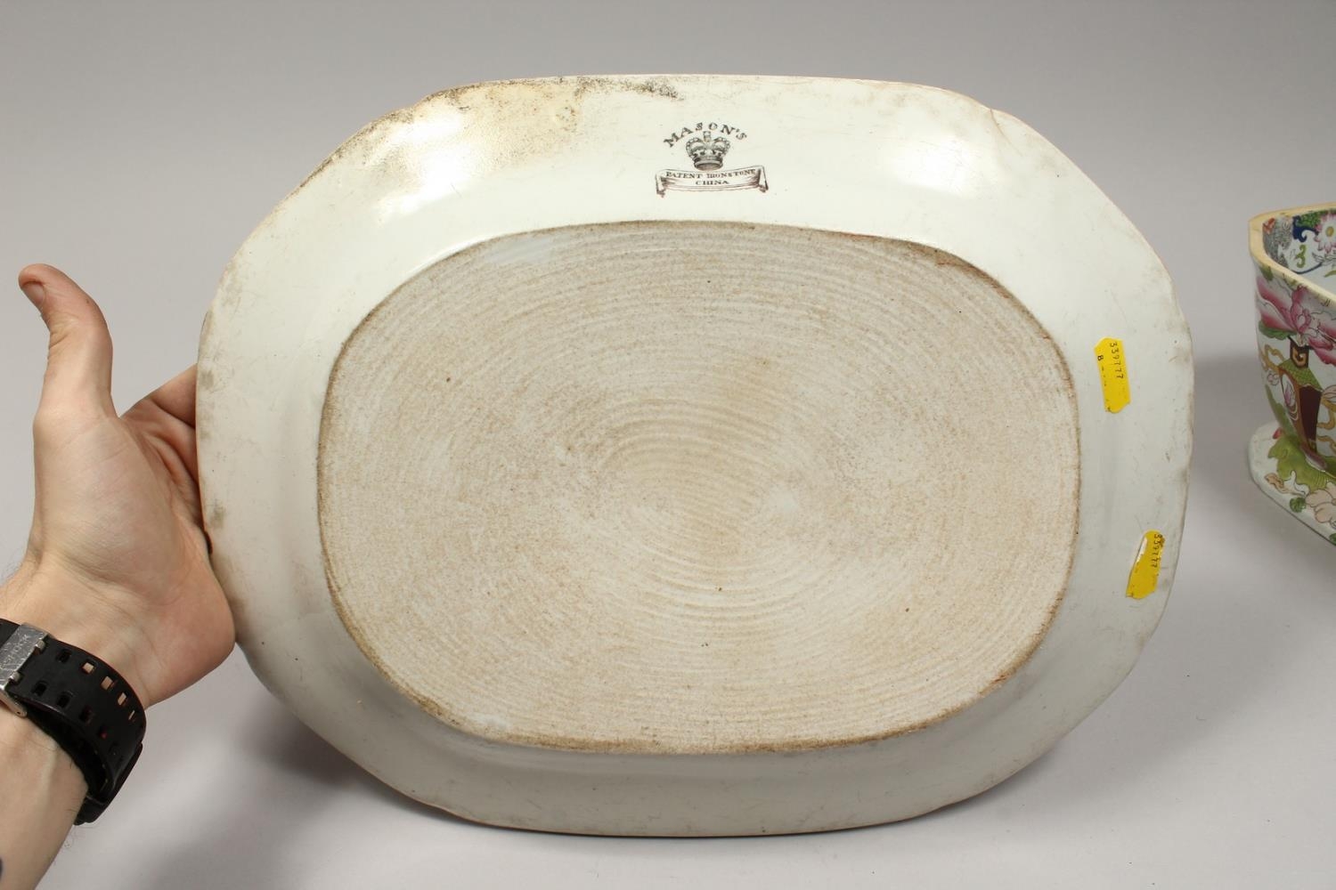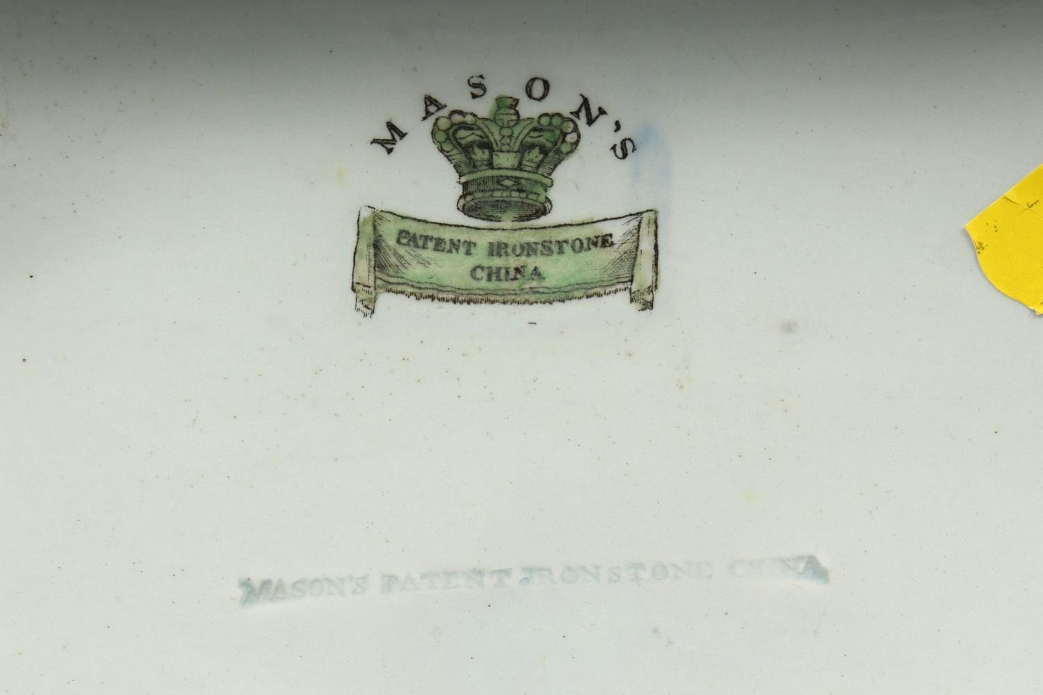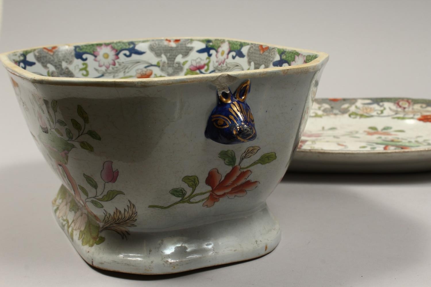 A MASONS IRONSTONE GREYISH JAPAN PATTERN TUREEN, COVER AND STAND. 12ins high.