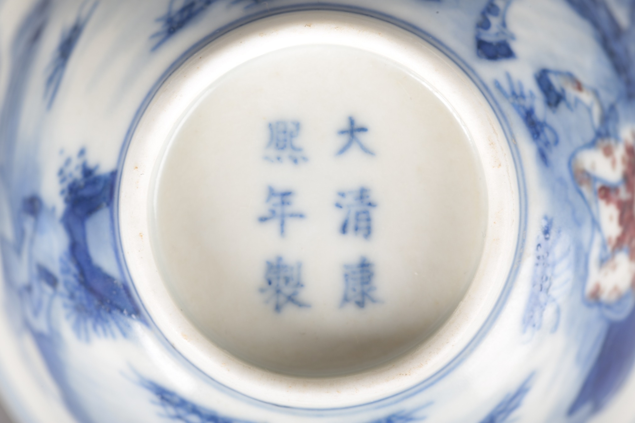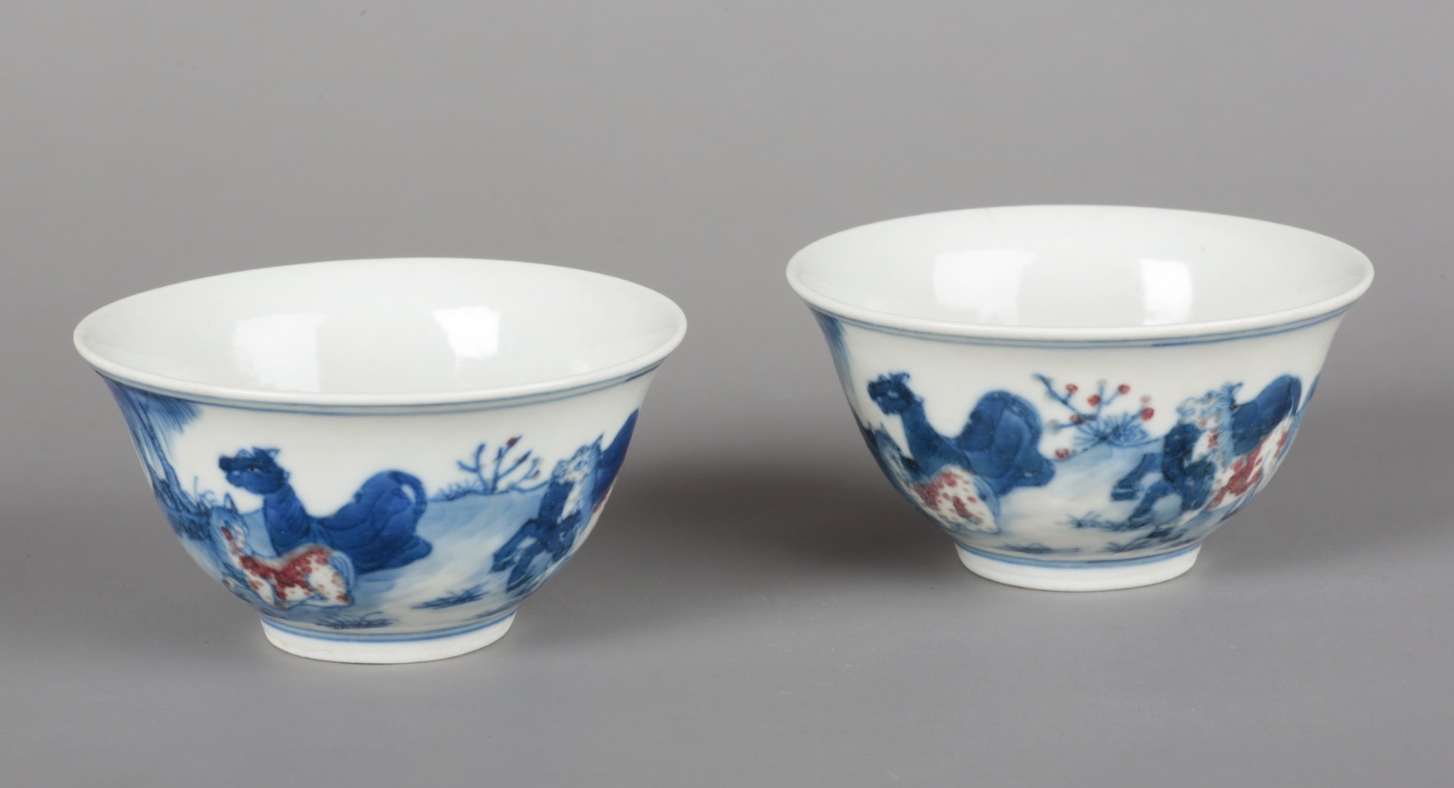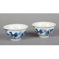A PAIR OF CHINESE PORCELAIN BLUE, WHITE AND UNDERGLAZE RED TEABOWLS