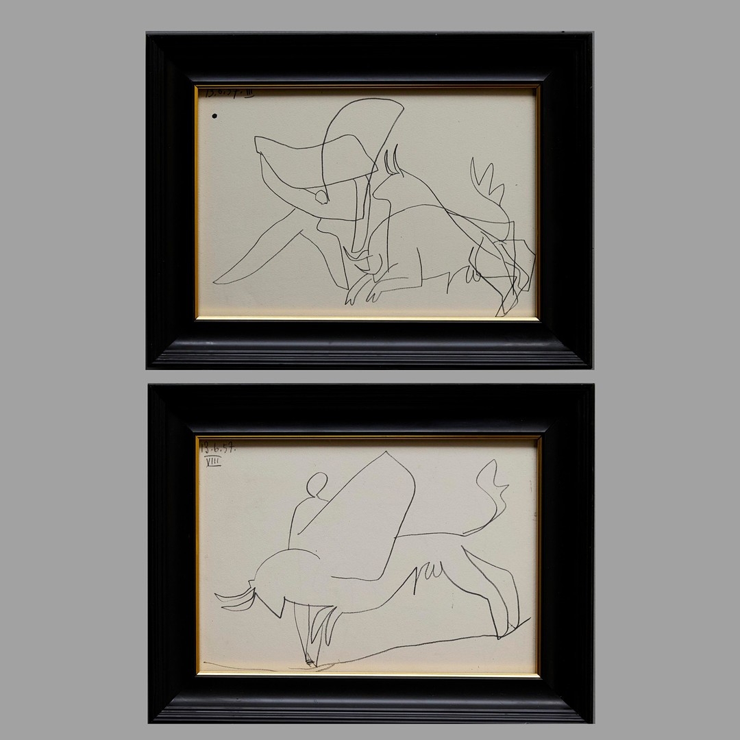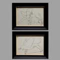 PABLO PICASSO. TOROS Y TOREROS. (d) Lithograph. 16cms x 24cms, Framed (Published Luis Miguel Dominguin and printed Atelier Mourlot) ( A Pair, 2). (Subject to ARR see Buyers Conditions).