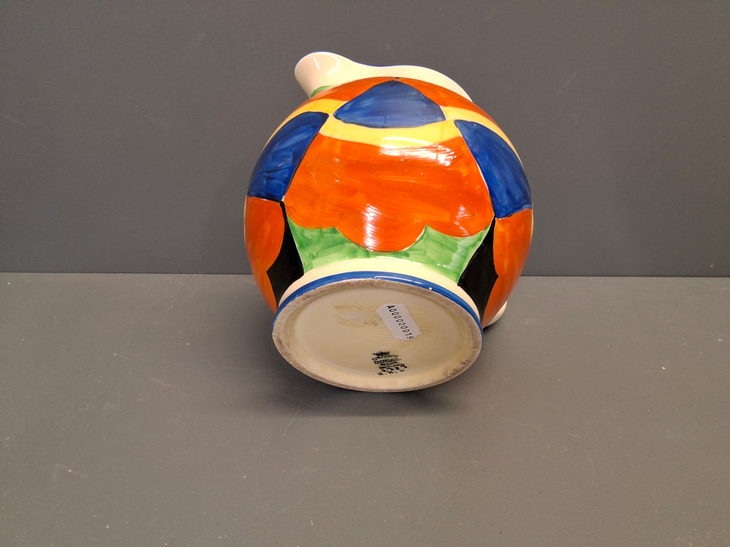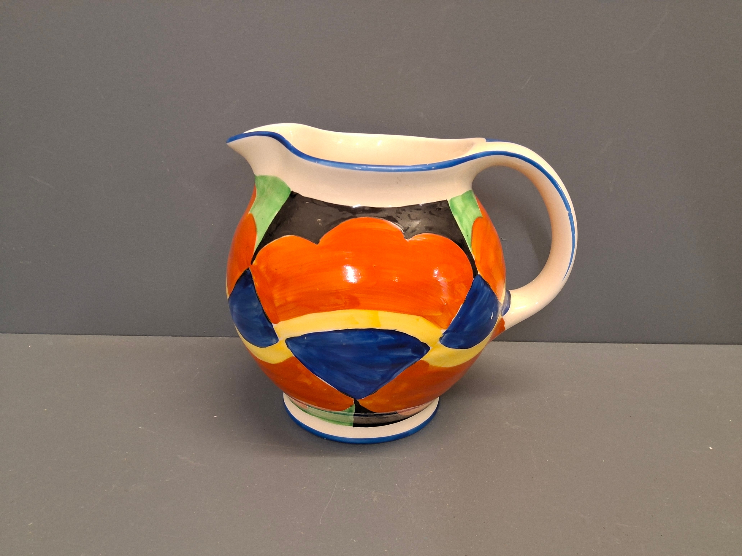 Crown Ducal ware pitcher circa 1925 in the style of Clarice Cliff