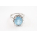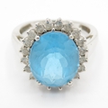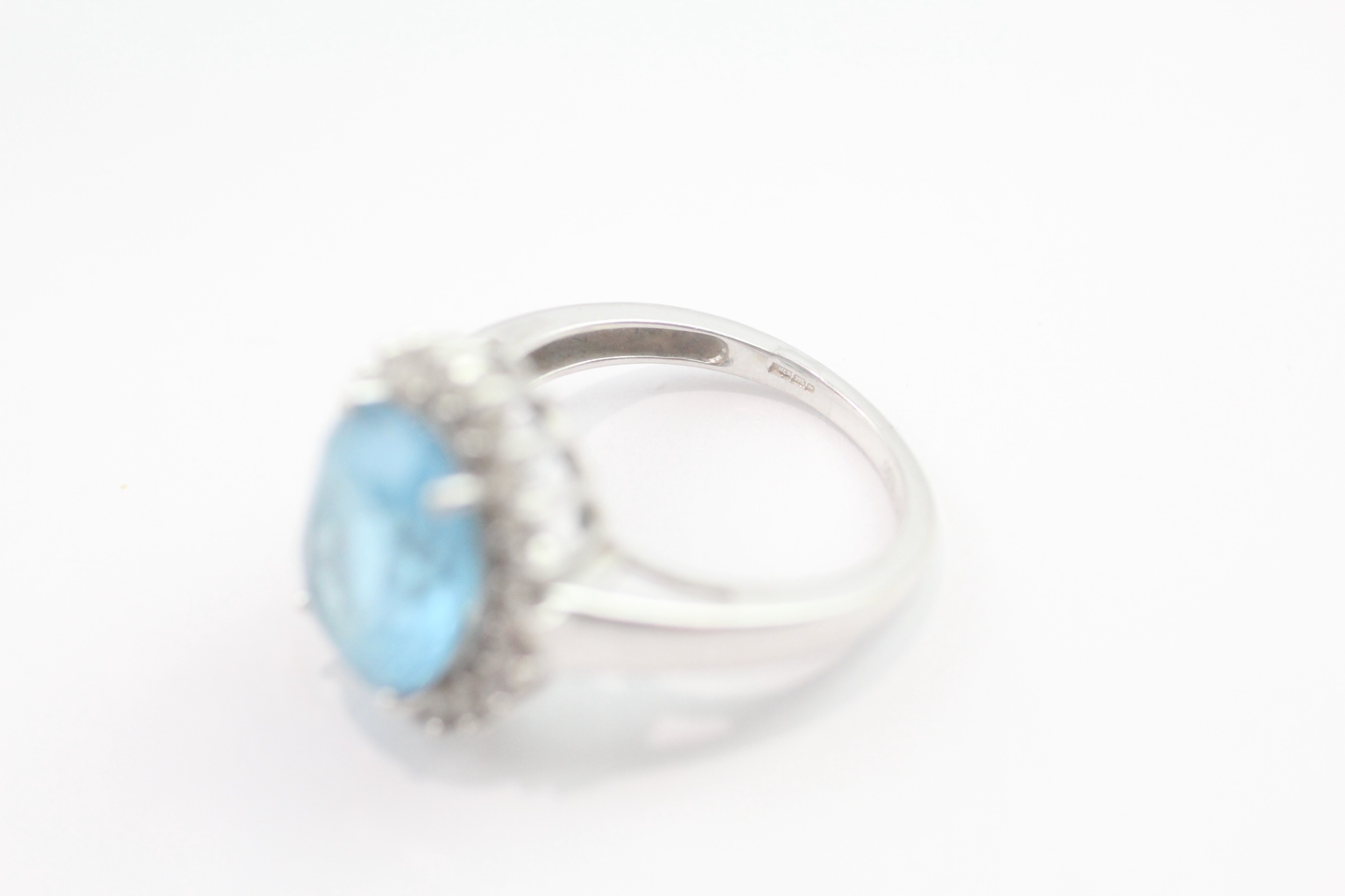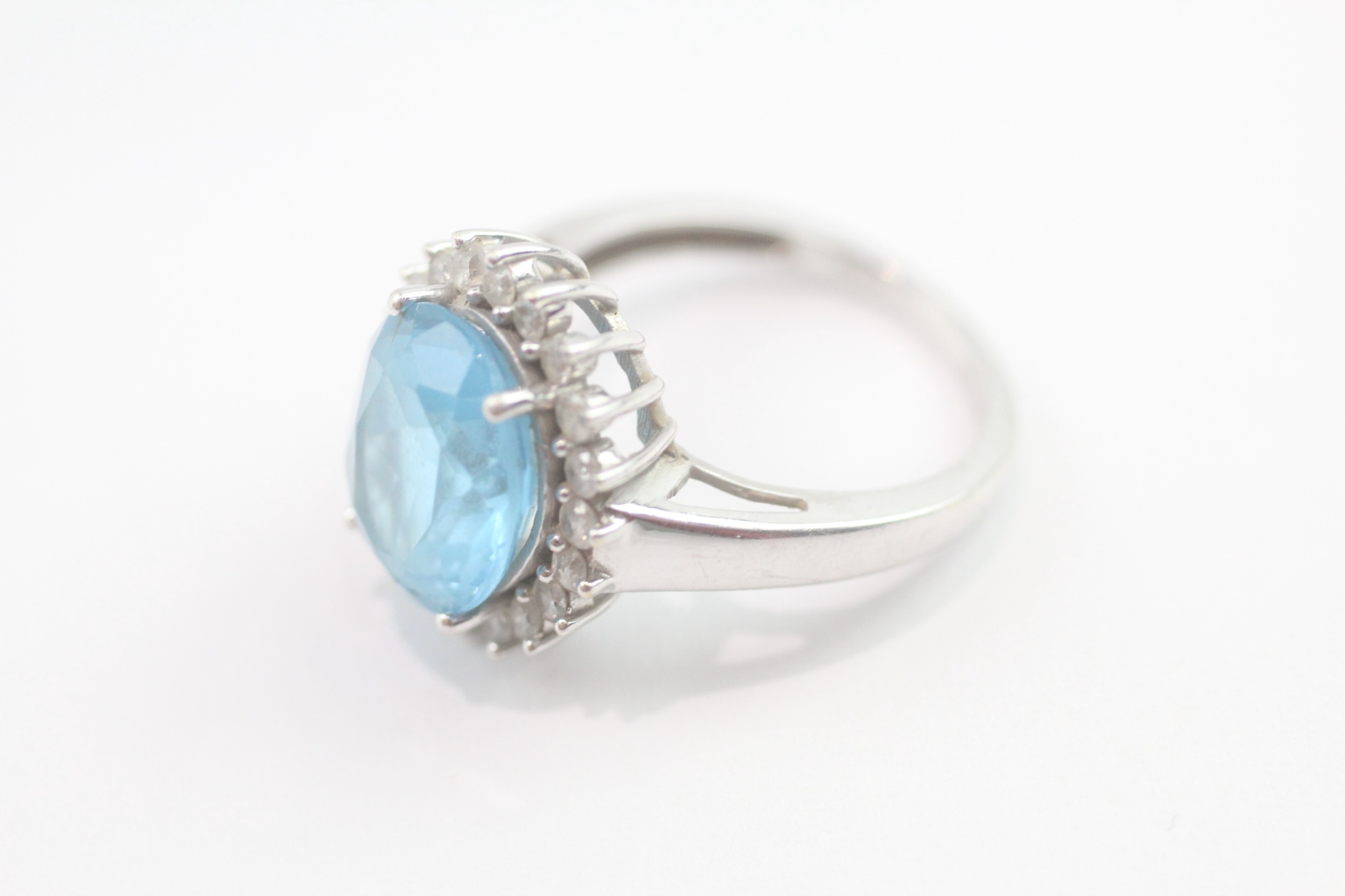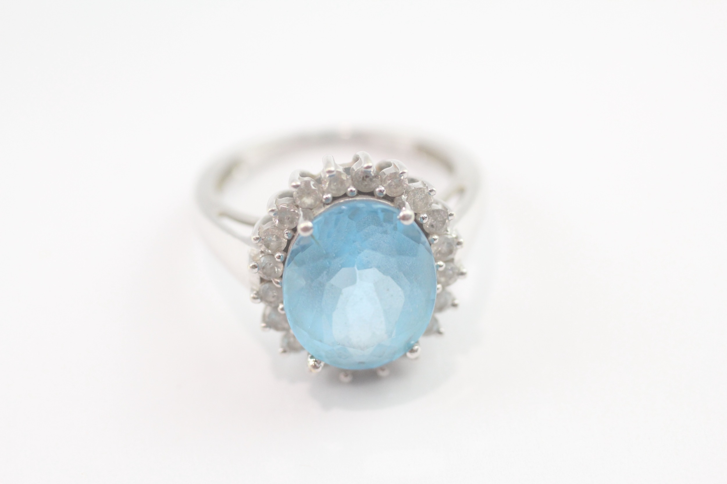 9ct gold blue topaz & diamond dress ring (4.6g) Size M