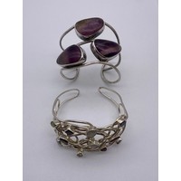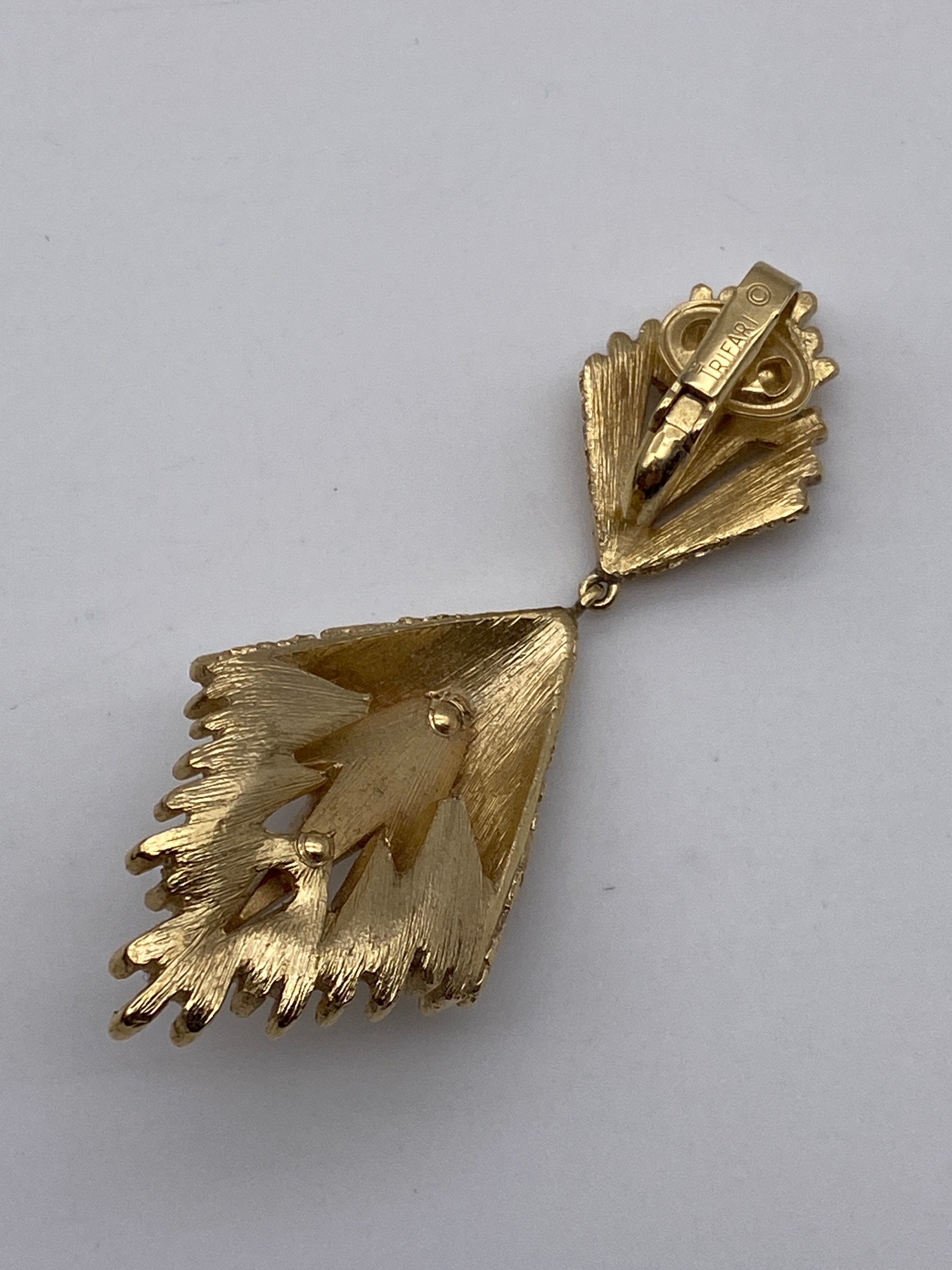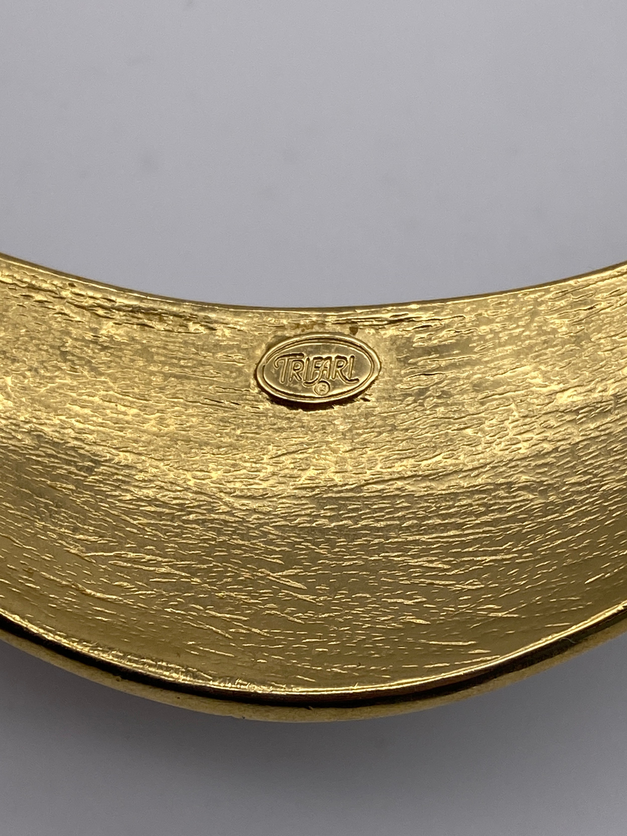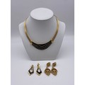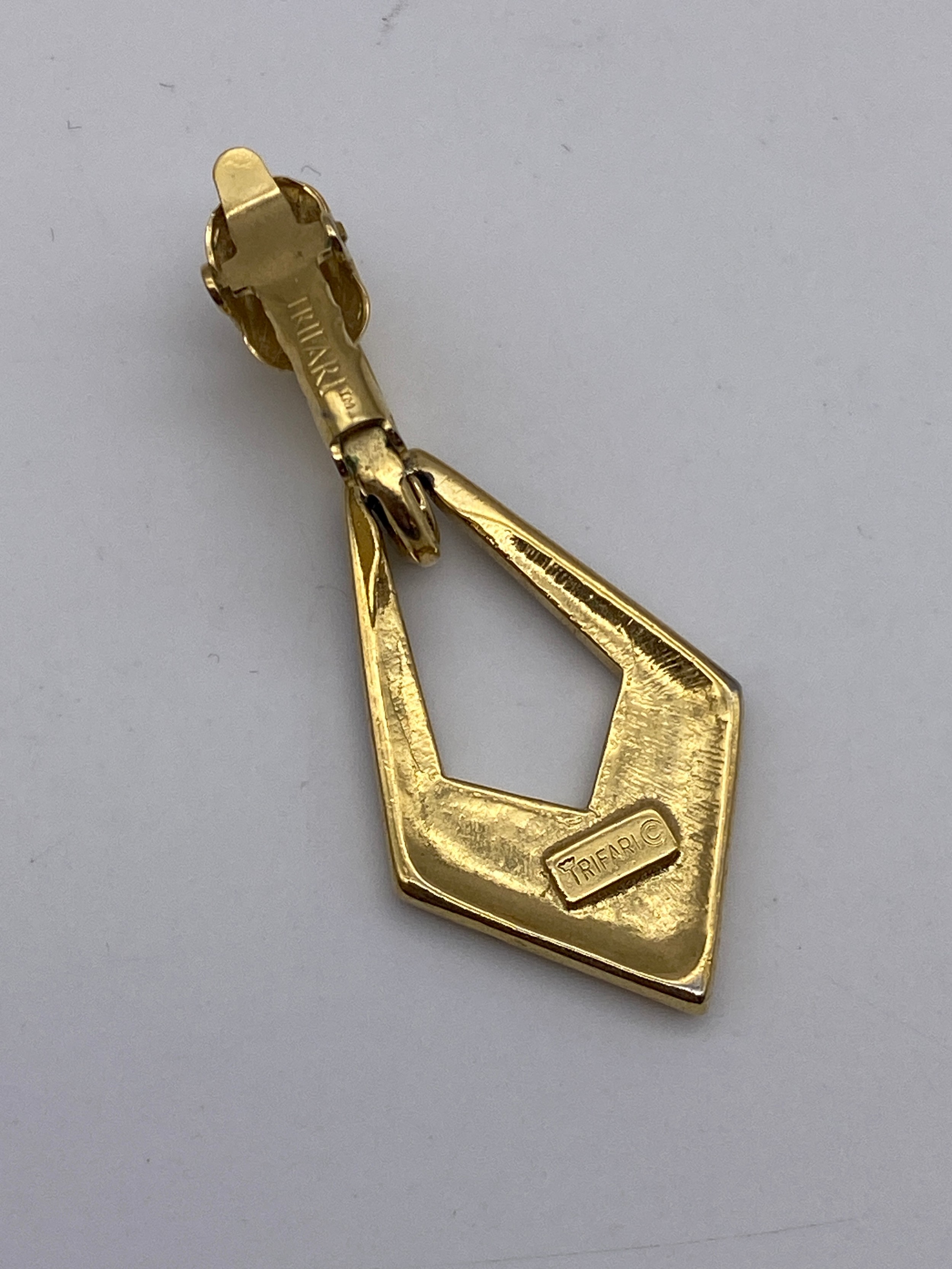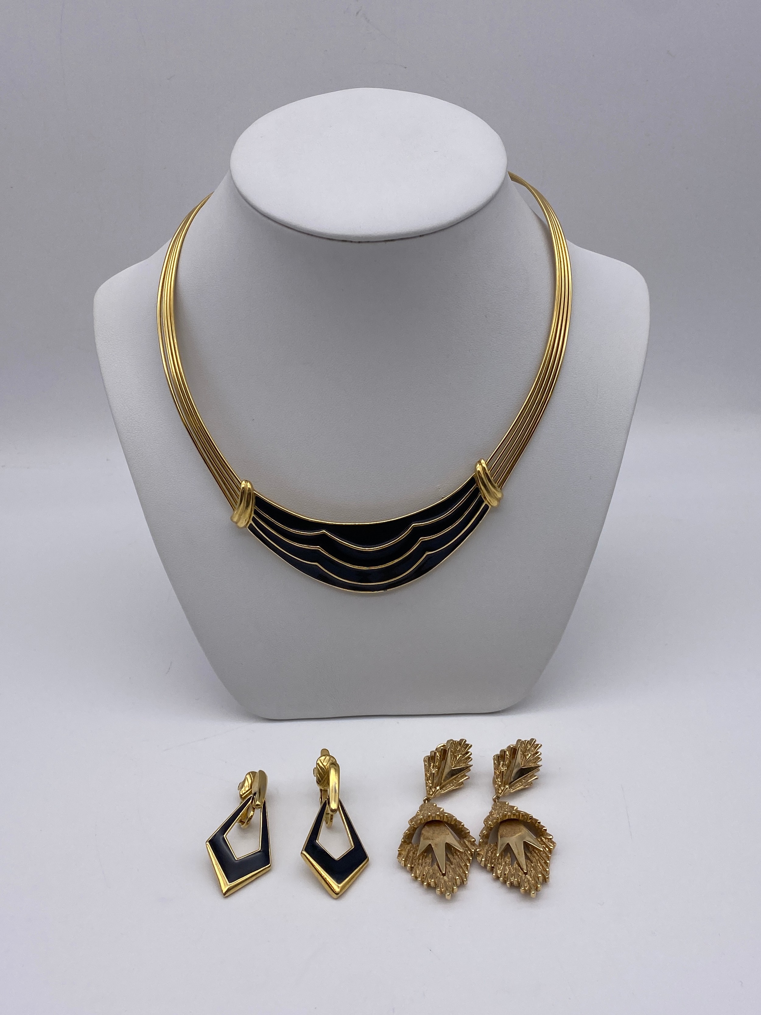TRIFARI PLATED AND ENAMEL LOZENGE DROPPER EARRINGS, CLIP ON EARRINGS AND AN ENAMELLED COLLAR CUFF