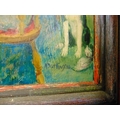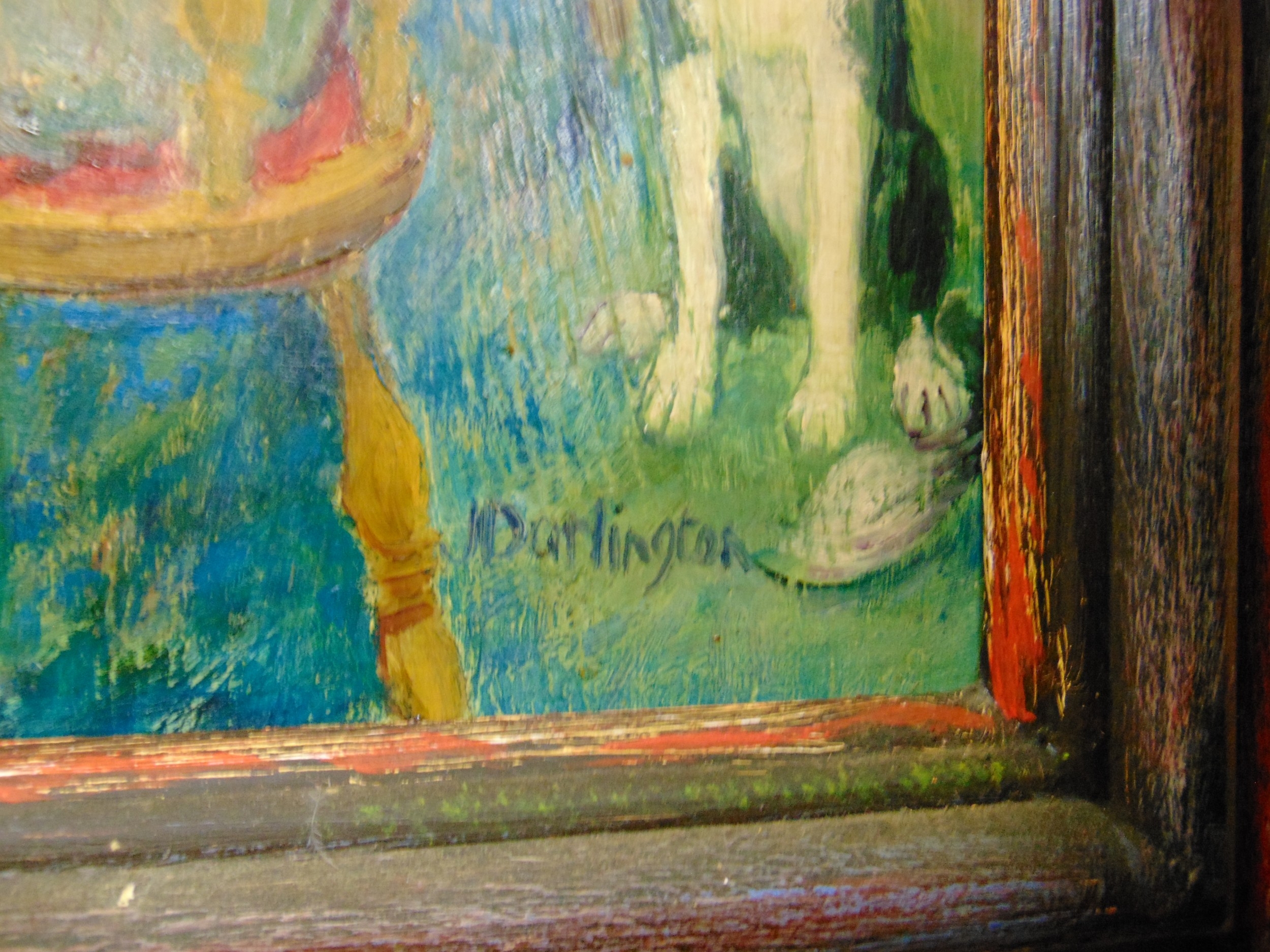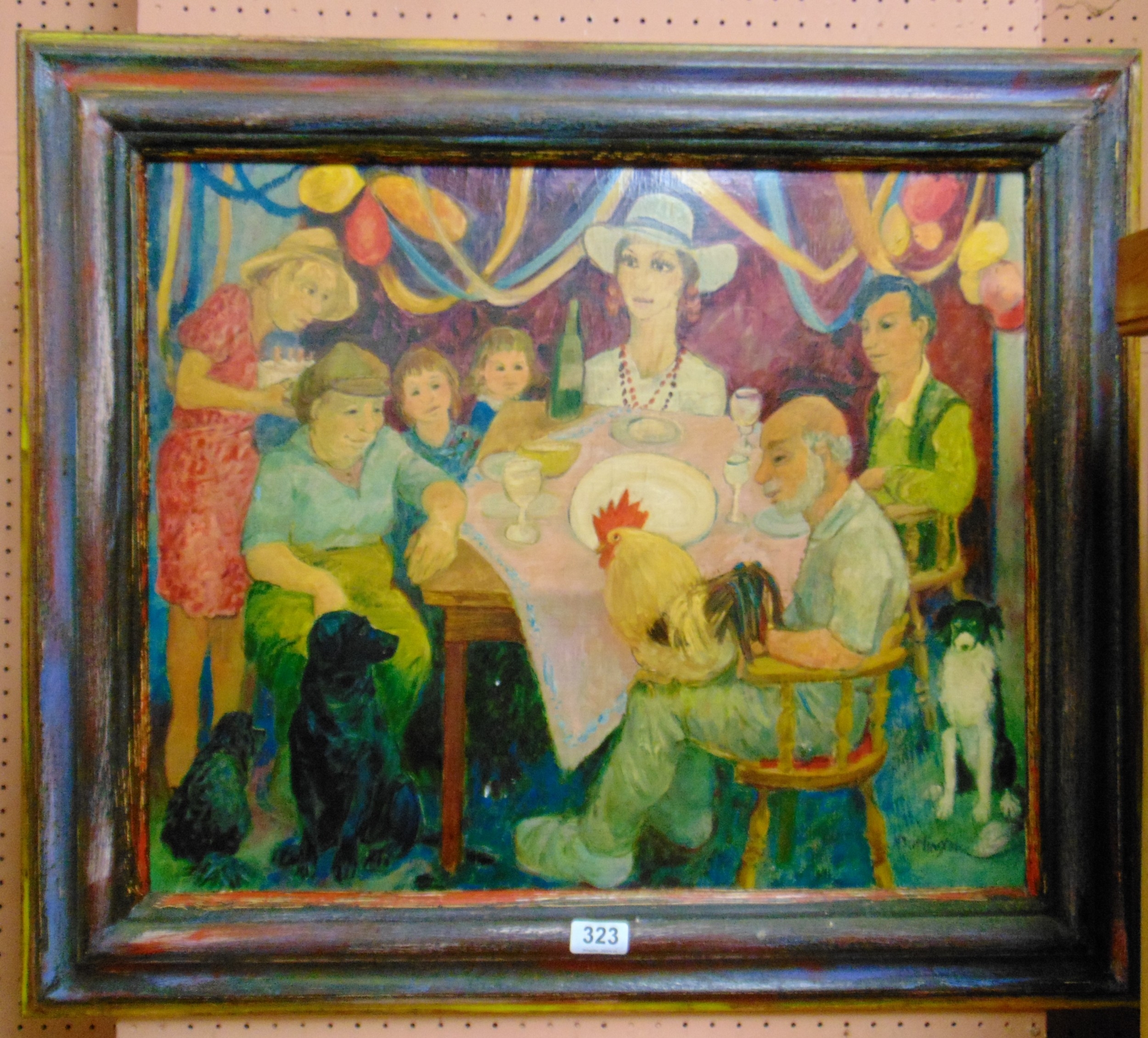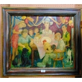 Darlington, framed oil, family gathered around a table, 19.5 x 23".