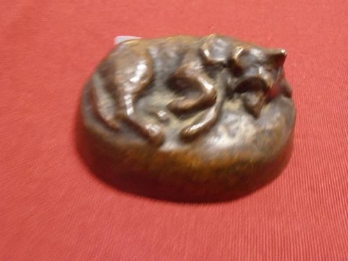 BRONZE SCULPTURE OF "A DOG ASLEEP"