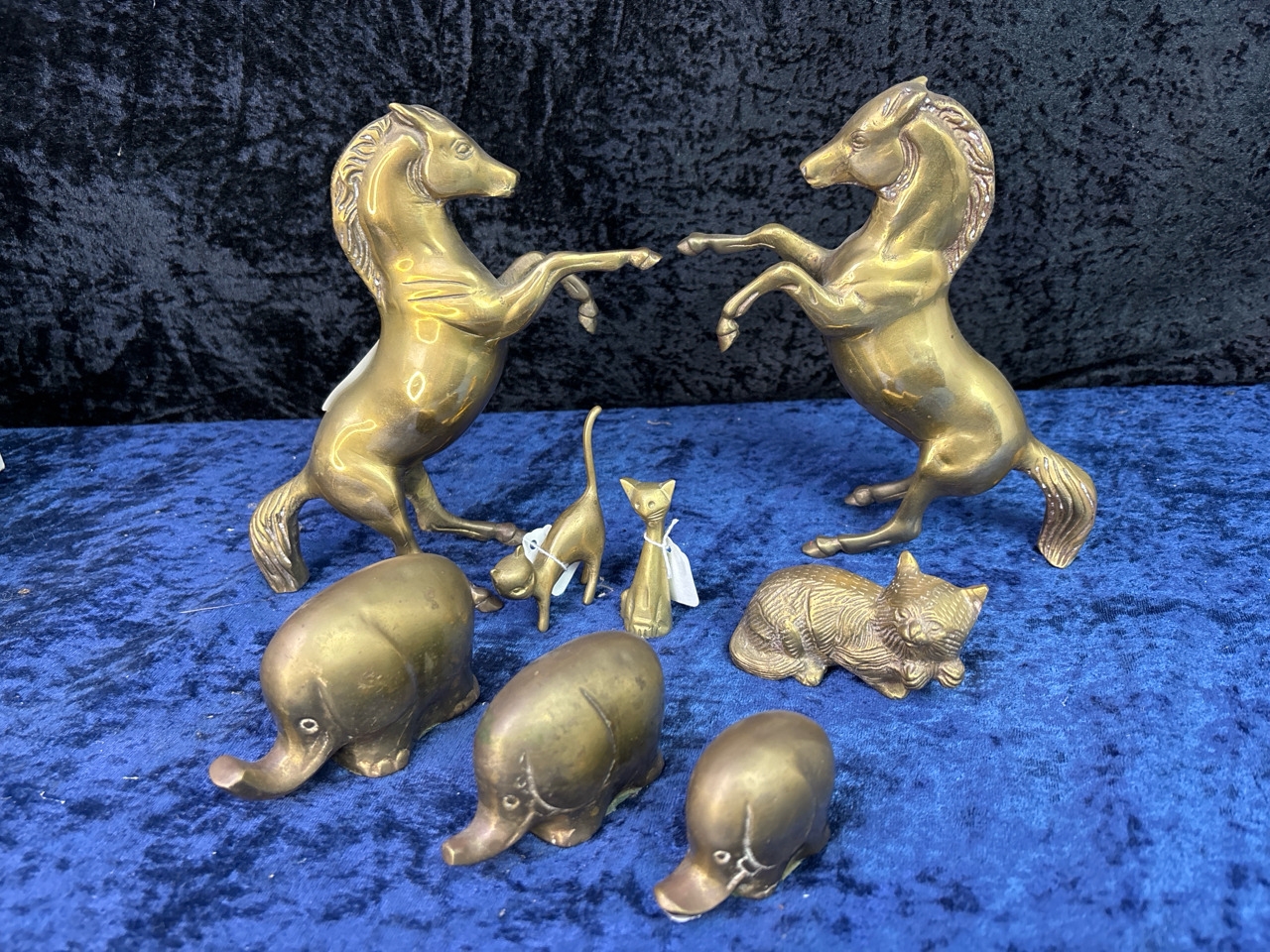 Collection of brass animal ornaments inc fab elephants and horses