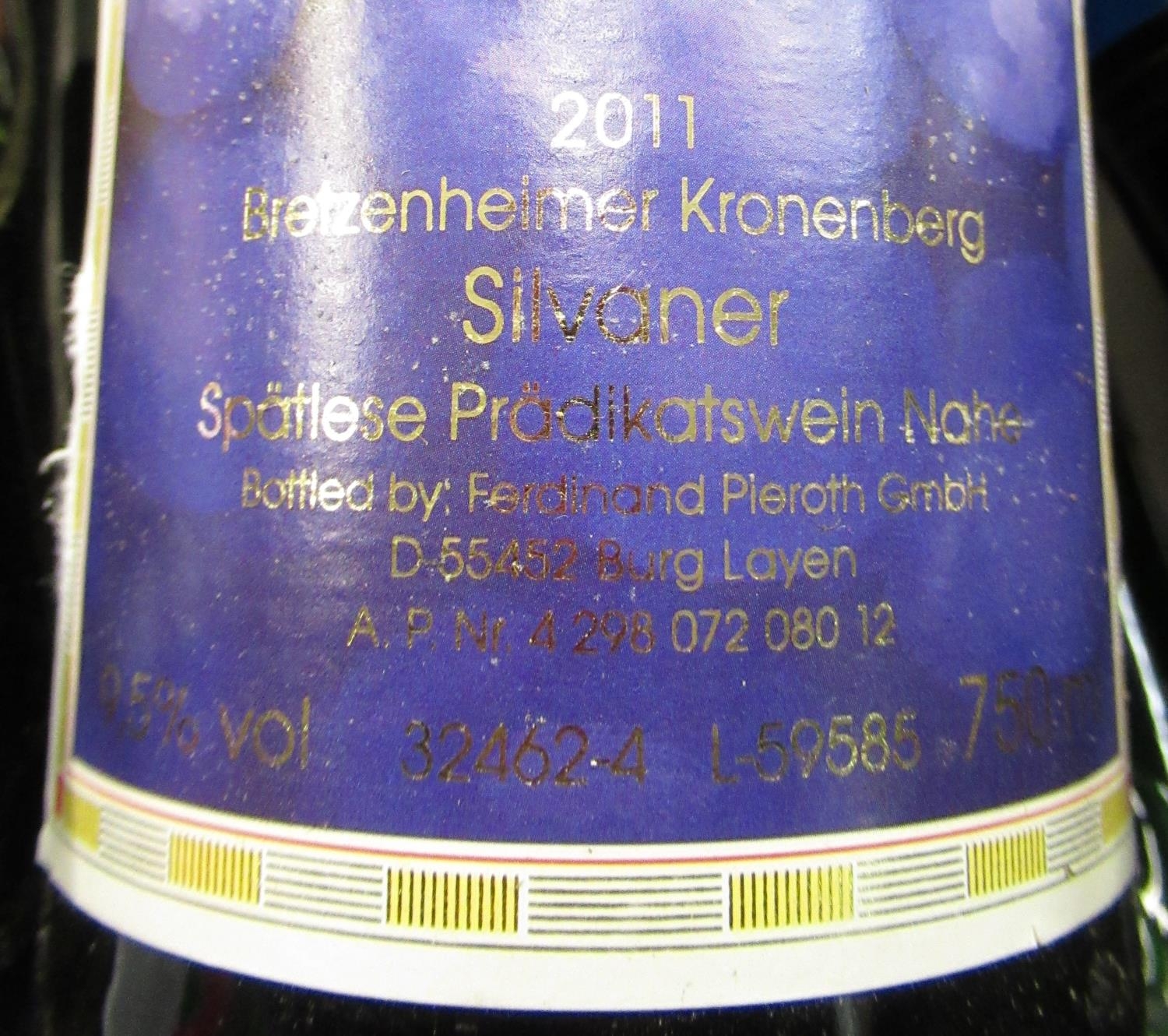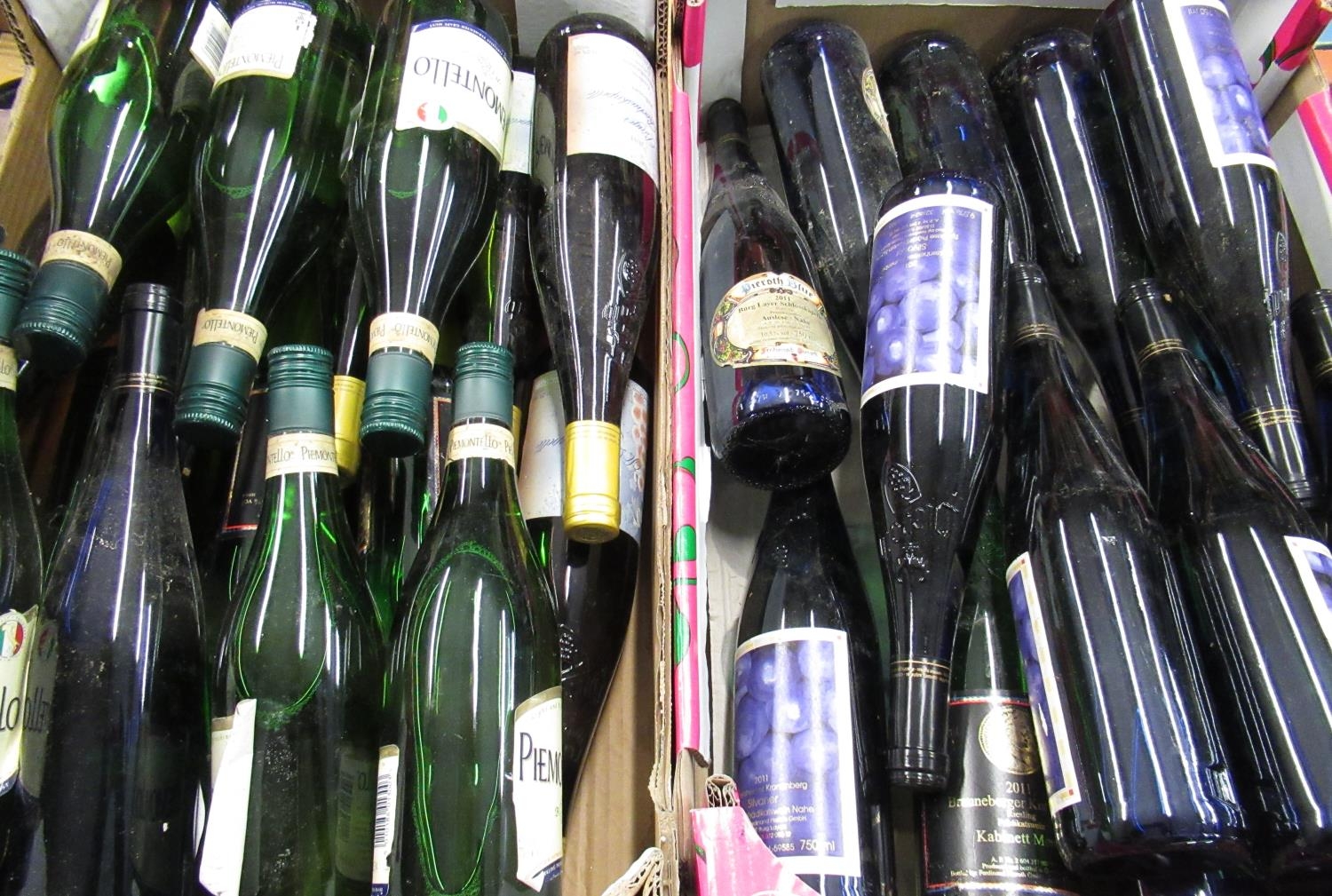 Collection of drinkable white wine including Silvaner 2011 (9.5% vol, 75cl, 6 btls), Piemontello (4% vol, 75cl, 5 btls), Rochuskapelle Silvaner (11% vol, 75cl, 4 btls), Pieroth Blue (10.5% vol, 75cl, 8 btls), Mosel Riesling (8.5% vol, 75cl, 5 btls)