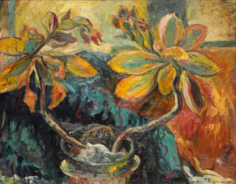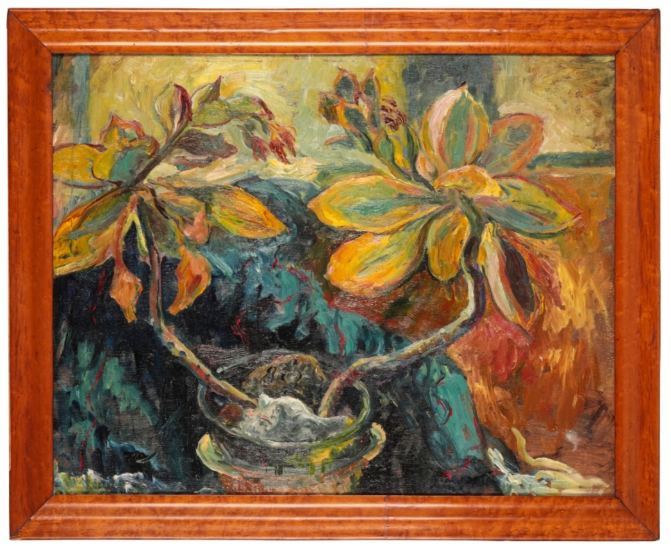 *MAVIS FREER (1927-2016) 'Yellow Green Plant in Pot'oil on board, 46.5cm x 59cmProvenance: The Mavis Freer Collection, Part II.