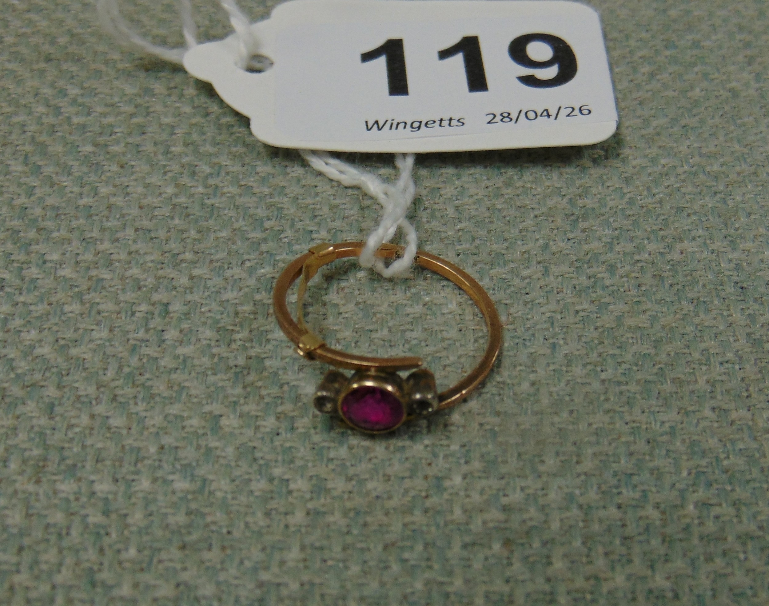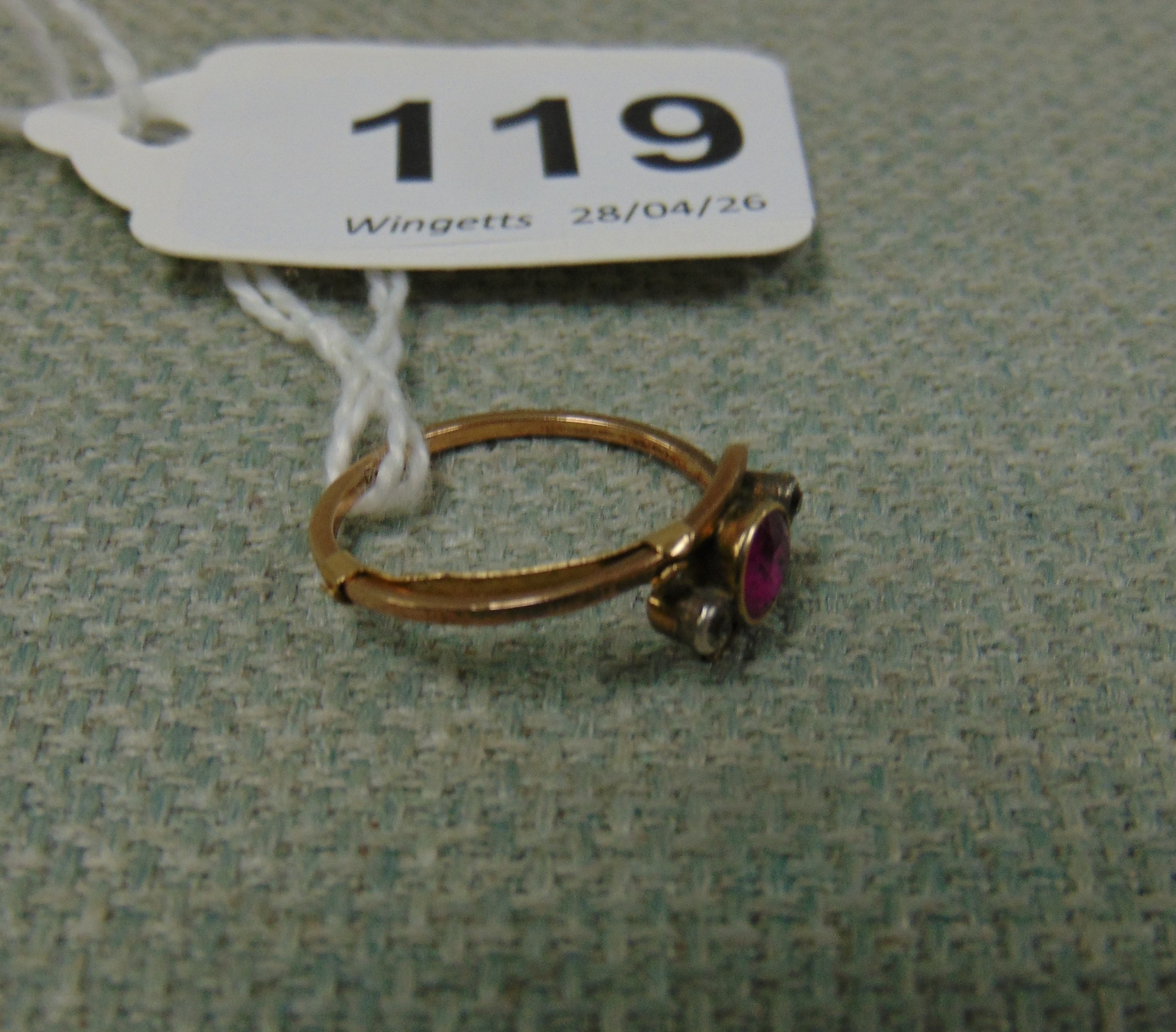 9ct gold ring, set with pink ruby, size N, 1.4 gms.