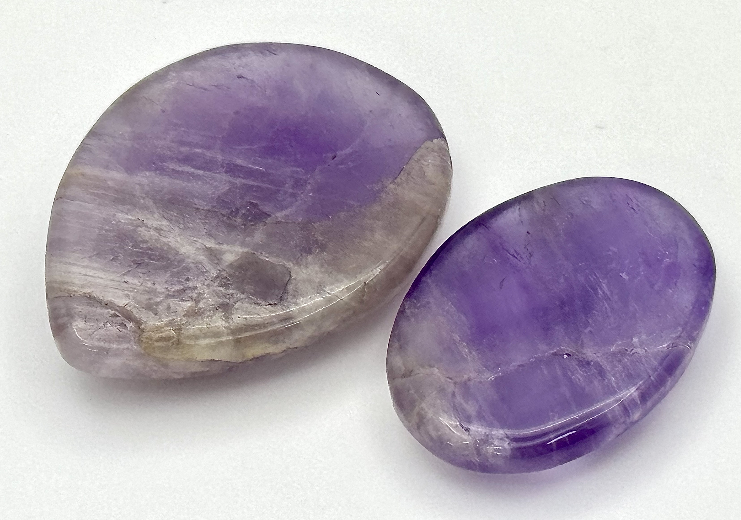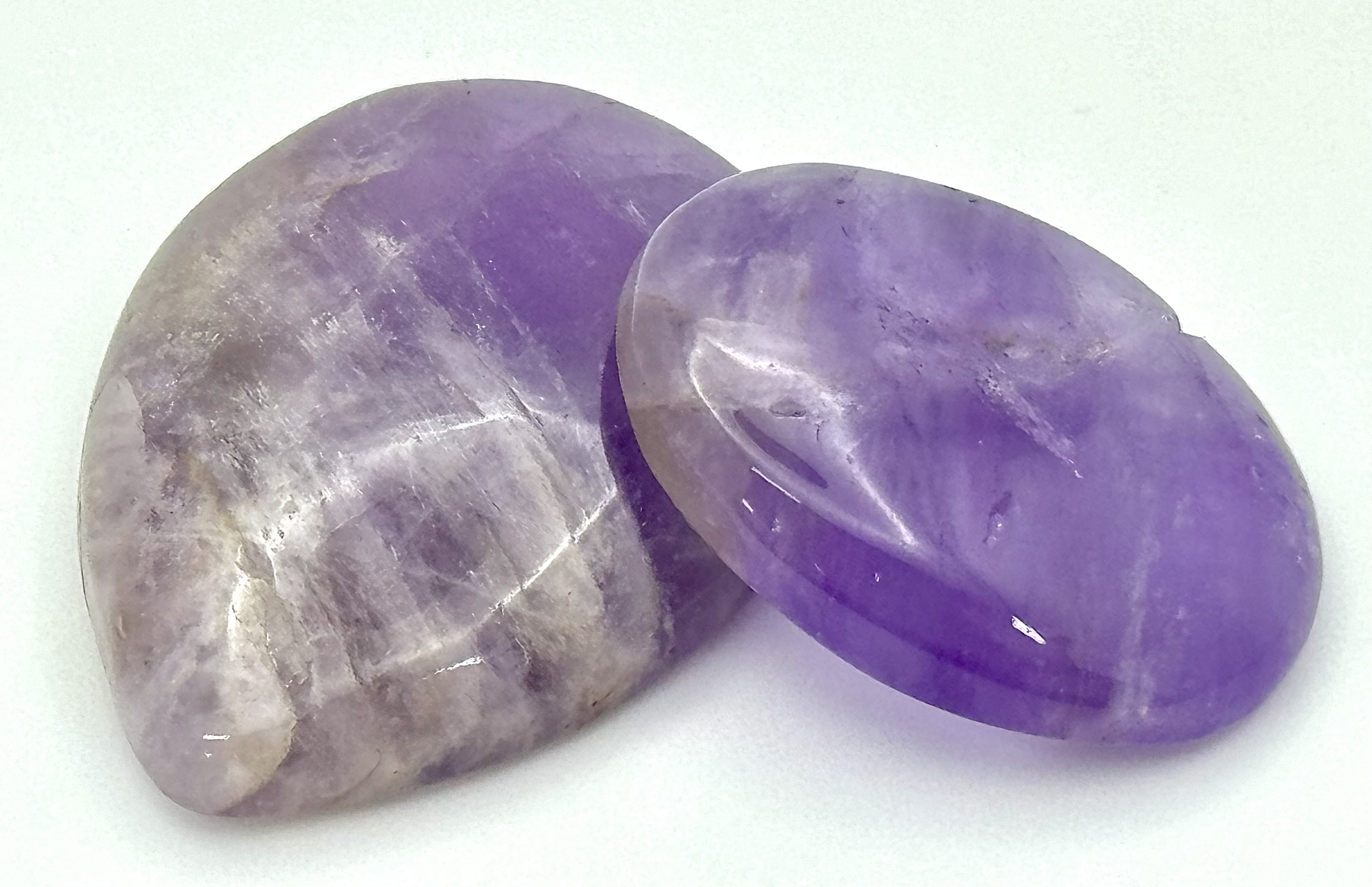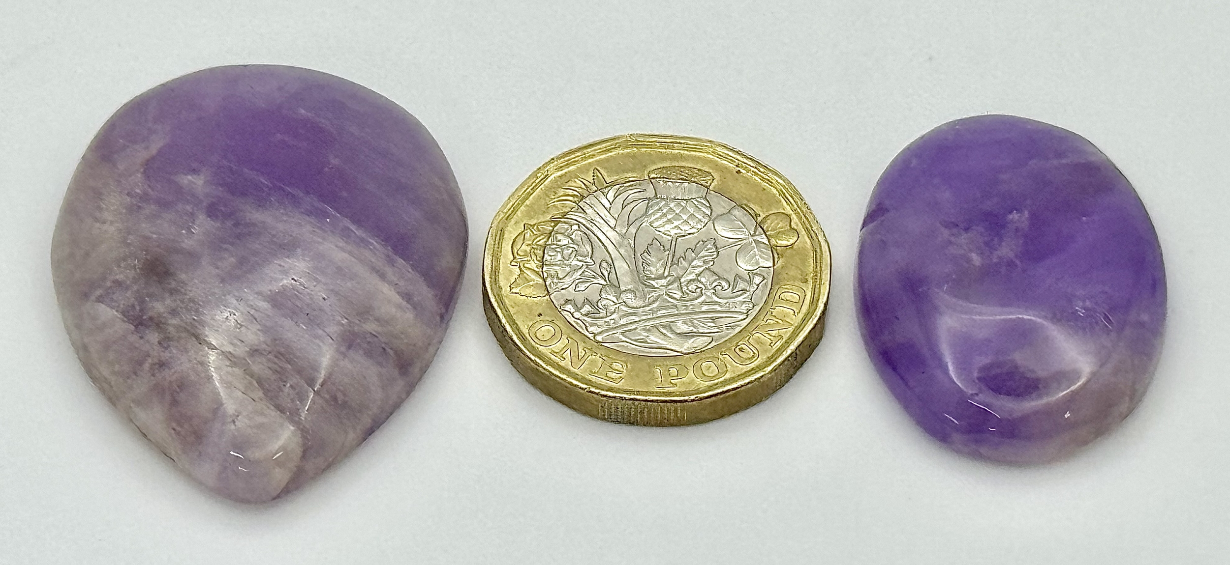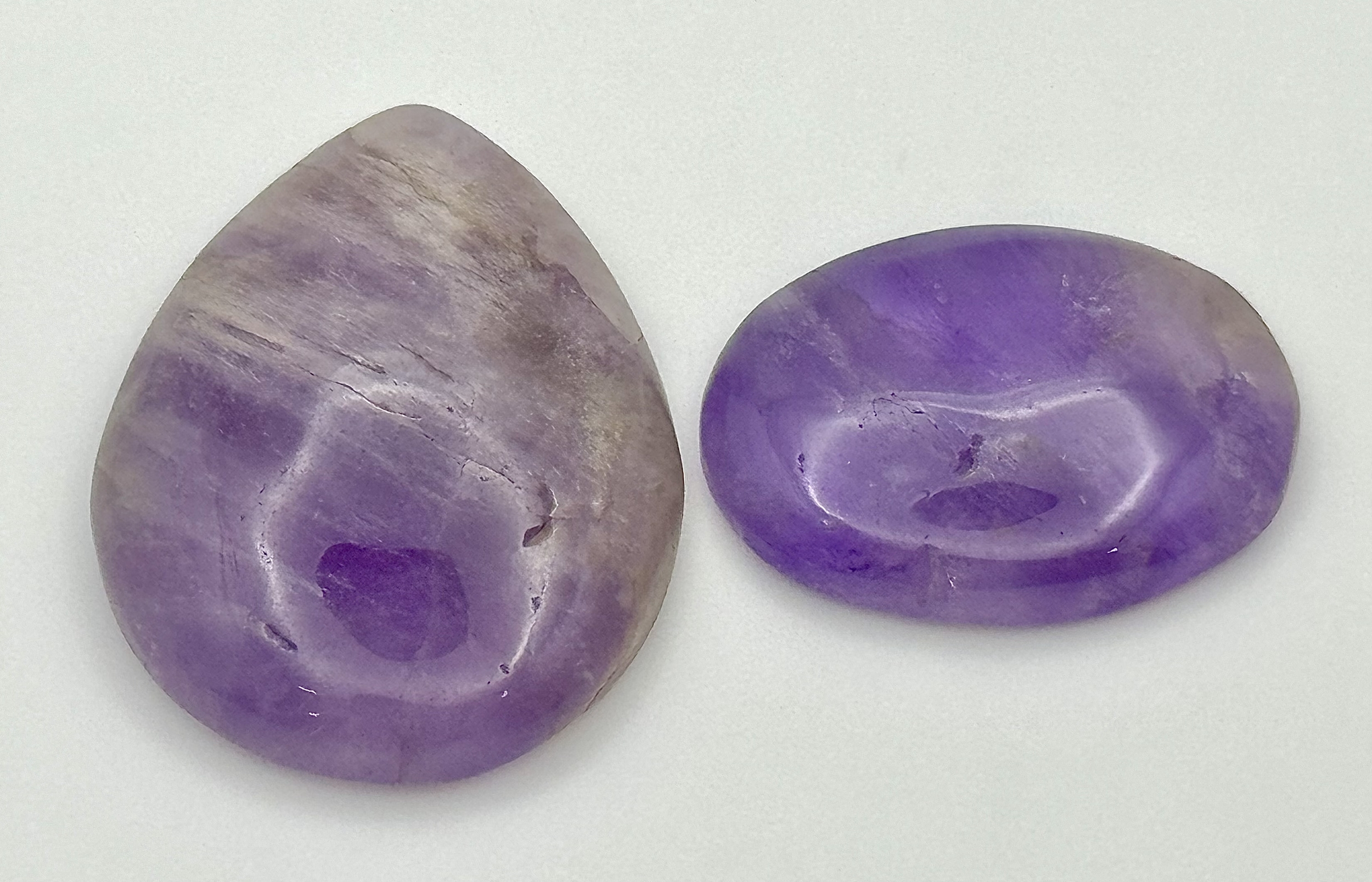 Two Pieces of 86.50ctw Cabochon Amethyst Gemstones. Pear and oval shapes. Ref: V.C.43