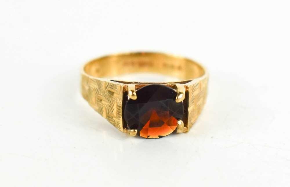 A 9ct gold and garnet ring, of modernist design, size M, 2.67g.