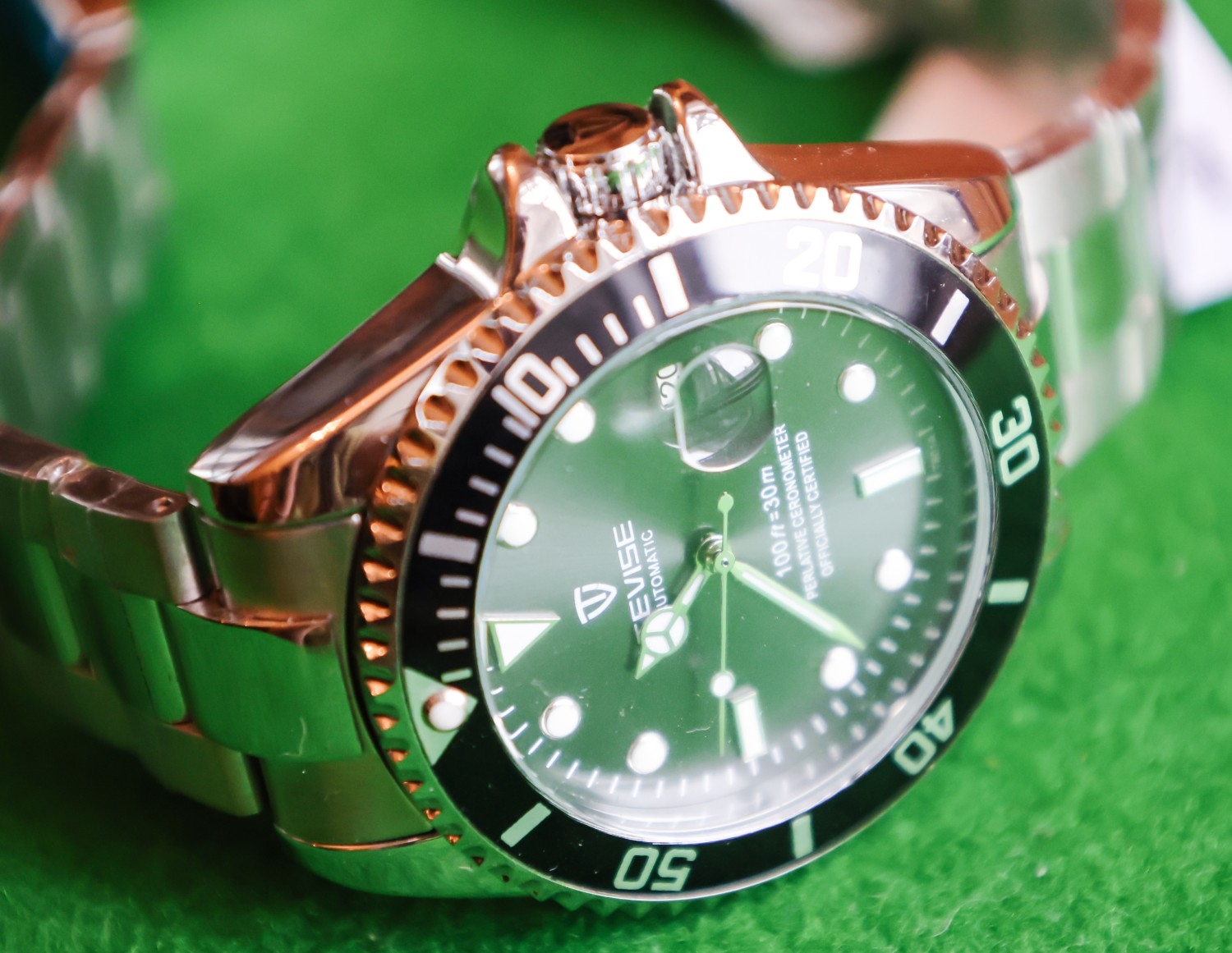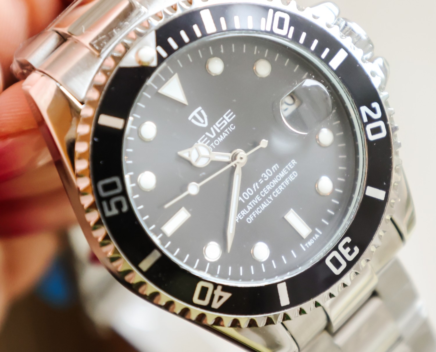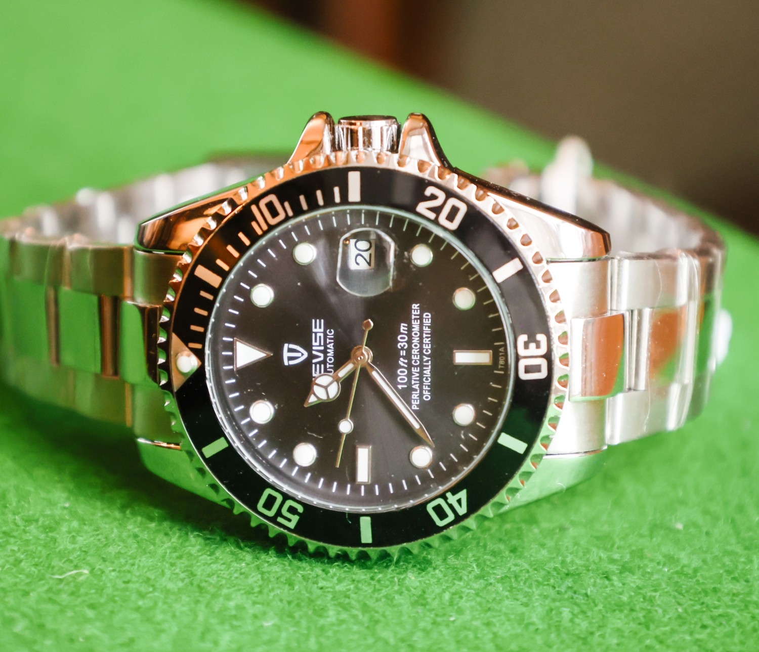 Tevise Gentleman's Water Resistant Steel Case Chronometer Sports Watch One Hundred Foot Water Resistant Date Aperture