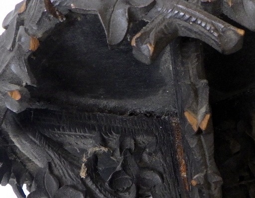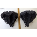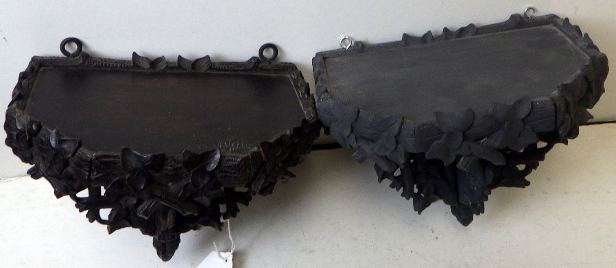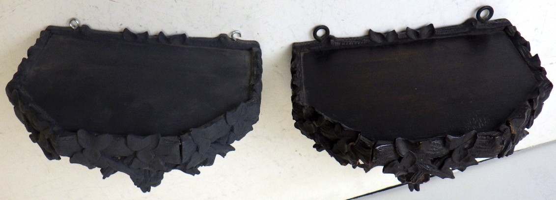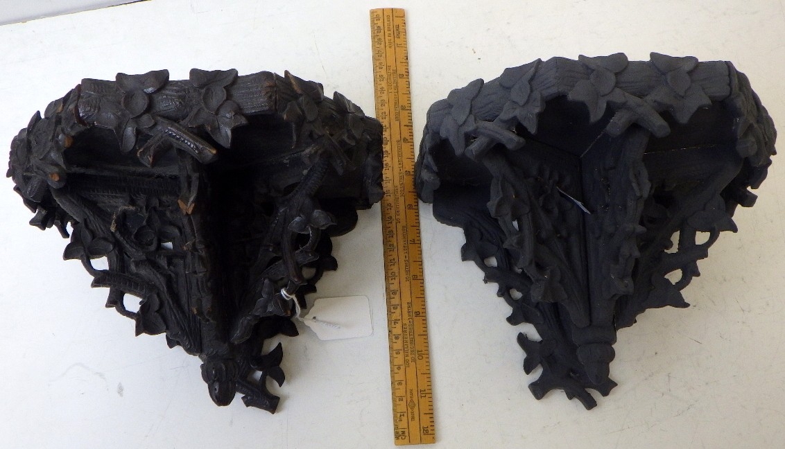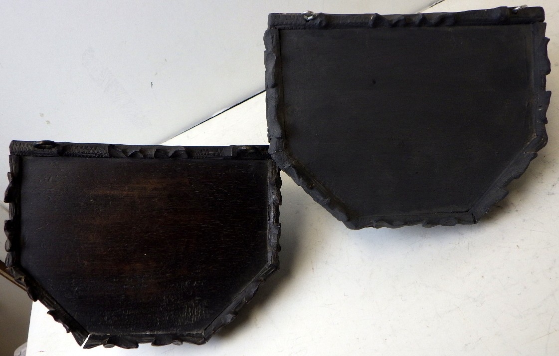 A pair of Black Forest carved wall brackets, 17cm tall, one over-painted