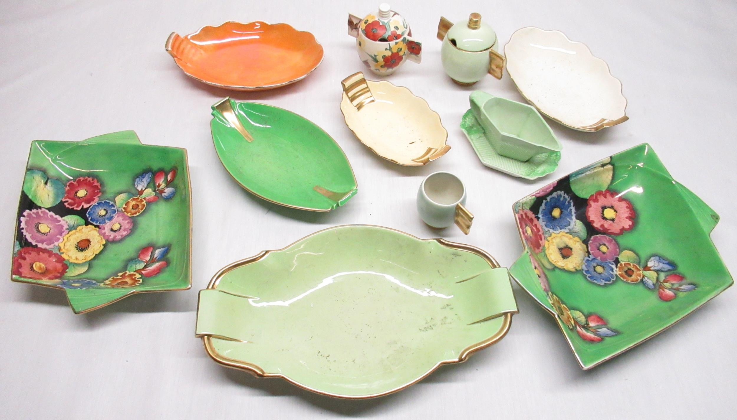 1930's Carlton ware pair of green lustre ware dishes, with floral decoration and gilt borders and selection of other 1930's and later Carlton ware dishes, cream jug, two preserve pots, etc