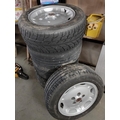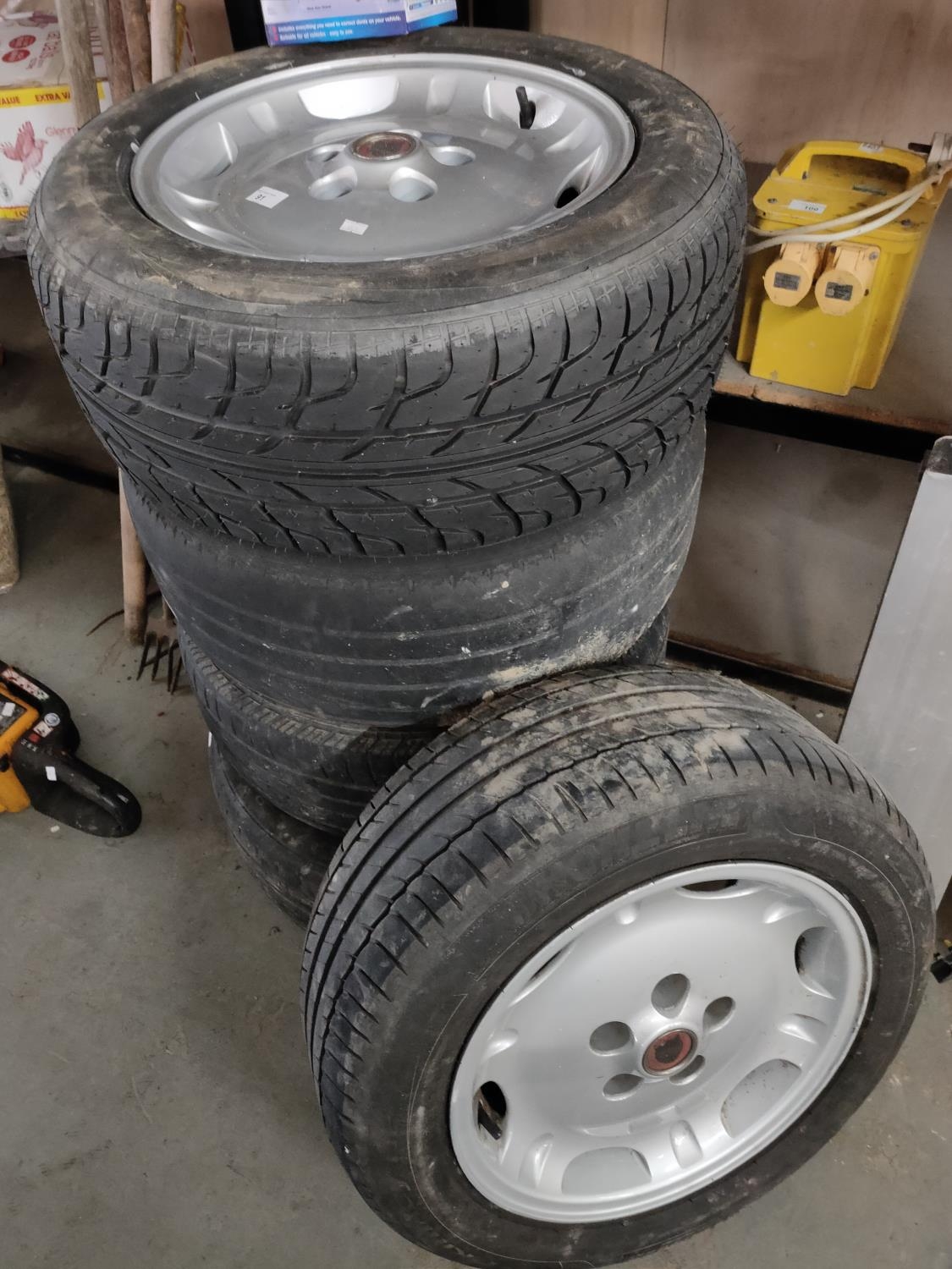 FIVE ALUMINIUM JAGUAR WHEELS AND TYRES 225,55,16