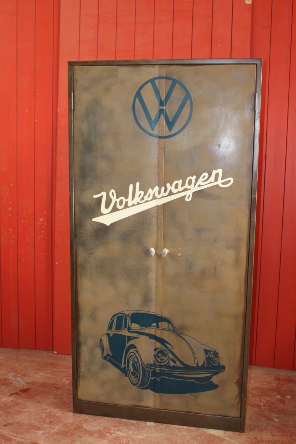 Metal Volkswagen industrial cabinet. {183 cm H x 91 cm W x 30 cm D}.