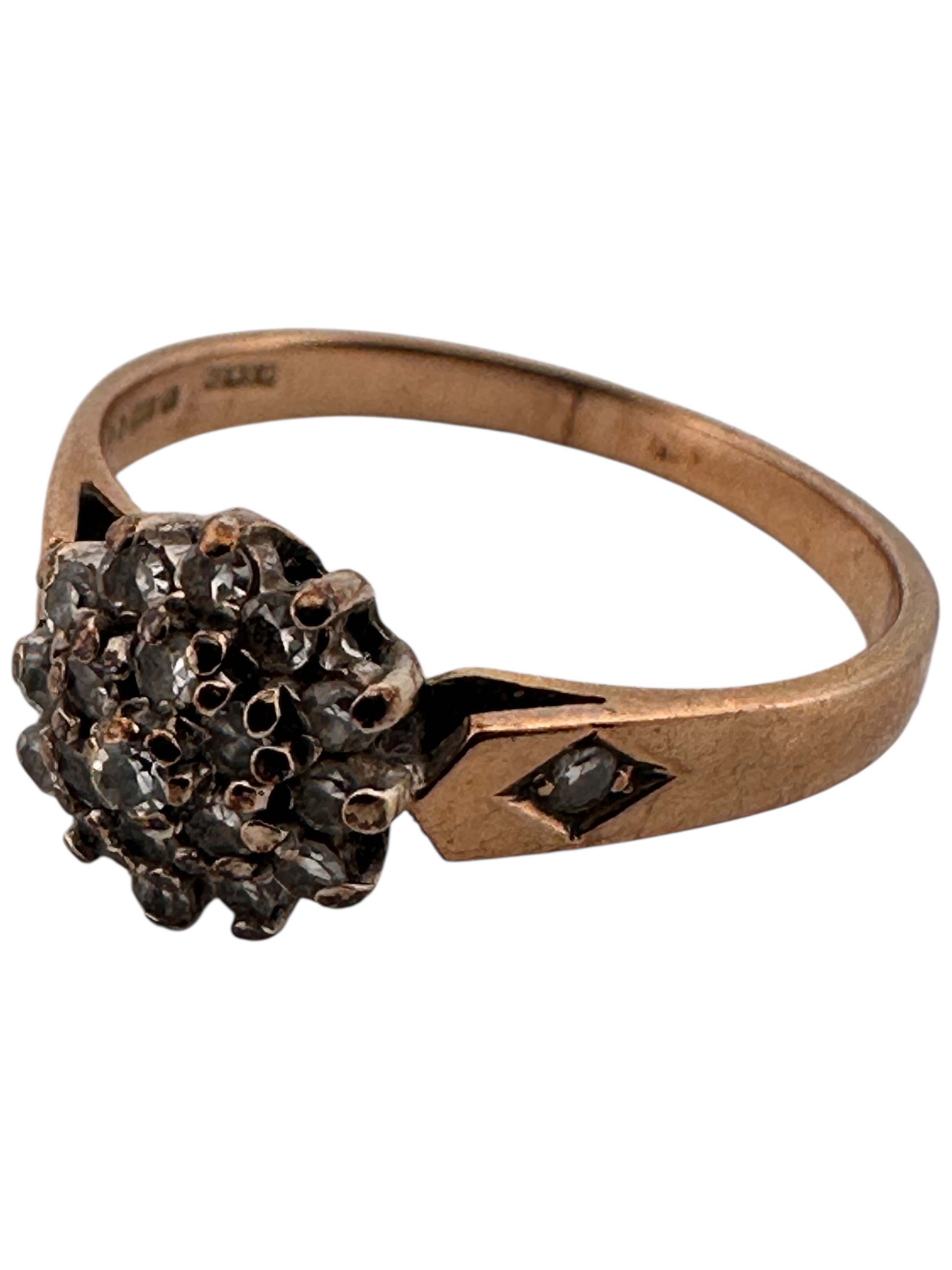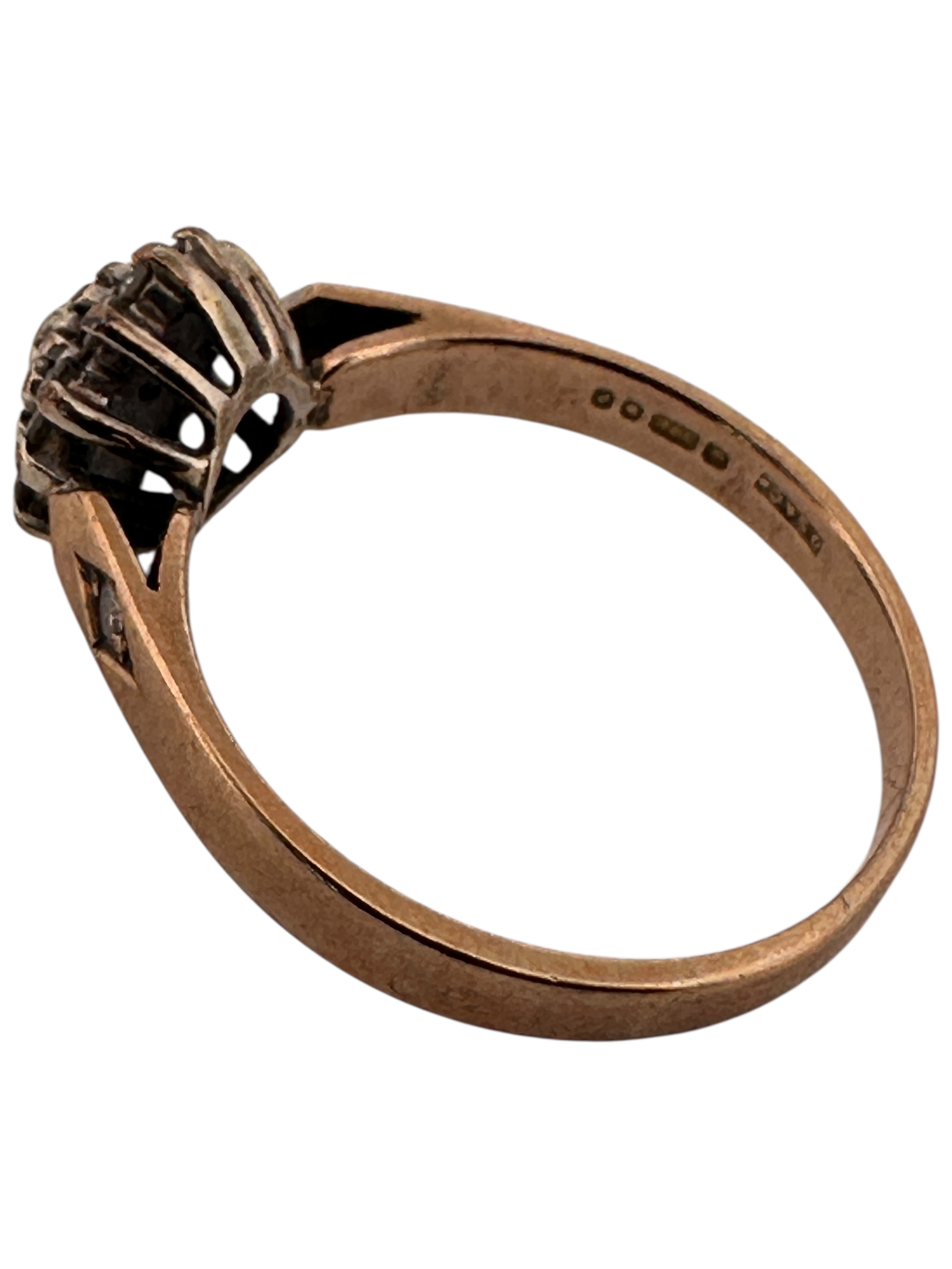 Nine Carat Gold 7 Diamond Cluster Ring. Size N 2.12g