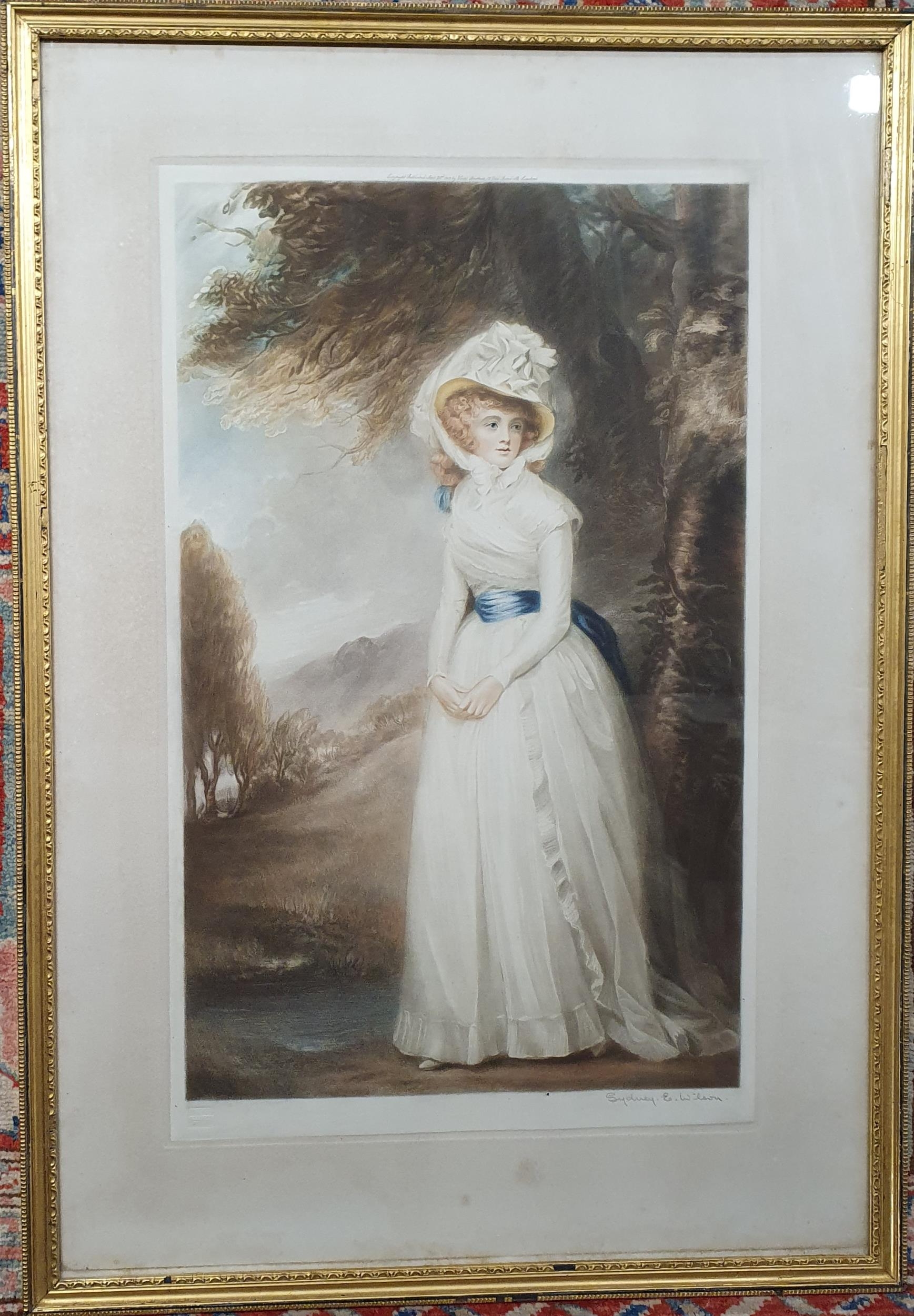 After Sidney E Wilson. A 19th Century Artists proof coloured Engraving of a young Lady. Signed LR. In a really good gilt frame.